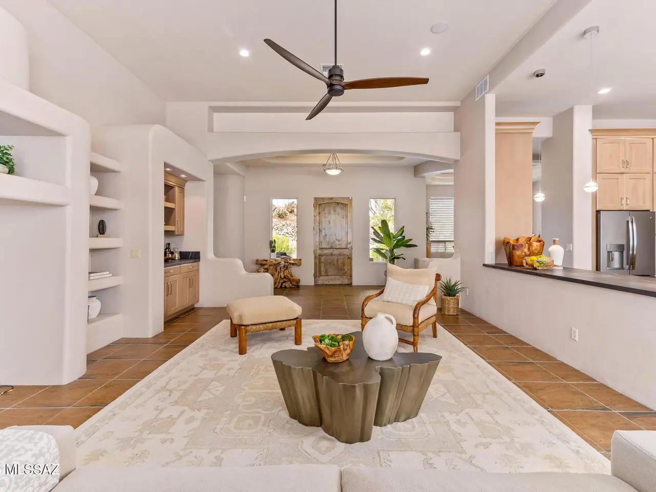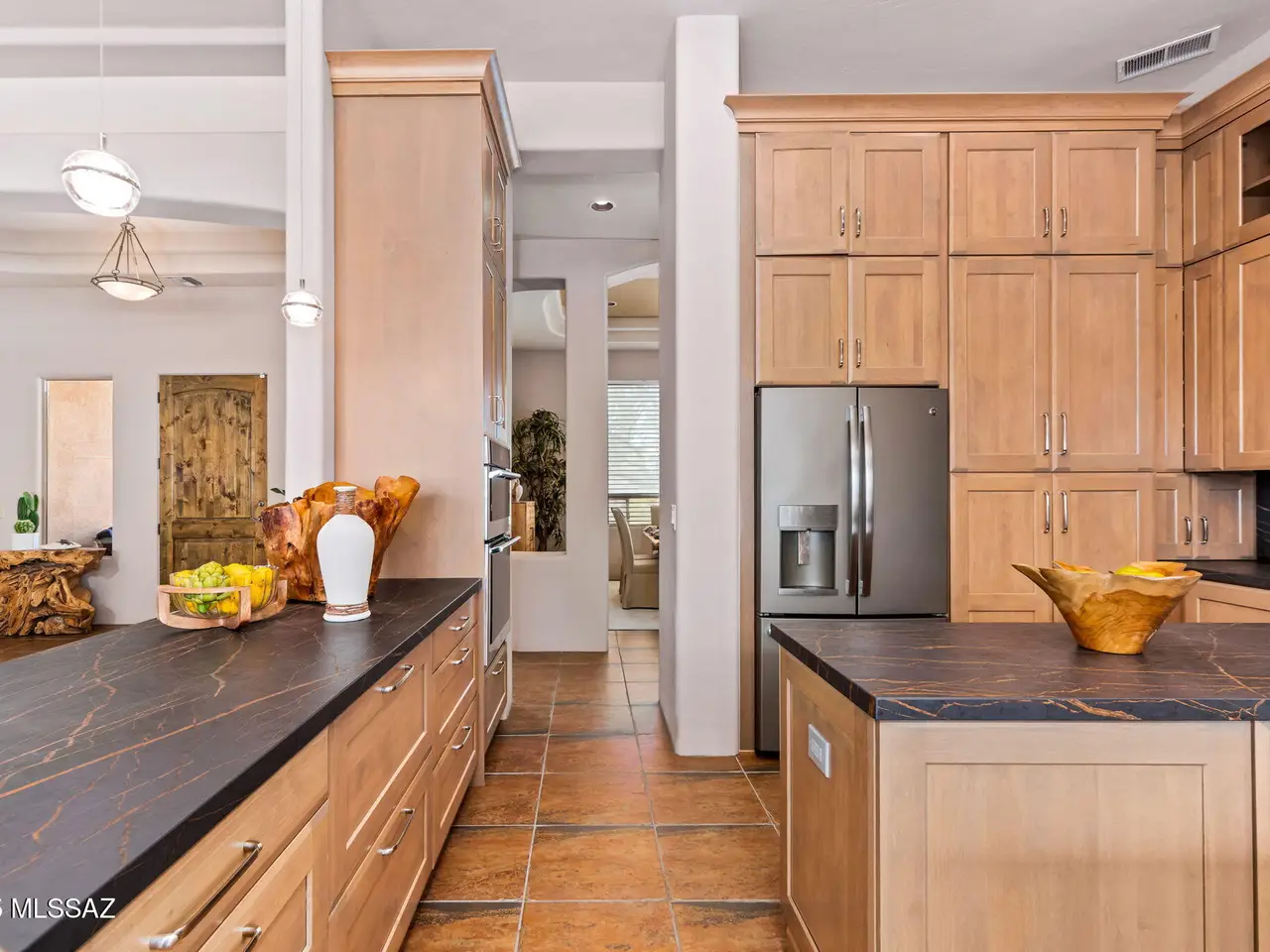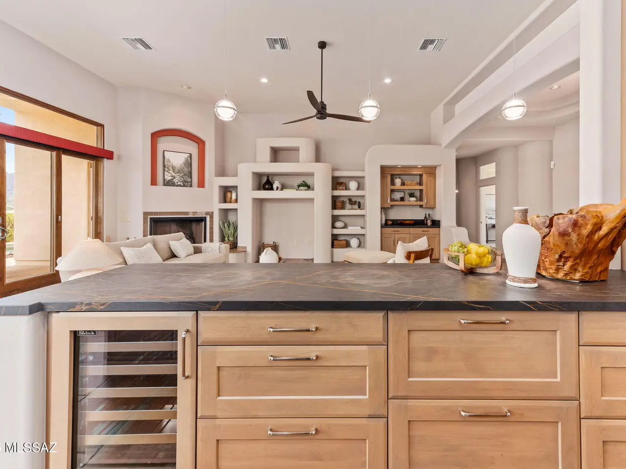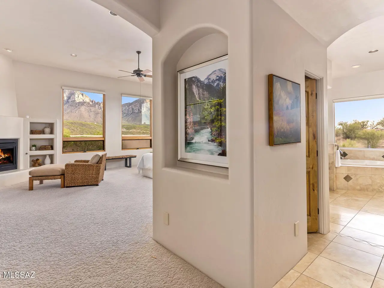 Welcome to your desert sanctuary! This 4-bed, 3-bath custom estate spans 3,282 sq ft on 2.68 private acres in a premier gated community and offers luxury, privacy, and sweeping Pusch Mountain views. The redesigned chef's kitchen with SS slate appliances, custom Alder cabinetry, and Dekton countertops flows into indoor/outdoor living spaces designed for entertaining. The large primary suite boasts soaring ceilings, a kiva fireplace, and spa-like bath. Outside, enjoy a heated resort-style pool and spa framed by desert beauty. There's plenty of seating areas to enjoy the view from both under the patio cover or on a turf area. Enjoy the outdoor Kiva fireplace on cool evenings. The vacant lot next door is also for sale, creating a retreat of more than 5 acres in the heart of Oro Valley.
