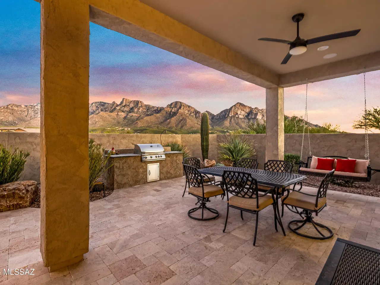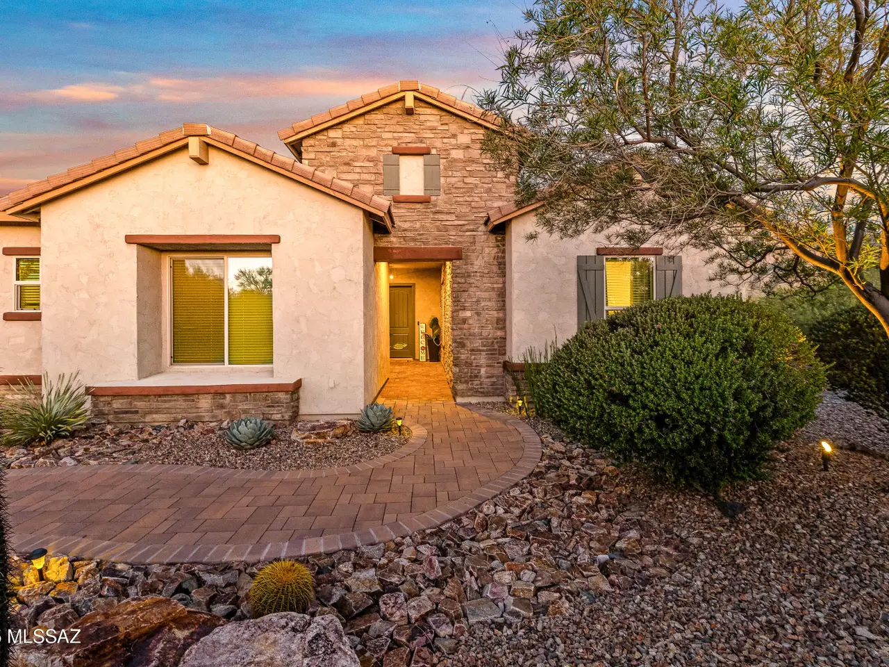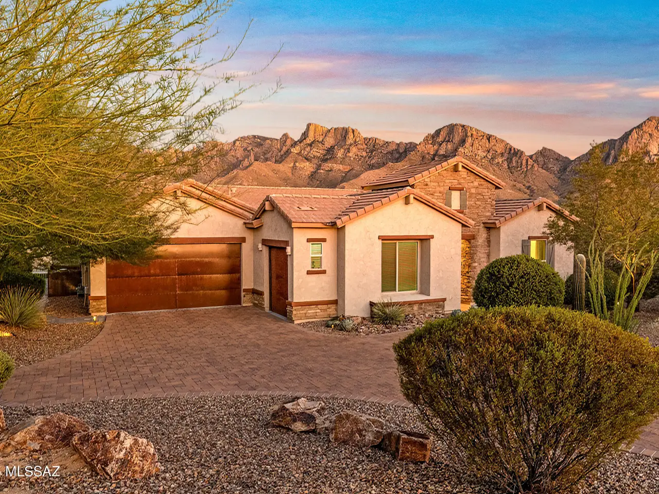 Tucked away in the gated community of Sanctuary at Silverhawke, this exceptional single-level home blends elegant design with sweeping Catalina & Pusch Ridge mountain views. With 3BR/31/2BA+office, den & bonus room & flexible 3,249sf floor plan, this residence sits on an oversized cul-de-sac lot offering privacy & tranquility. Recently renovated with about $100,000 in premium upgrades, every inch reflects elevated craftsmanship and thoughtful design. Kitchen has been elevated with a new sink and faucet, walk-in pantry and addition of a half bath, seamlessly blending convenience with design. In the laundry room, updates like a new backsplash, pocket door & modern countertop give the space a fresh, functional feel. Great room & office were also transformed