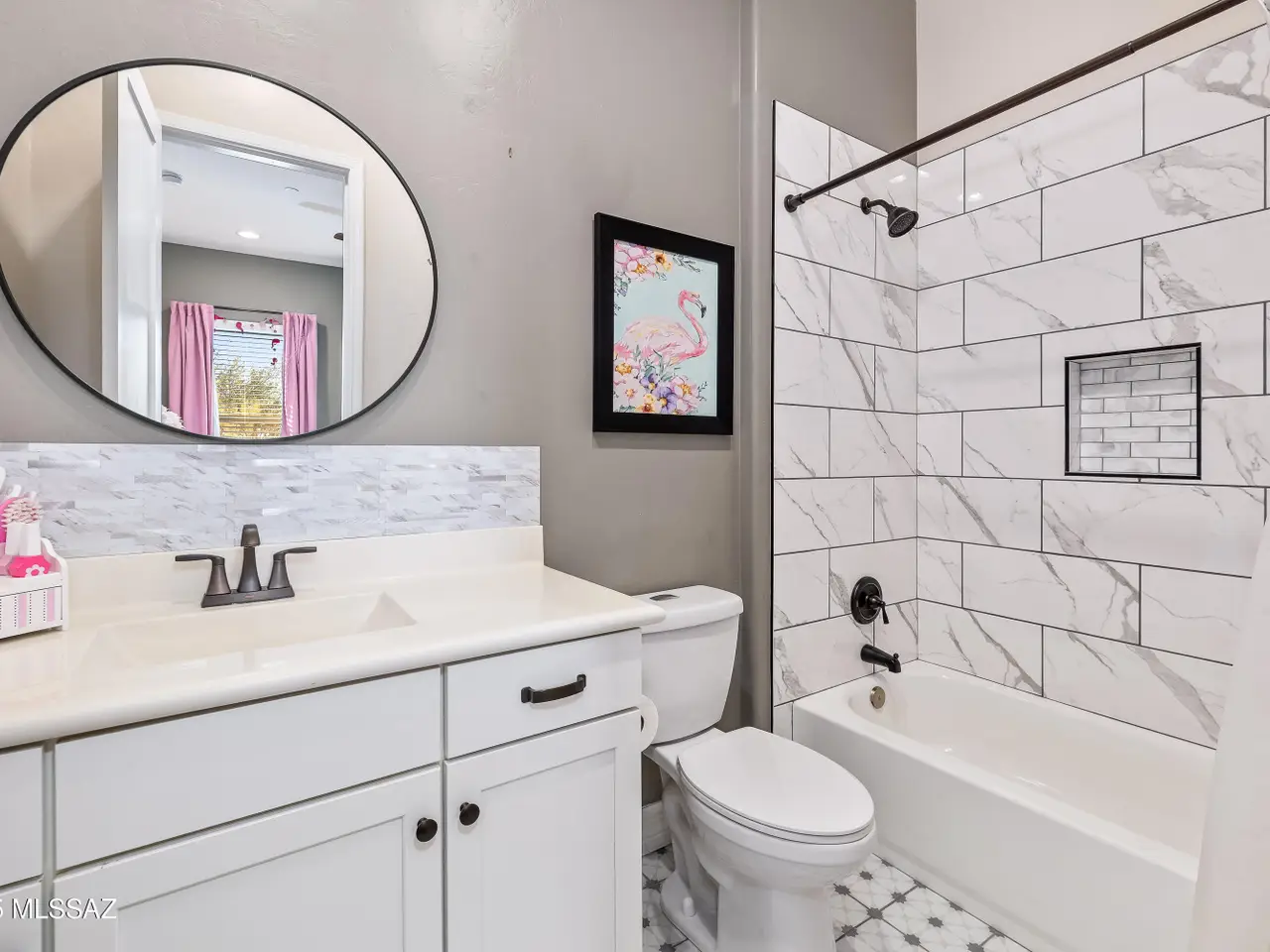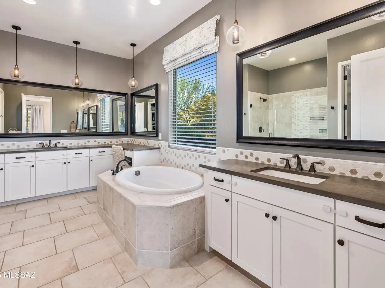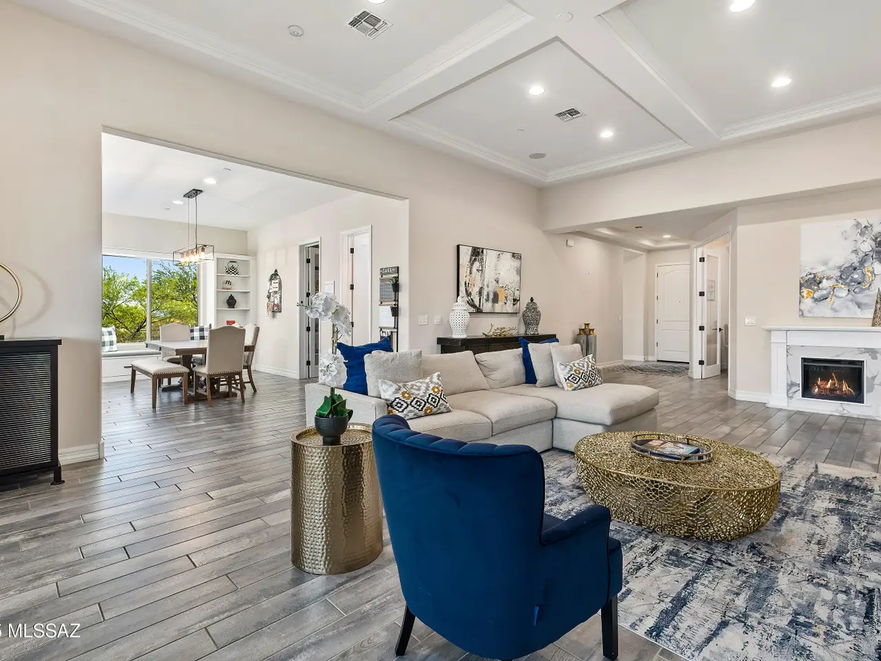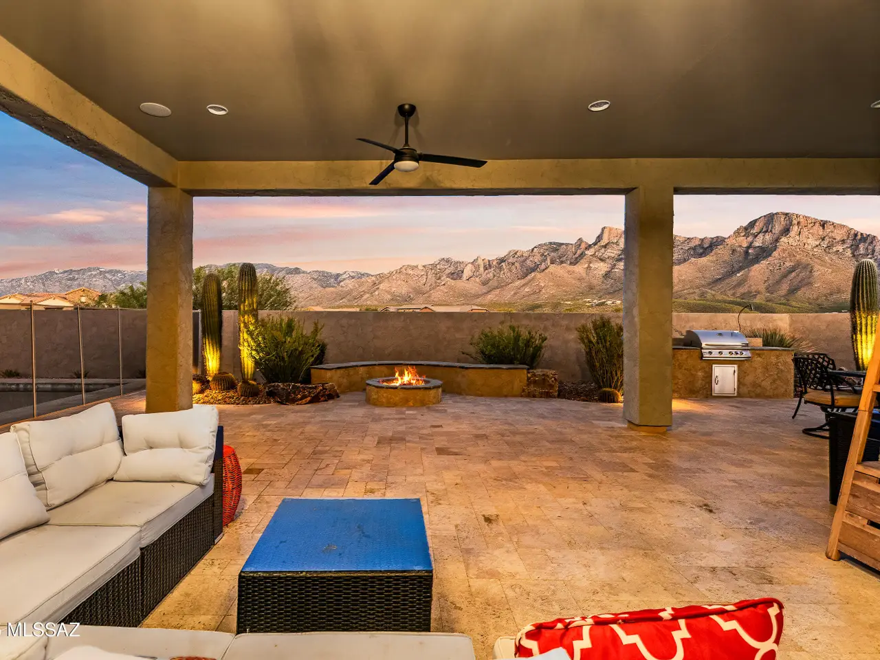 Tucked away in the gated community of Sanctuary at Silverhawke, this exceptional single-level home blends elegant design with sweeping Catalina & Pusch Ridge mountain views. With 3BR/31/2BA+office, den & bonus room & flexible 3,249sf floor plan, this residence sits on an oversized cul-de-sac lot offering privacy & tranquility. Recently renovated with about $100,000 in premium upgrades, every inch reflects elevated craftsmanship and thoughtful design. Kitchen has been elevated with a new sink and faucet, walk-in pantry and addition of a half bath, seamlessly blending convenience with design. In the laundry room, updates like a new backsplash, pocket door & modern countertop give the space a fresh, functional feel. Great room & office were also transformed
