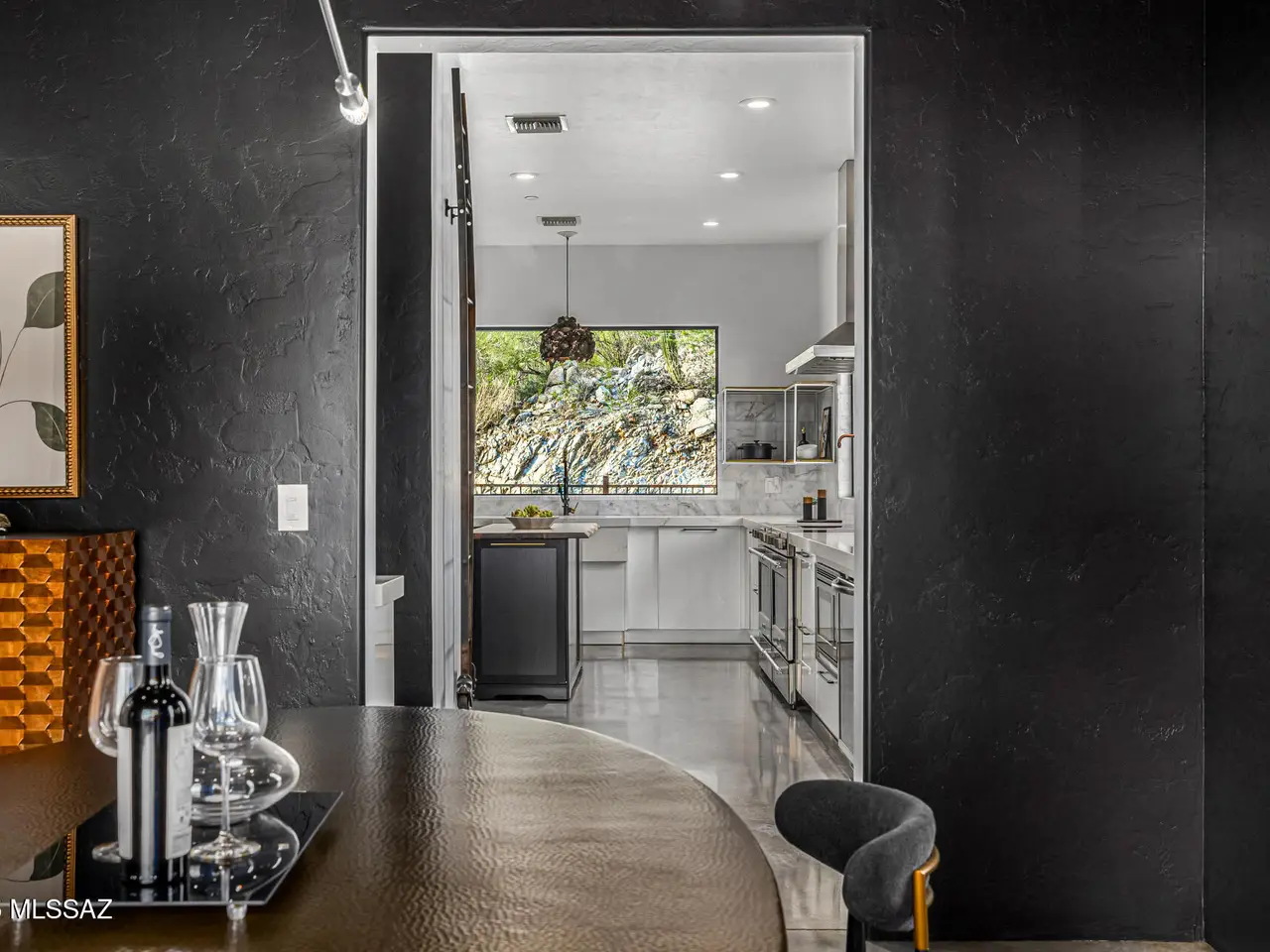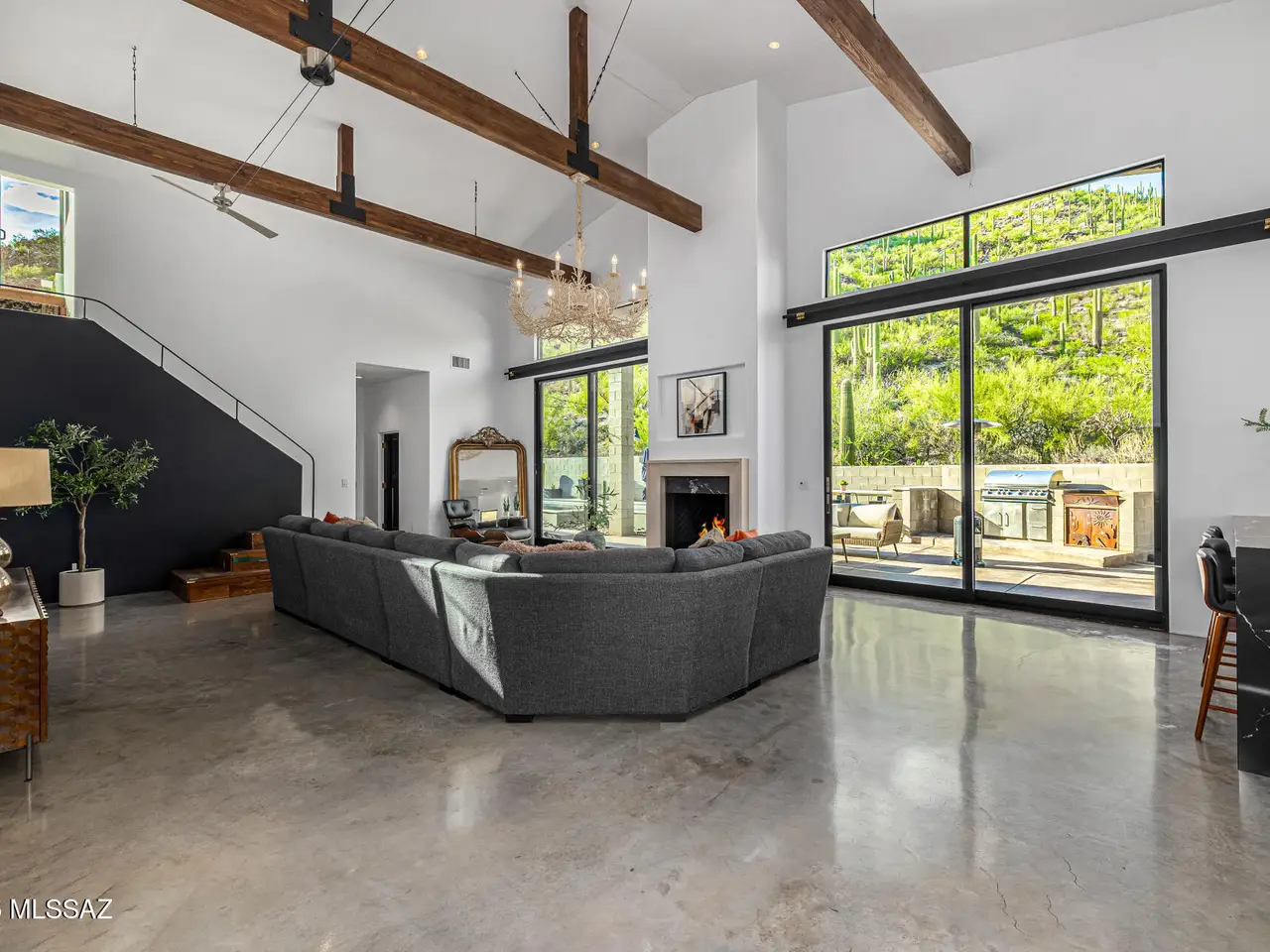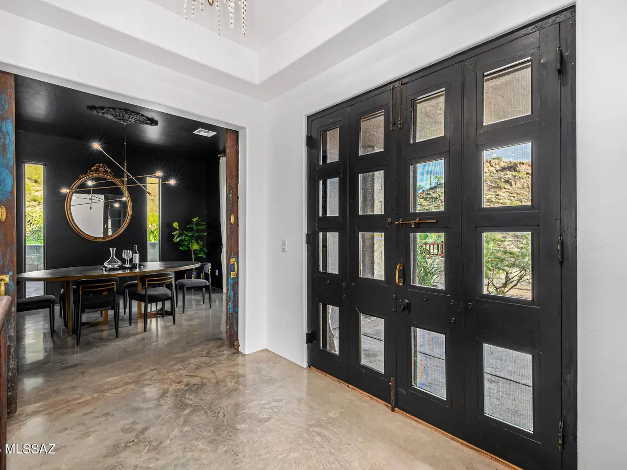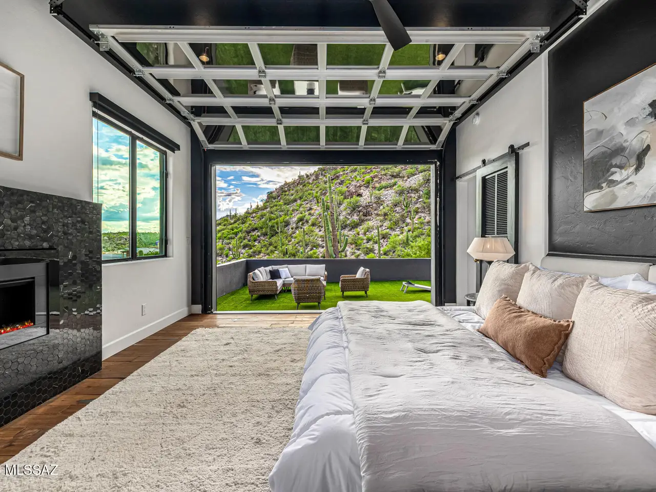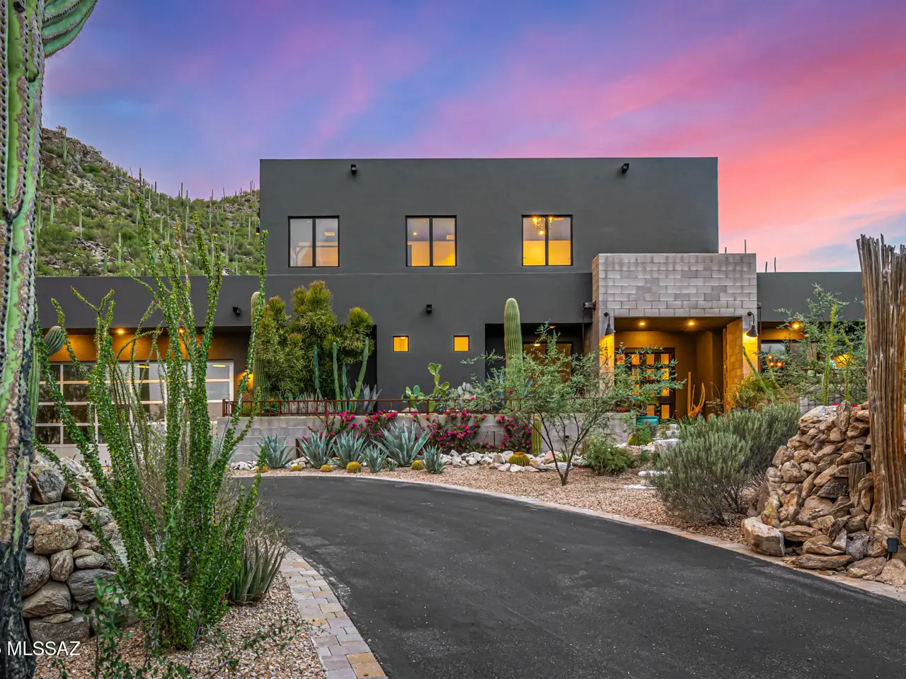 Nestled deep in the scenic Tortolita Mountains, this fully custom-built 2018 estate combines refined design with extensive upgrades inside and out. The property welcomes you with an asphalt driveway, elegant paver accents, and professionally landscaped grounds featuring outdoor lighting, solar lamps, a decorative fountain, and a custom-finished front entry. All the doors used in the home were from the historic Hotel Hidalgo! The roof has been resealed and the exteriors freshly repainted. Enjoy resort-style outdoor living with a sparkling pool (new heater), a mesquite-mantle fireplace with a custom screen, propane starter, built-in barbecue mechanics, and decorative fencing. Set against a backdrop of untouched desert beauty, the estate offers breathtaking 360-degree panoramic views of Tortolita Mountains. Expansive windows and outdoor living spaces capture glowing sunrises, dramatic sunsets, and sparkling city lights after dark. Natural desert wildlife surrounds the property, creating a private sanctuary with a front-row seat to the beauty of the Sonoran Desert. Inside, the upgrades continue with quartz kitchen countertops, a waterfall island, refinished cabinetry and hutch, and updated hardware and lighting. The great room showcases a propane fireplace setup with custom logs, while electrical dimmers and halogen bulbs create ambiance throughout. Additional features include refinished teak entry doors with glass panels, repainted interior doors and ceilings, ceiling fans in all bedrooms, a staircase runner, and polished concrete floors. Comfort is maximized with mini-splits in the master and first-floor bedrooms, as well as Tucson rolling shutter blinds in every bedroom plus electronic rolling shutter for the master suite's large glass doors and the second-floor landing. Perfectly designed for entertaining, the home is wired for interior and exterior sound, blending luxury, function, and style at every turn. This is a true desert sanctuary, offering both sophistication and serenity.