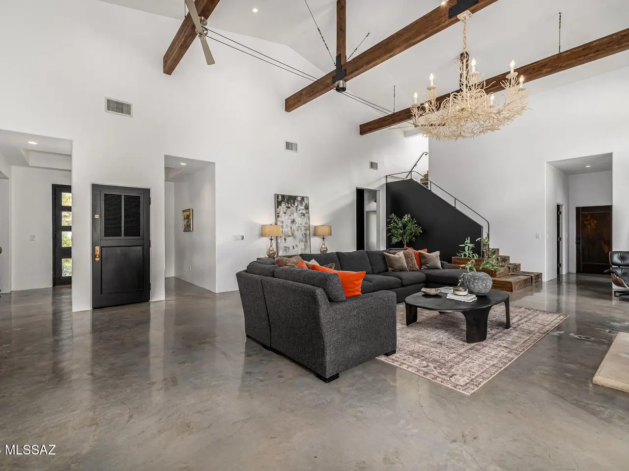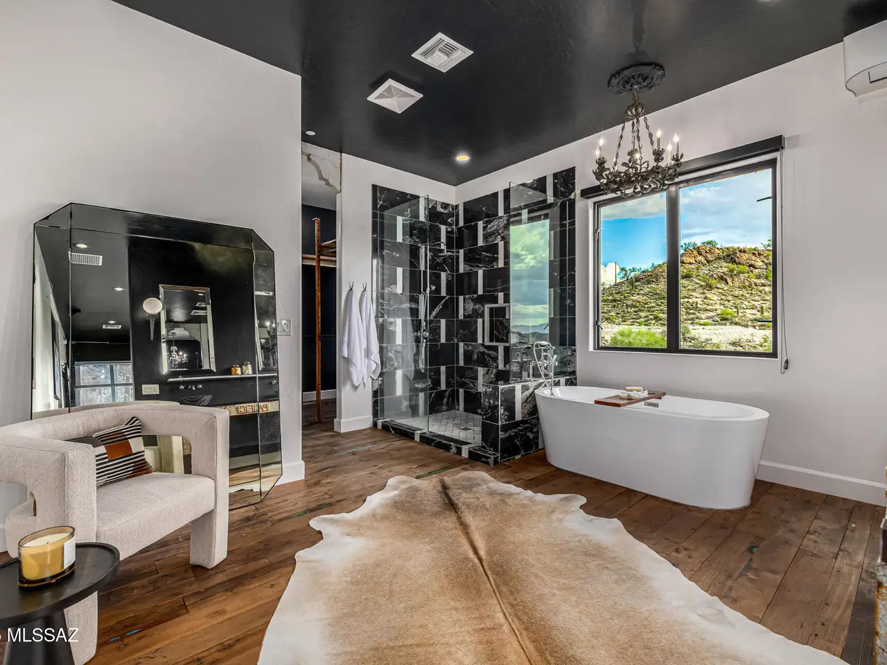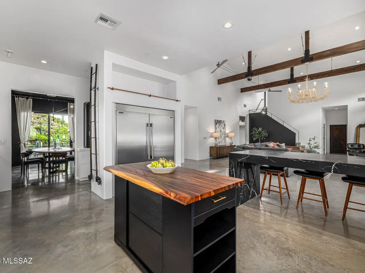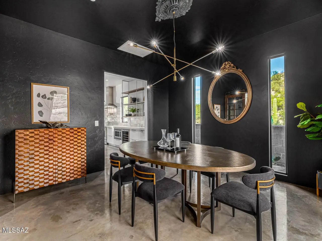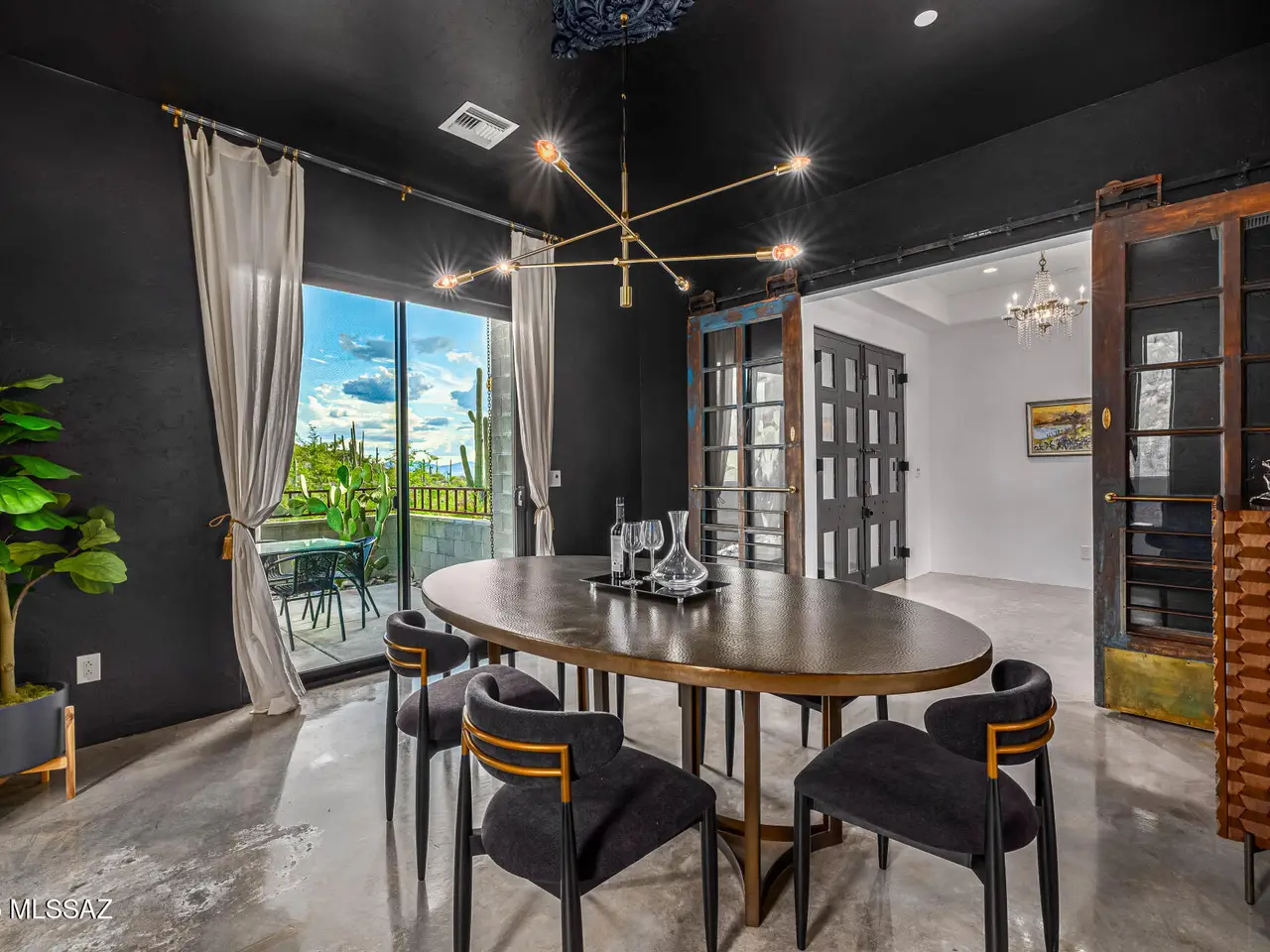 Nestled deep in the scenic Tortolita Mountains, this fully custom-built 2018 estate combines refined design with extensive upgrades inside and out. The property welcomes you with an asphalt driveway, elegant paver accents, and professionally landscaped grounds featuring outdoor lighting, solar lamps, a decorative fountain, and a custom-finished front entry. All the doors used in the home were from the historic Hotel Hidalgo! The roof has been resealed and the exteriors freshly repainted. Enjoy resort-style outdoor living with a sparkling pool (new heater), a mesquite-mantle fireplace with a custom screen, propane starter, built-in barbecue mechanics, and decorative fencing. Set against a backdrop of untouched desert beauty, the estate offers breathtaking 360-degree panoramic views of Tortolita Mountains. Expansive windows and outdoor living spaces capture glowing sunrises, dramatic sunsets, and sparkling city lights after dark. Natural desert wildlife surrounds the property, creating a private sanctuary with a front-row seat to the beauty of the Sonoran Desert. Inside, the upgrades continue with quartz kitchen countertops, a waterfall island, refinished cabinetry and hutch, and updated hardware and lighting. The great room showcases a propane fireplace setup with custom logs, while electrical dimmers and halogen bulbs create ambiance throughout. Additional features include refinished teak entry doors with glass panels, repainted interior doors and ceilings, ceiling fans in all bedrooms, a staircase runner, and polished concrete floors. Comfort is maximized with mini-splits in the master and first-floor bedrooms, as well as Tucson rolling shutter blinds in every bedroom plus electronic rolling shutter for the master suite's large glass doors and the second-floor landing. Perfectly designed for entertaining, the home is wired for interior and exterior sound, blending luxury, function, and style at every turn. This is a true desert sanctuary, offering both sophistication and serenity.