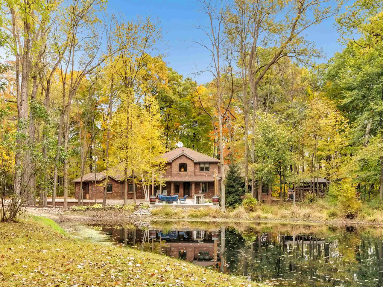 Gorgeous wooded setting for this quality built 2-story home in the Seymour School District. The home sits on 3.27 acres with a private pond. Features include: 3 bedrooms (potential for a 4th in the loft area), 2 full & 2 half baths, 1st floor primary suite with a fireplace, large great room with a floor to ceiling wood burning fireplace and large windows with amazing views. 1st floor office & laundry, spacious kitchen with a large granite island open to the dining/living room. Formal dining area. Heated attached garage with epoxy flooring, a separate heated workshop area, and steps to the basement plus a second detached 28 x 50 garage. Unfinished lower level with 8' ceilings. Newer patio overlooking the pond. Special Financing Incentives available on this property from SIRVA Mortgage