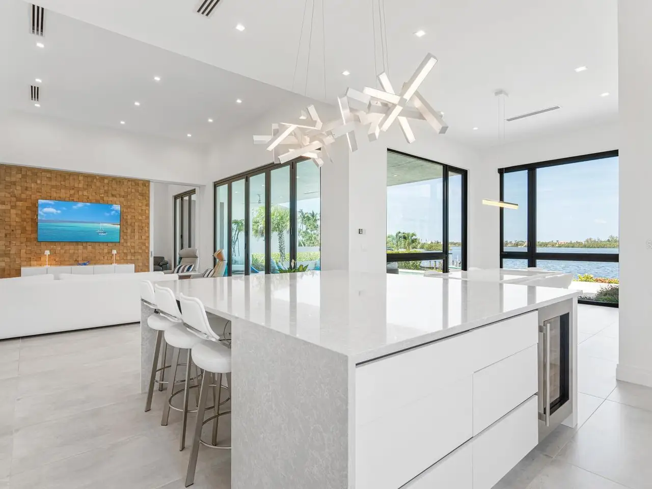 ELEVATED ABOVE FLOOD LEVEL WITH EXCEPTIONALLY LOW INSURANCE PREMIUMS ! Welcome to 622 Bayshore Drive - where coastal luxury meets modern sophistication on one of the most sought-after stretches of Little Sarasota Bay. Tucked away on a rare and expansive .78-acre gated estate, this custom-built, contemporary masterpiece offers 90 feet of pristine waterfront, unmatched privacy, and a lifestyle defined by serenity, style and seamless connection to the water. Designed for those who crave the extraordinary, this six-bedroom, five-bath residence is a showpiece of elevated design and quality craftsmanship, built just three years ago with the finest materials and storm-resilient features. Boaters will delight in the direct bay access just minutes from Midnight Pass and the open Gulf - a true water lover's paradise. Step through the grand entrance and into a world of light, space and unobstructed bay views. The soaring 14-foot bifold glass wall in the great room opens fully to a spectacular lanai, inviting indoor-outdoor living year-round. Imagine entertaining here – sunset cocktails by the saltwater pool and spa, laughter echoing across the water and every moment framed by nature's beauty. At the heart of the home lies a chef's dream kitchen, anchored by an oversized 7'X8' waterfall edge island and outfitted with top-tier Wolf, Cove, and Sub-Zero appliances. A walk-in pantry with second refrigerator/freezer ensures effortless hosting and everyday convenience. This home is as strong as it is stunning: constructed entirely of block and stucco, equipped with Category 5 impact-rated windows and doors, and elevated above flood level - a rare combination that provides peace of mind and impressively low insurance premiums. A whole-house generator ensures uninterrupted comfort. With its expansive yard, and panoramic water views, 622 Bayshore Drive is not just a home- it's a legacy property. Perfectly positioned between Sarasota and Venice, it offers the best of both worlds: quiet natural beauty with easy access to world-class dining, shopping and culture. DON'T JUST VISIT PARADISE - OWN IT. Schedule your private tour of this extraordinary waterfront estate today.
