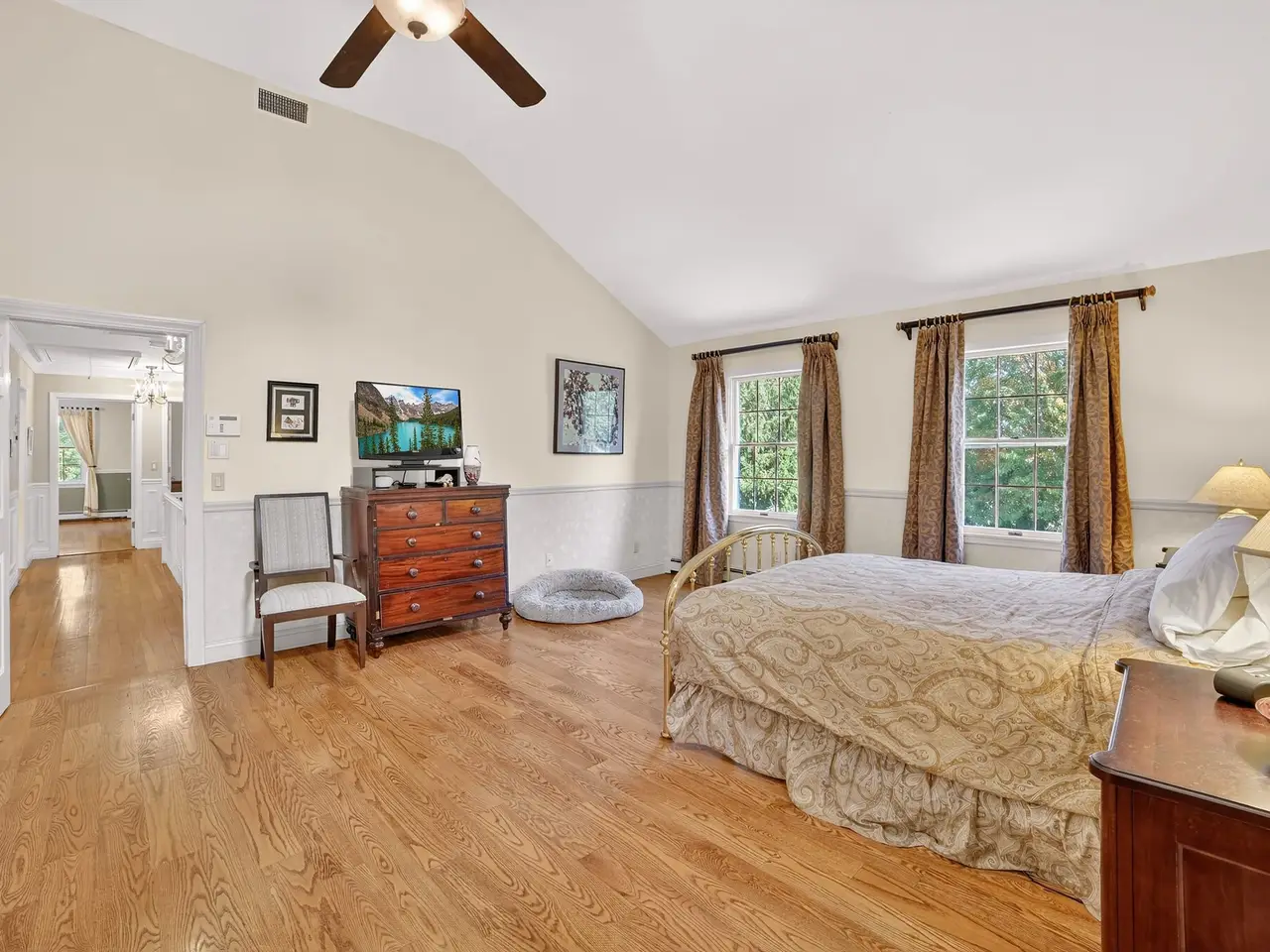 Luxurious primary suite with spa-inspired bath