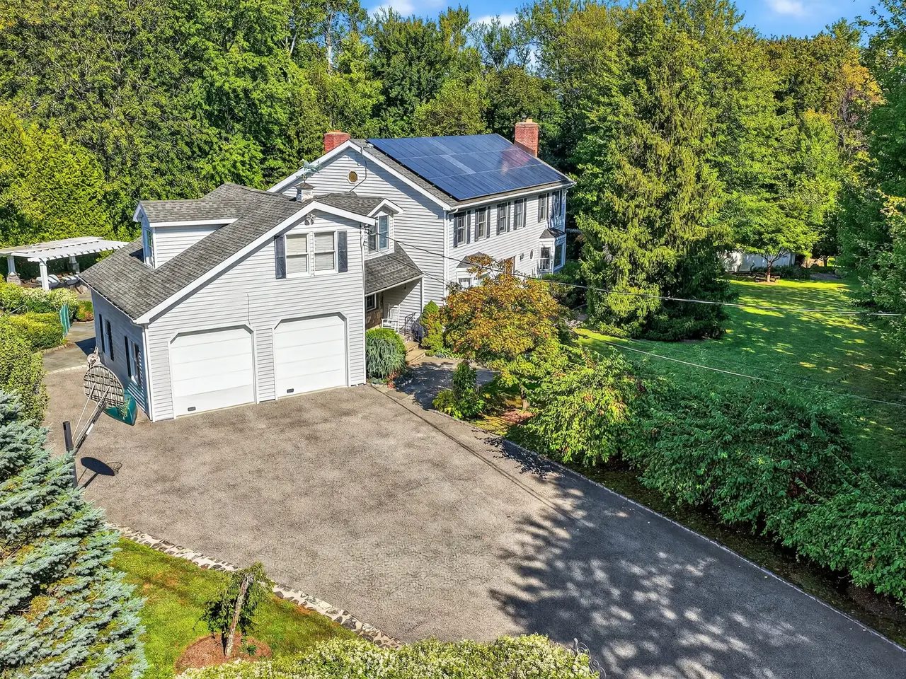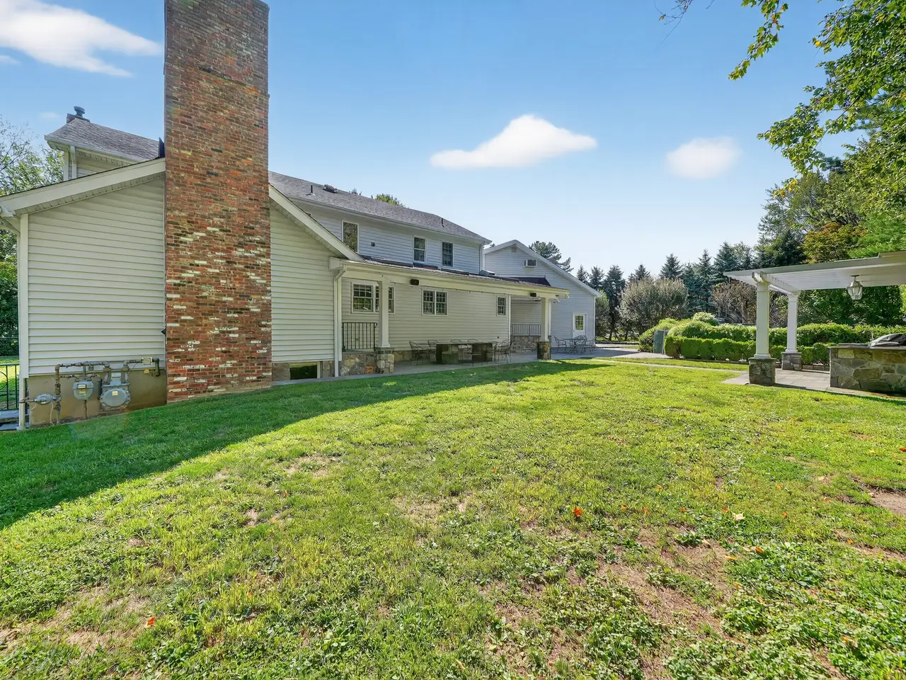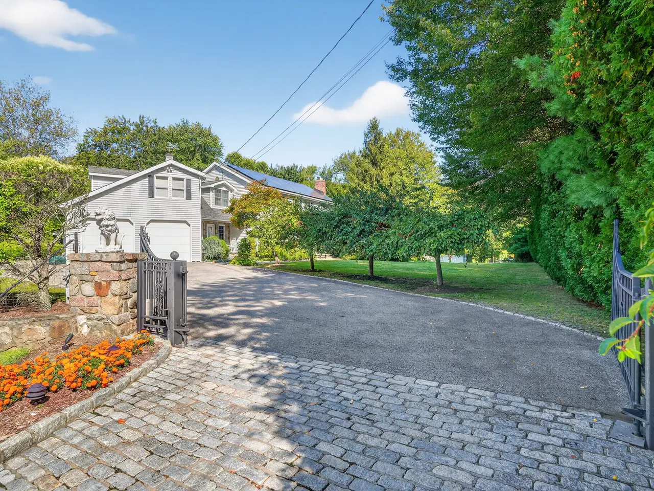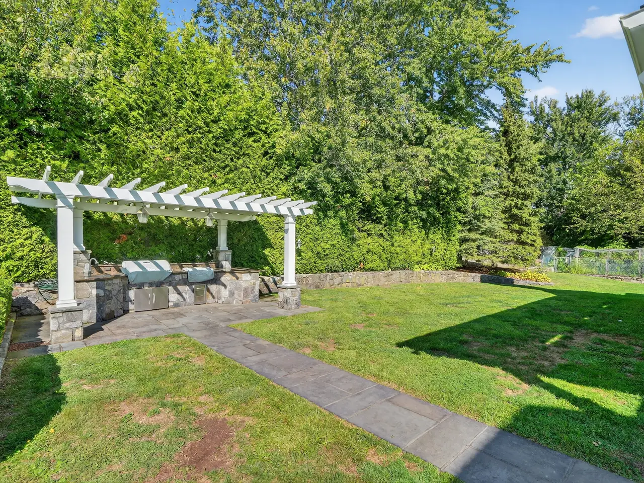 Accepted offer. Enter through stately stone pillars and wrought iron gates to this exquisite Center Hall Colonial, perfectly set on nearly one acre of stunning, level, and fully fenced property. Every inch of this residence has been thoughtfully designed to offer an extraordinary combination of elegance, comfort, and functionality. The magnificent gourmet kitchen is a chefs dream, featuring an 11-foot center island, Wolf range, dual dishwashers, wine refrigerator, warming drawer, and double sinksan entertainers paradise with every amenity imaginable. The kitchen flows seamlessly into an oversized family room, a grand yet inviting space anchored by a beautiful fireplace and framed by serene wooded viewsperfect for relaxing or gathering with family and friends. Upstairs, retreat to the luxurious primary suite with a spa-inspired bath and spacious walk-in closets. The home also features a generous bonus room above the garage, accessible from both the main level and the primary suiteideal for a private home office, gym, or creative studio. Additional bedrooms on the second level provide comfort and style for family and guests alike. Step outside to your own private oasis, where the beautifully landscaped grounds include a charming gardening area, an in-ground pool, and a built-in grill and dining areaperfect for alfresco entertaining and summer gatherings. Expansive lawns provide plenty of space for play or relaxation, while an additional driveway offers ample parking for hosting large events or special occasions. The expansive lower level offers exceptional space for recreation, fitness, or media enjoyment, along with abundant storage. Additional highlights include a new five-zone Buderus furnace and an attached two-car garage. From the grand entry to the manicured grounds, this remarkable property embodies timeless sophistication, resort-style amenities, and the perfect balance of privacy and luxury living.