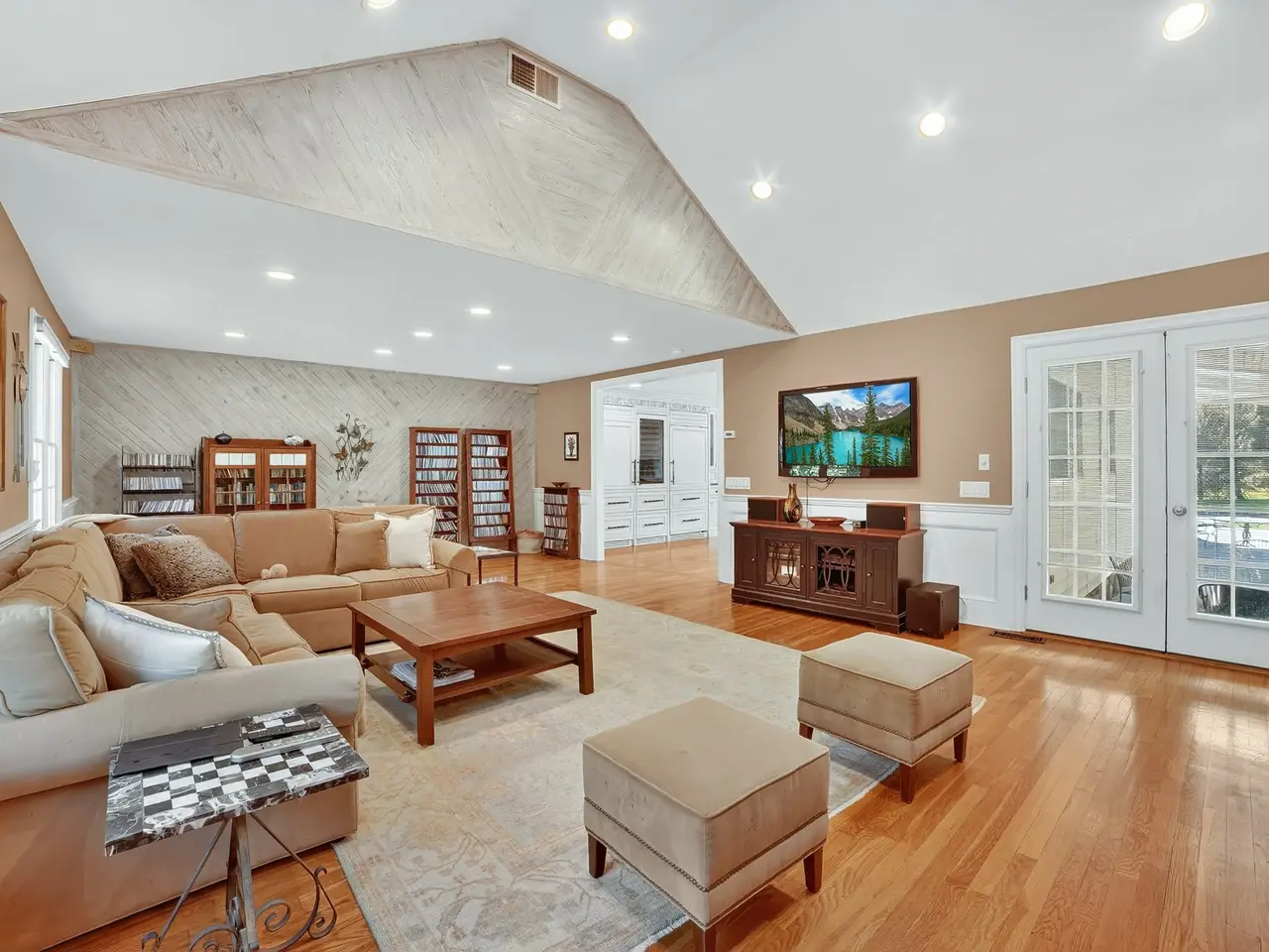 Oversized family room with fireplace