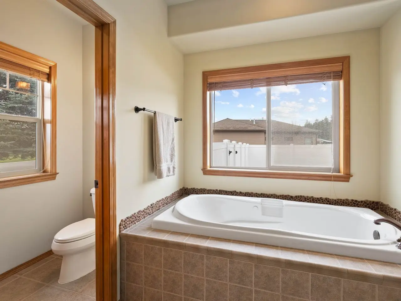 This exceptional 5-bedroom, 4-bathroom home offers everything you've been looking for and more. Located in the Woodland Hills Estate gated community, sitting on a generous 1-acre lot, this home boasts unobstructed mountain views that will take your breath away. The main-floor primary suite offers a resort-like feel with a spacious bathroom and a walk-in closet. The basement features two distinct living areas, including one with a built-in wet bar, wine fridge, and under-cabinet lighting. Outside, the patio and pergola create the perfect setting for relaxing by the gas fire pit. The 40x50 foot shop has 2 14x12 doors & an upper-level loft for storage. This home has been thoughtfully updated, with a new roof on both the house and the shop(2023), a brand-new furnace(2023), new dishwasher, and new electric blinds. The 40 acre green space has a mile long walking trail, and the 100 acres to the north is HOA owned land and both pieces are unbuildable to ensure the ultimate privacy.