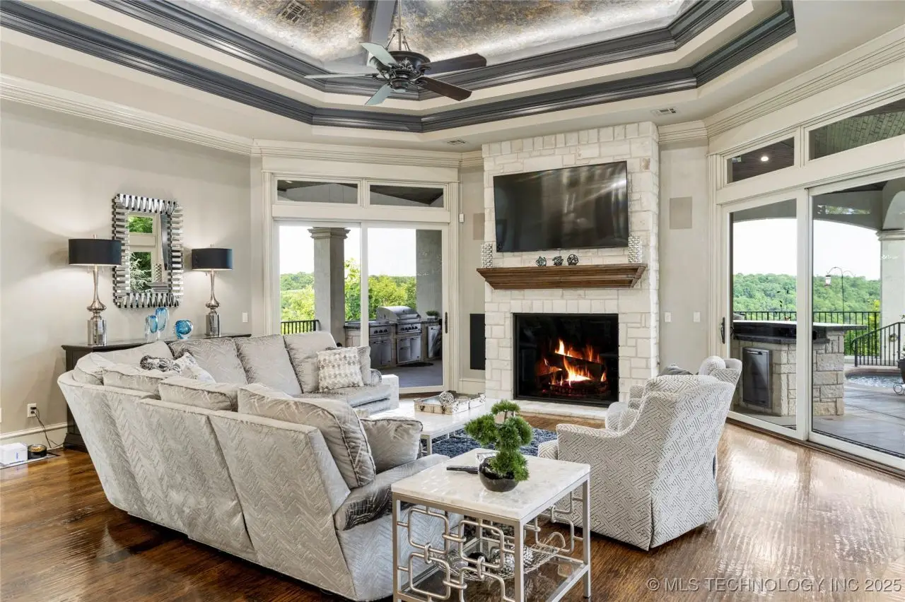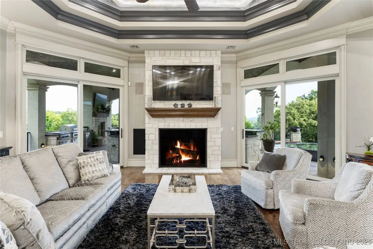 EXTRAORDINARY 2017 Ironwood Homes estate, situated on over 1 acre within prestigious gated Bluffs at Stone Canyon, overlooking 6 holes of the Patriot Golf Course. This exceptional residence showcases unparalleled quality & attention to detail, with meticulous craftsmanship & high-end finishes throughout. Hand-chiseled wood floors, concrete tile roof & lightning rods, full foam insulation, full water softener/filtration system, and a whole home Generator. Enjoy a 6-car garage with epoxy flooring, providing ample space for boat storage & luxury vehicle parking. 4 bedrooms, with en-suite baths, Master Suite retreat, boasting coffee bar, fireplace, sound system, & sitting room w/breathtaking views. Master bath spa, featuring His & Hers "glamour" closets, Jacuzzi tub w/chroma therapy, shower w/4 heads & full body jets, and direct access to a private exercise room equipped with tanning booth, sauna, & heat/air. Open concept living combines the chef's kitchen & great room, plus a separate formal living & dining space, creating an ideal environment for entertaining. The kitchen is a culinary dream, featuring a Galley sink, built-in accessory storage, Thermador Induction w/gas available, double ovens, massive pantry, All Fridge/All Freezer unit, instant hot water, & Scotsman ice. Executive Office with built-in desk, bookshelves, & outside entry. The estate also boasts 4 fireplaces: 3 indoors & 1 outside, adding charm & warmth to various areas of the home. Experience the ultimate in outdoor living! Infinity-edge pool & hot tub, full outdoor kitchen, fire pots, a full property mosquito misting system, and a heated & sound-equipped lanai that overlooks the beautiful surroundings. Technology and convenience are integrated throughout the home with full Control 4 Smart Home system, offering audio, video, lighting, and cameras, plus a theater room equipped with Dolby Atmos Audio, 4K DLP Laser Projector, Stewart High-Resolution Projector Screen, & full bar with Scotsman ice!