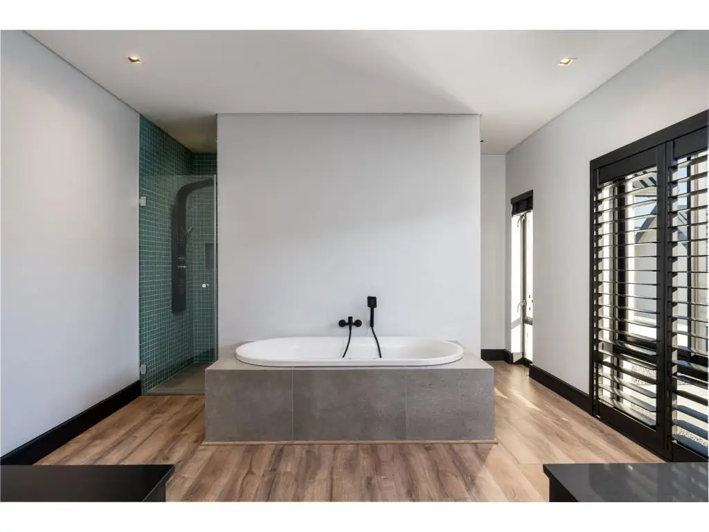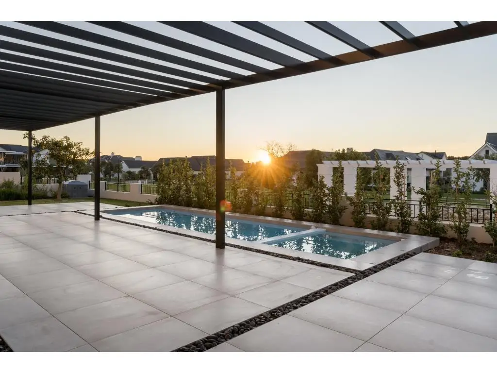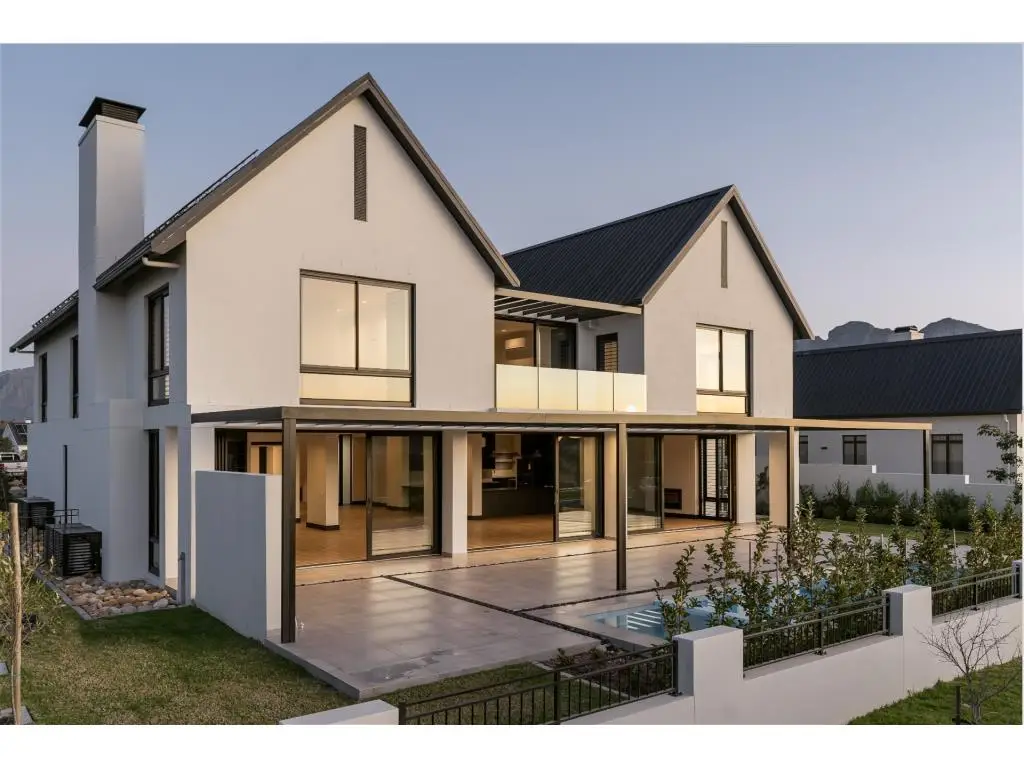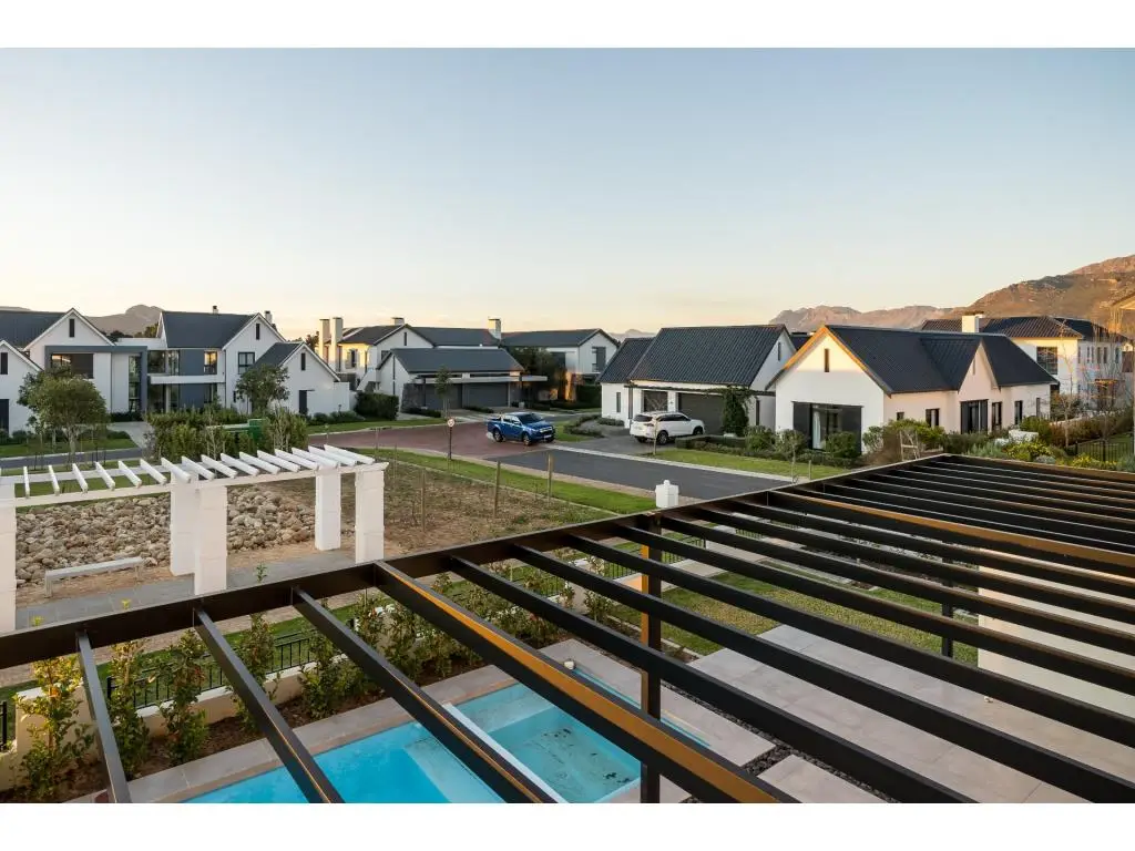 Exclusive sole Mandate! Situated in La Vue, this sophisticated north-facing masterpiece offers the essence of Val de Vie Estate living. A true family sanctuary overlooking a park with breathtaking views of the valley. Discover a world of convenience and opulence in this voluminous and light filled home, where every detail has been meticulously crafted to perfection. With expansive entertainment areas blending indoor and outdoor spaces, this home sets the stage for effortless entertaining. The interior unfolds gracefully into an open-plan living space that effortlessly integrates a TV lounge, dining area, a massive kitchen, and entertainment room with built in fireplace. Stacking doors connect this area to the braai patio overlooking the inviting pool and garden offering picturesque views of Paarl Rock in the distance with a lush greenbelt in front ensuring space and privacy. Practicality meets elegance in the design, with a massive walk-in pantry, and spacious scullery/laundry area leading to the laundry courtyard and 3 garages The downstairs offers an expansive guest bedroom as well as further entertainment space and convenient bar area. A sizeable pyjama lounge on the first floor, offers a perfect space for relaxation and play. The 4 bedrooms on this level are generously sized, each boasting fitted cupboards and en-suite bathrooms. The main bedroom stands out as an unparalleled of luxury, featuring a sumptuous bathroom, dressing area, breathtaking views. An open plan office competes the upstairs. Features such as a full solar and battery system, sleek cabinetry and shutters and 3 wood burning fireplaces, make this a standout home not to miss!