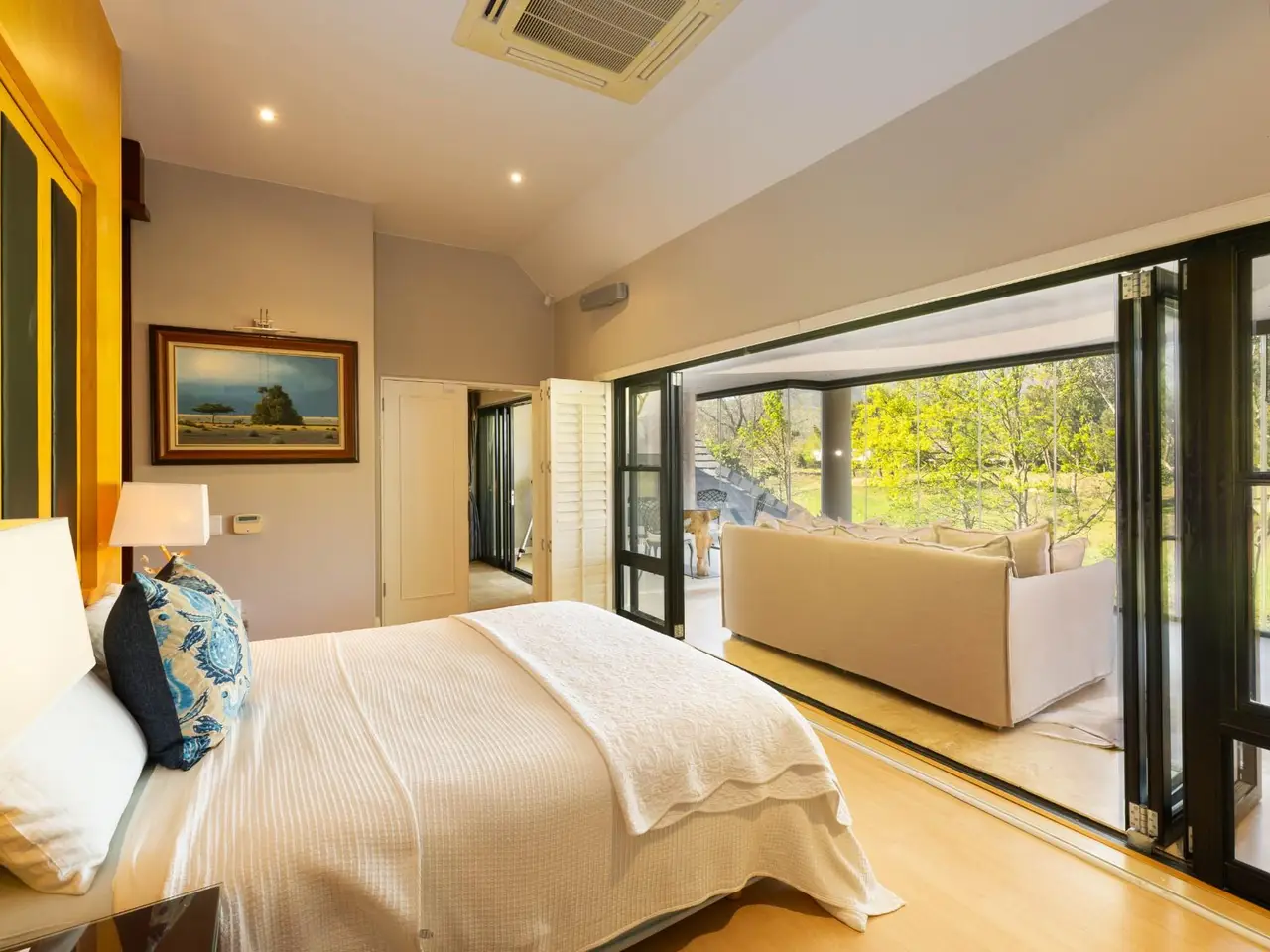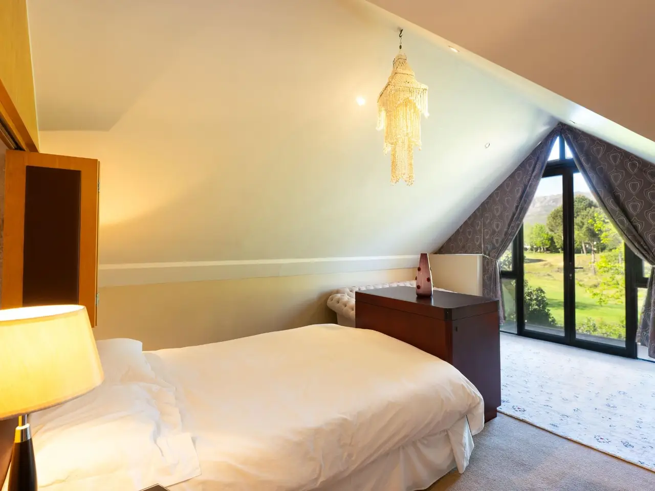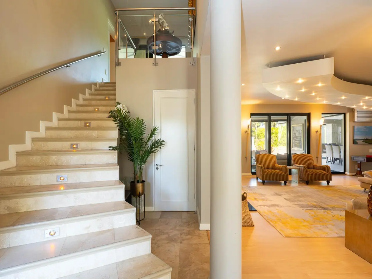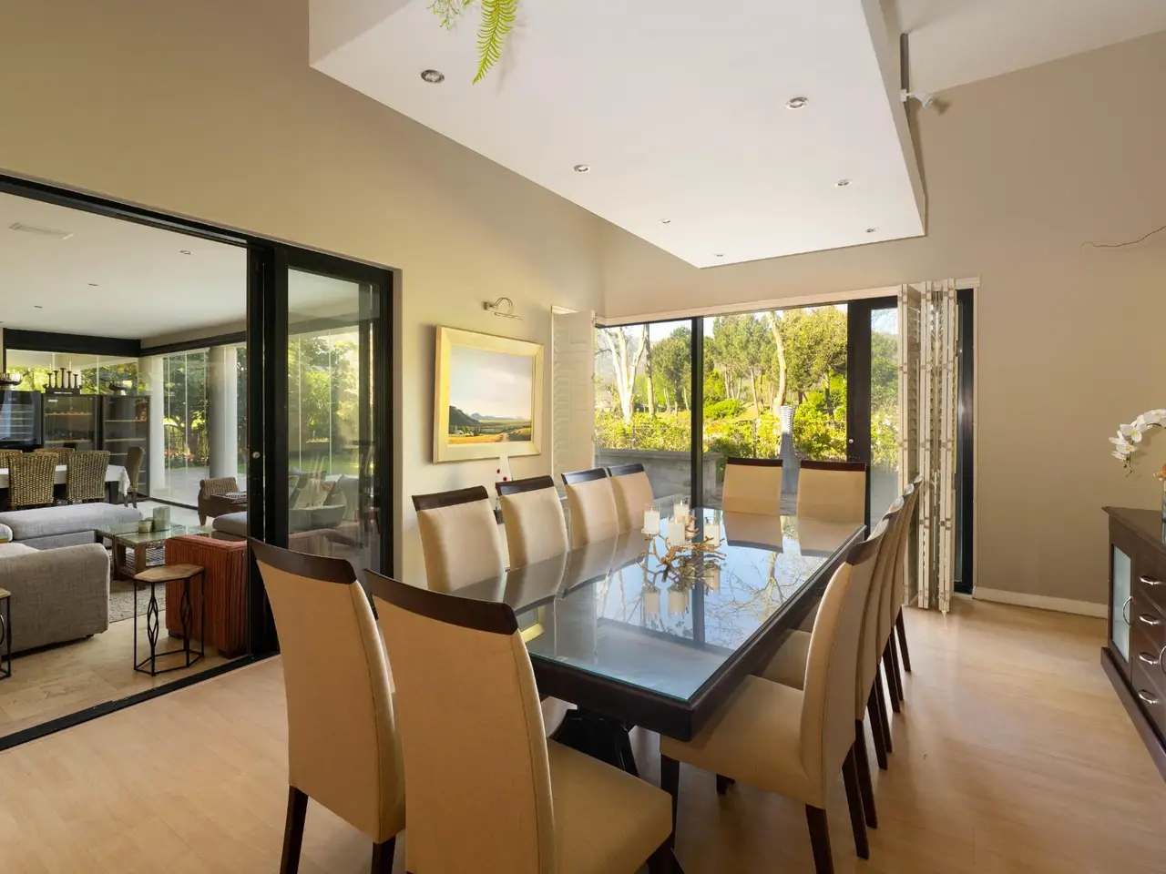 This magnificent residence offers a lifestyle of sophistication, space, and seamless indoor-outdoor living - perfectly positioned on the 15th fairway of the world-renowned Jack Nicklaus Signature Golf Course. Interior Features: -Entrance Hall with sweeping staircase -Guest Cloakroom -Formal Lounge with wood-burning fireplace and stacking doors to the enclosed braai room -Open-Plan Kitchen with central island, elegant breakfast bar, and sleek cabinetry -Scullery with private drying yard -Open-Plan Dining Room with stacking glass doors to the garden -Open-Plan Sitting Room with stacking doors to covered patio with extendable awning -Private Cinema Room for immersive entertainment Main Bedroom Suite with: -En suite bathroom (double basins, soaking tub, dual walk-in shower) -Spacious dressing room -Enclosed rooftop terrace with fireplace, drop-down TV, built-in coffee station & mini-fridge Bedrooms: -3 Additional En Suite Bedrooms, each with private dressing areas: -One upstairs with private balcony & golf course views -Two downstairs: one opens to pool & garden, another to a private courtyard with separate entrance Self-Contained Flatlet -Above garage with lift access: -Private entrance, sitting area, kitchenette, spacious bedroom & full en suite bathroom (double basins & shower) Outdoor Living & Entertainment: -Indoor Braai Room with built-in wood braai & under-counter bar fridges -Undercover Patio with extendable awning -Sparkling Swimming Pool with tranquil water feature -Landscaped Garden with direct access to golf course pathway (ideal for walks or morning jogs) -Golf Cart Garage -Double Garage Additional Features: -Enclosed Roof Terrace with automated blinds -Solar Power System (Solar panels + Inverter + 4 x 5kWh batteries) -Central Vacuum (Vacuflo) System -Chlorinated Swimming Pool -Top-tier Security in one of South Africa's premier estates -World-Class Estate Amenities: Golf, clubhouse, nature trails, and more