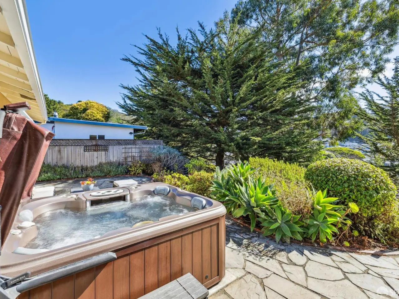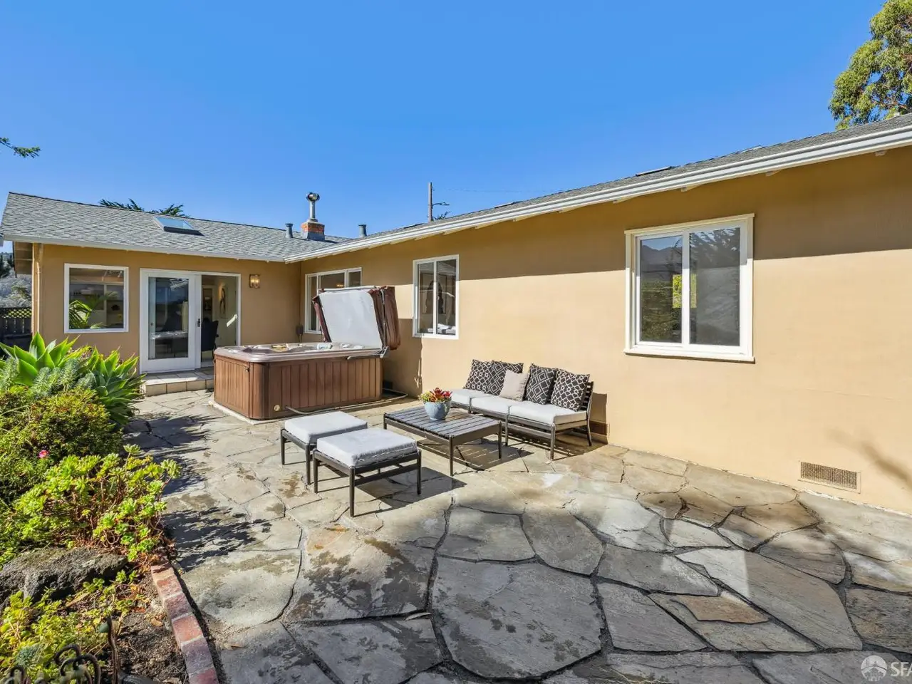 Peaceful Coastal Listing in Pacifica - Discover this beautifully updated 3-bedroom, 2-bath home with a private primary en suite. Designed for comfort and style, this home features an inviting, light-filled family room with new carpet and views of the lush coastal mountains. The updated kitchen and baths combine modern finishes with timeless appeal, while newly refinished hardwood floors add warmth and character throughout. Unwind outside in the relaxing hot tub, enjoy the freshly landscaped, low-maintenance front yard, or plant your favorites in the raised garden beds out back. A spacious two-car garage offers generous storage and convenience. Experience the best of Pacifica's Linda Mar neighborhood peaceful coastal lifestyle surrounded by beaches, trails, and nature, yet just a short drive to the city.