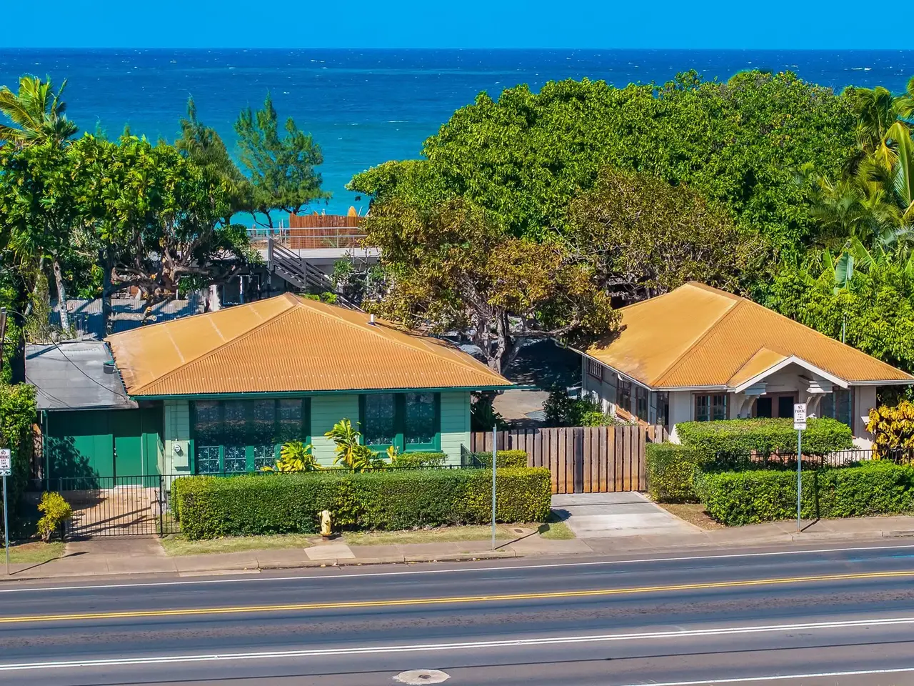 Experience the ultimate beachfront lifestyle on Maui's North Shore with this meticulously maintained landmark property. Located in vibrant Paia at Paia Bay, this fully gated four-building oceanfront compound features two complete houses totaling 3 bedrooms and 3.5 baths. The larger cottage offers 2 bedrooms, 2.5 baths, and a versatile third space perfect for an office or flex area, while the second cottage provides a cozy 1 bedroom, 1 bath setup ideal for extended family or guests. Additional amenities include a detached garage with ample storage and a charming greenhouse, all just steps away from Maui's pristine sandy beaches. Situated within walking distance to top North Shore restaurants, boutique shops, and renowned yoga studios, this property seamlessly blends vintage elegance with modern convenience. Whether you're surfing right out front, bodyboarding, or simply relaxing by the ocean, you'll enjoy the perfect balance of historical charm and contemporary living. Embrace the coastal lifestyle in this exceptional beachfront compound, where every detail has been thoughtfully preserved to offer both comfort and timeless beauty.