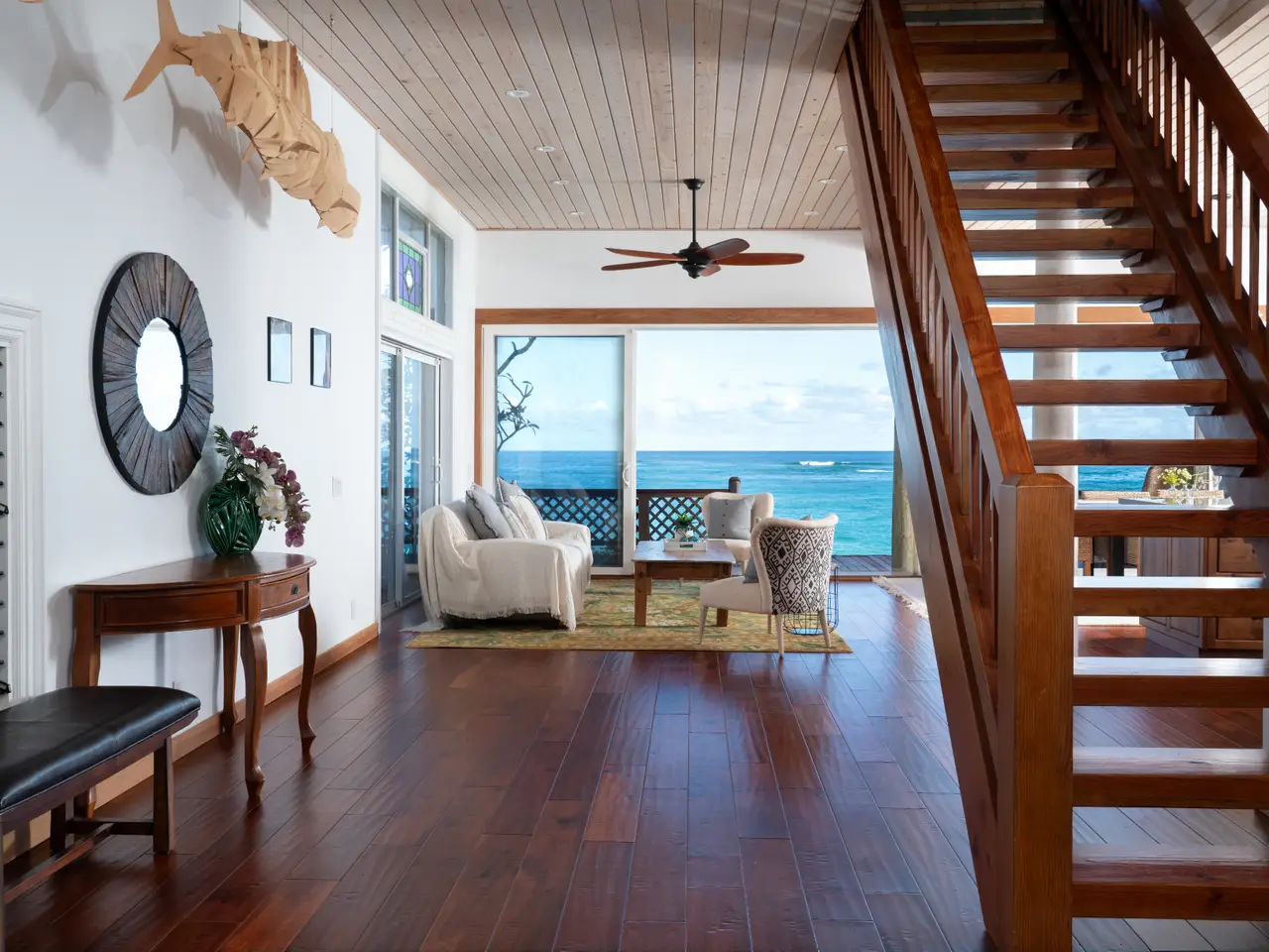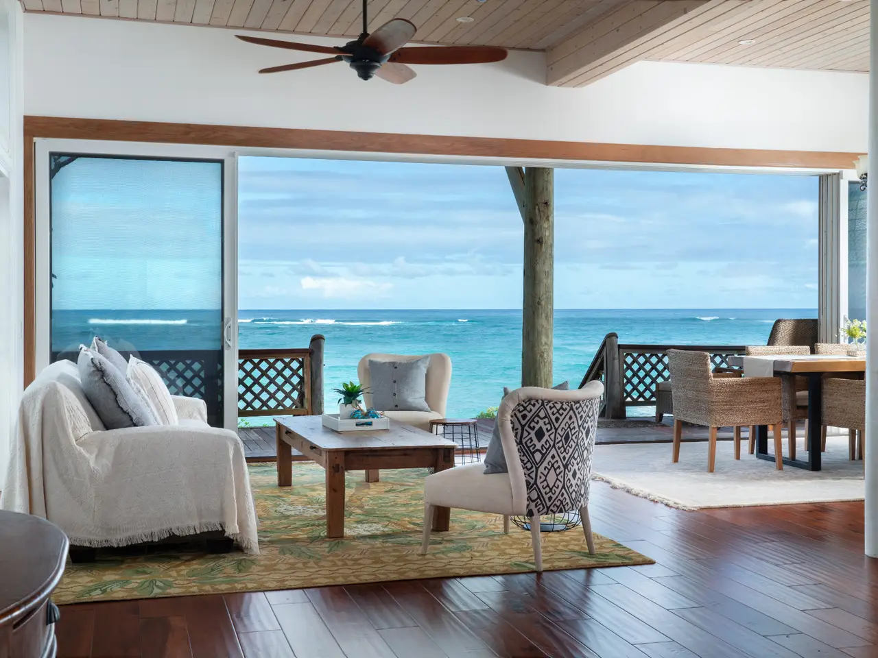 Oceanfront home and cottage in a highly desirable private and quiet Kuau neighborhood on Maui’s renowned North Shore. This unique offering is ideally situated in the perfect location, just minutes away from sandy beaches, Kuau Store, Mama’s Fish House, and a quick drive to the lively town of Paia - known for its boutique shopping, local dining options, and vibrant plantation style charm. The main residence is a 4-bedroom, 3-bath home that captures the relaxed island lifestyle with its thoughtfully remodeled interior and breezy, beach-inspired exterior. The first floor features an open-concept layout with wall-to-wall sliding doors providing captivating ocean views as a backdrop with complimentary high ceilings. The expansive sliding doors open up to a wrap-around lanai just off the kitchen and dining area, seamlessly blending indoor and outdoor living while showcasing stunning ocean views and refreshing trade winds. The first floor hosts a guest bedroom, and a full guest bathroom. Upstairs, you will find the primary suite with ensuite, two additional bedrooms, and a second living area with panoramic views spanning from Kahakuloa and Molokai, to Kuau Bay with Ho’okipa just around the corner. Outdoor enthusiasts will appreciate the proximity to world-class water and wind sports such as surfing, kite surfing, wind surfing, diving, paddling, and shelling all just steps away. Adding to the appeal is a charming detached 3-bedroom, 2-bath cottage with classic plantation-style architecture, ready for your personal touch and available to generate potential rental income. This property offering is your opportunity to own in one of Maui’s most coveted locations, where the rhythm of the ocean meets you at the comfort of your home.