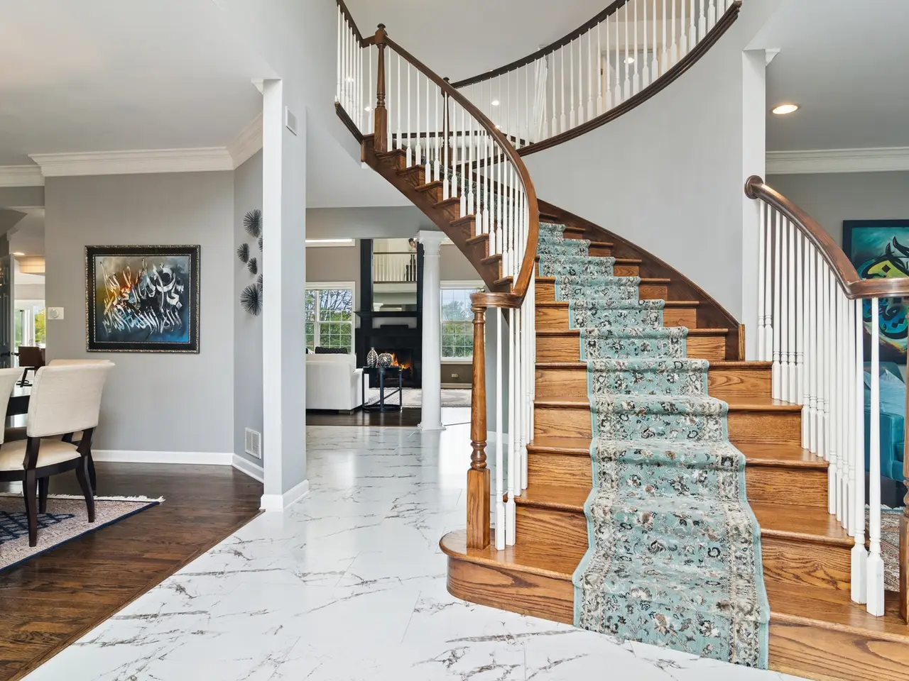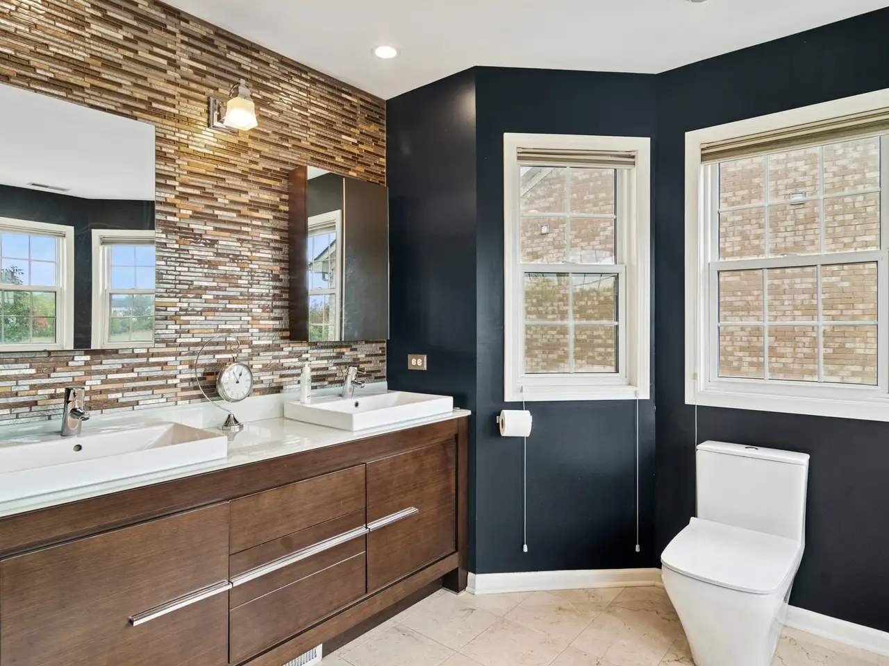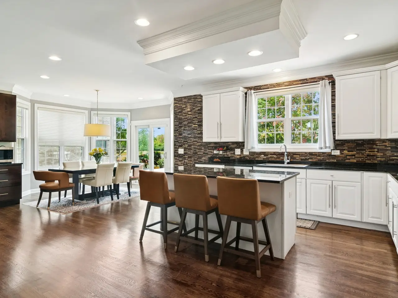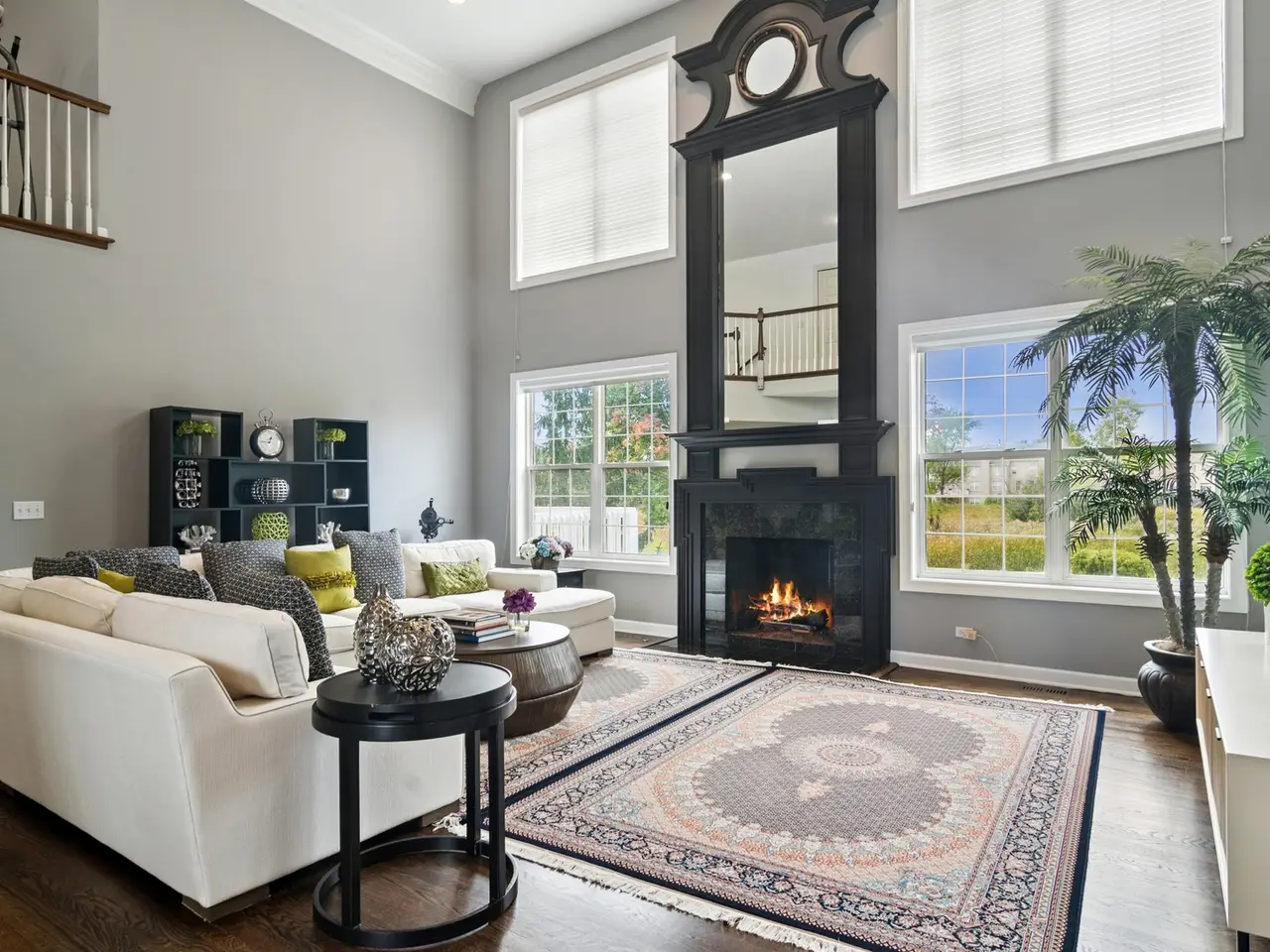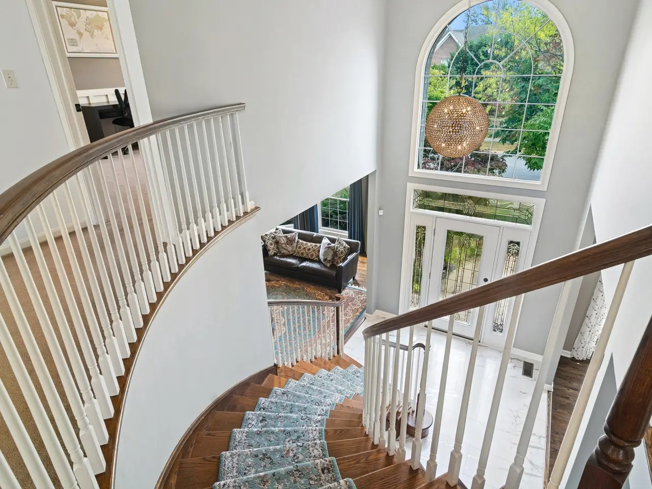 A HOME LIKE THIS DOES NOT COME ON THE MARKET OFTEN. Make sure you don't miss this stunning, elegant home in Peregrine Lake Estates. The perfect blend of open concept living yet the right amount of separation for cozy, defined spaces. A perfect floor plan for entertaining, working, and just everyday living. Enter the elegant foyer with soaring ceilings, porcelain tile flooring, breathtaking lighting, and a winding staircase. A lovely formal living room and dining room greets you at the entrance with beautiful bay windows & rich dark wood floors. The family room feels so luxurious with the 18 ft. soaring ceilings, and updated fireplace yet it's the perfect spot for relaxation. The updated gourmet kitchen with granite countertops, backsplash, center island, pantry, and a spacious eating area is both functional and tastefully done. Need to go upstairs? This kitchen is complete with a back staircase! A charming office with built-ins and a full bath on the first floor make for ideal main floor living. The primary suite is a perfect blend of warmth & elegance with a walk in closet, a sitting area with built-ins, and an lovely updated primary bath. The second bedroom has its own full bathroom and walk-in closet. Two more generous size bedrooms and another full bath complete the second level. Downstairs is the full walkout basement that will take your breath away with everything it has to offer. Flooded with tons of natural light all afternoon with the western exposure, this is the absolute must see spot for all your gathering and entertaining. A full bar in the rec room area, another family room area toward the rear, a full bath and another guest suite or office if needed. All freshly painted, recessed lighting, and great ceiling height make for the ideal additional living, entertaining space. And of course you can just walk right outside to your backyard retreat. Whether it's up on the deck or on the patio just enjoy the view of nature. Peregrine Lake Estates is the perfect blend of comfort, elegance and nature all in one of Palatine's most desirable neighborhoods. With the mature tree lined streets, and tranquil ponds this is such a lovely picturesque community yet close to everything you could want as far as shopping, dining, parks, and award winning Fremd High School. Updates include*NEW ROOF 2023* 2023 NEW HOT WATER HEATERS* NEW EPOXY GARAGE FLOOR JUST COMPLETED* BRICK PAVER DRIVEWAY REDONE 2024* Come see this scenic beauty and the lasting value of this location today.