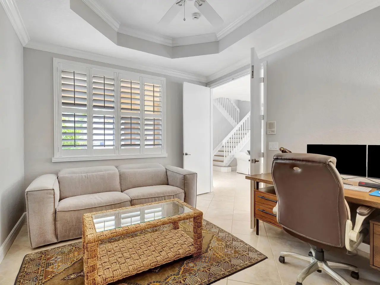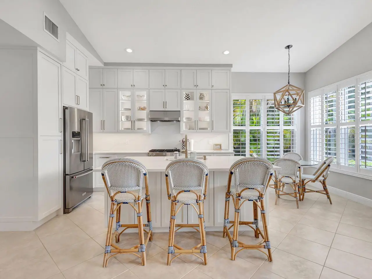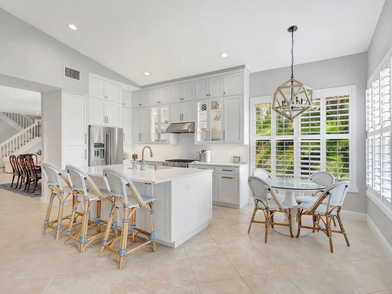 Nestled within the prestigious, guard-gated enclave of Mirabella, this exquisitely upgraded residence offers four spacious bedrooms plus a versatile den--ideally positioned on the main level with an adjacent full bath, easily convertible to a fifth bedroom--encompassing over 3,270 square feet of elegantly appointed living space tailored to today's discerning buyer. A grand two-story layout combines timeless architectural details with sophisticated, contemporary renovations, creating a home that is both inviting and impressive. The heart of the home is a fully reimagined gourmet kitchen, completed in late 2022. No detail was overlooked--from custom cabinetry and premium KitchenAid appliances to soft under-cabinet lighting and striking glass-front cabinets with illuminated interiors.