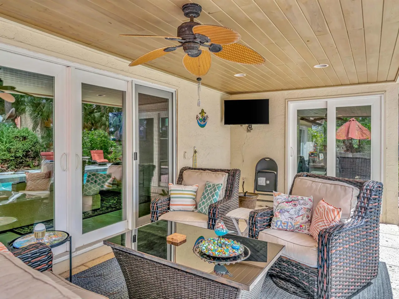 Located on quiet cul-de-sac in Thurston. This 3 bedroom, 3.5 bath boasts unbeatable golf course views. Two patios on the fairway make entertaining quite comfortable. Features include impact window, doors, and garage door. Plenty of room for two cars, motorcycle and storage. Includes Tesla charging station and oversized storage above in the garage. Freshly landscaped with new sprinkler system, 3 zone a/c's with 2 new a/c's. Brand new kitchen and appliances. Large pantry/storage off the kitchen. Sunroom has newly refurbished flat roof/sundeck. Huge laundry room with washer and 2 dryers. Security system in the home. Newly paved driveway and walkway