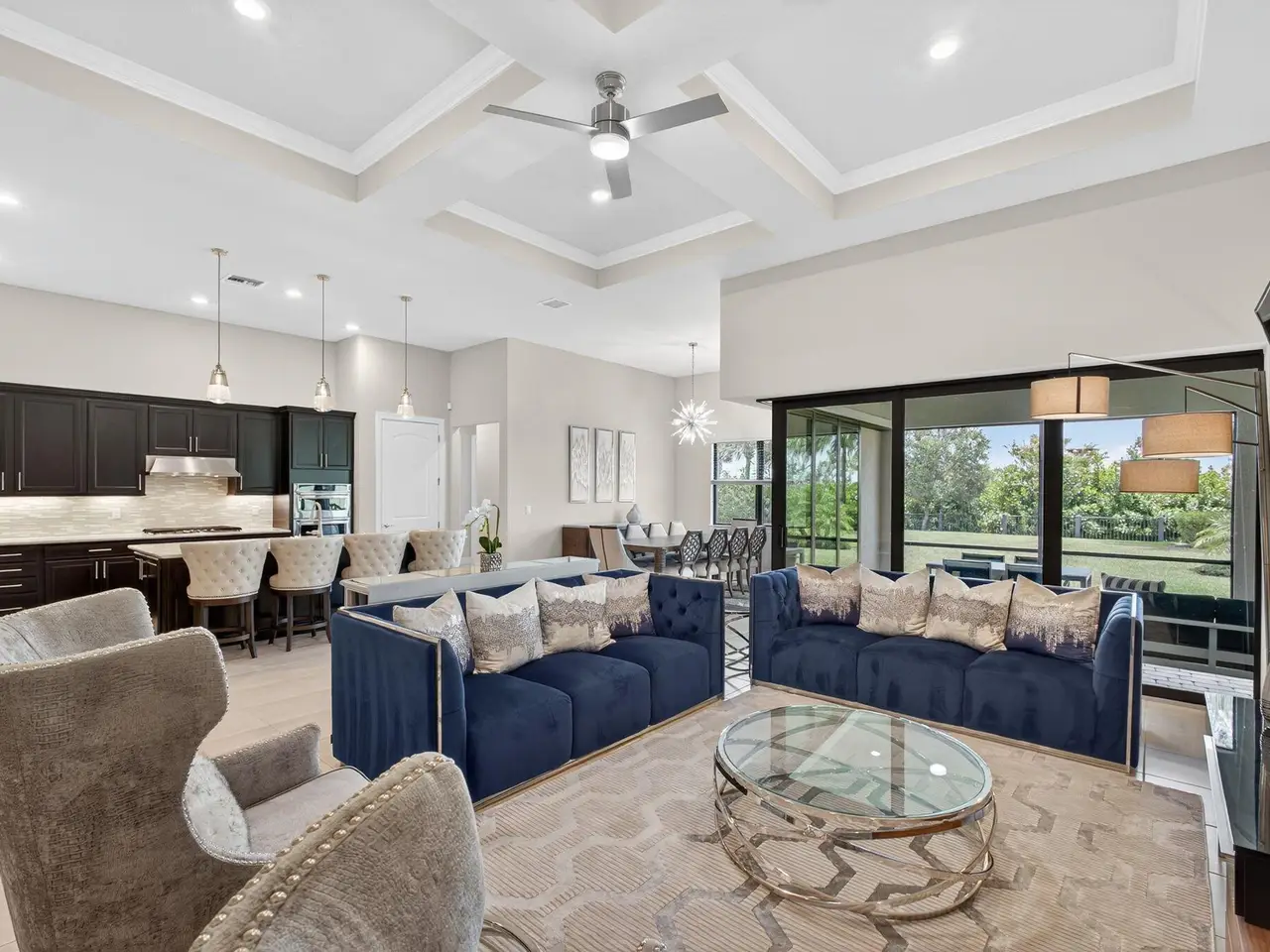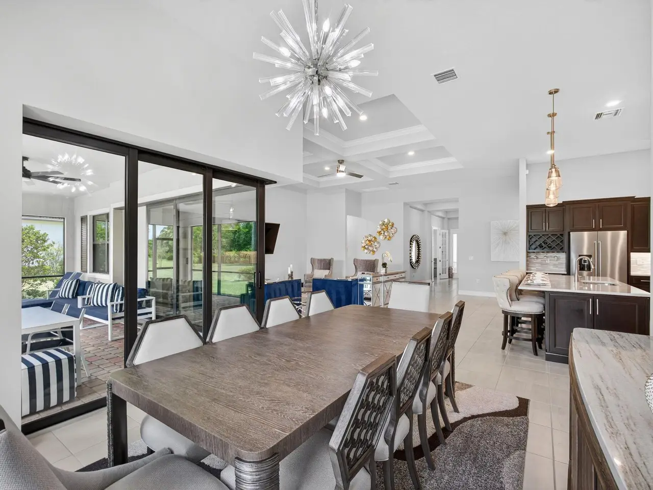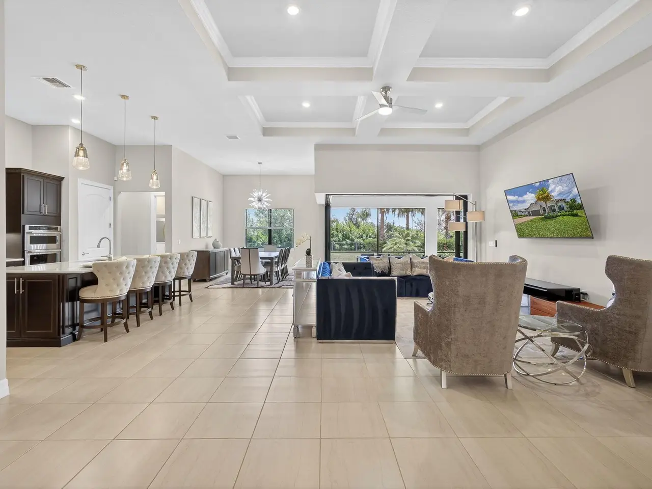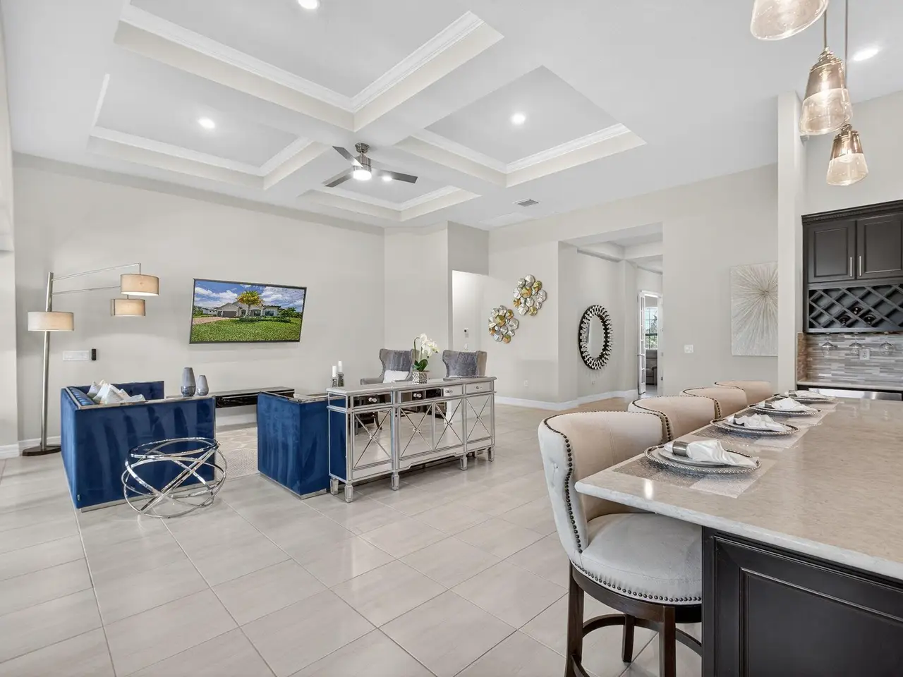 Unparalleled Elegance in this 2022, 4 Bedroom, 3 Bathroom with Den/Office Home on a Large Spacious Lot in the Prestigious Ancient Tree Community. This Distinguished Residence is the Epitome of Luxury Florida Living, Perfect for both Indoor and Outdoor Entertaining. A Well Appointed Chef's Kitchen Features Top of the Line Stainless Steel Kitchen Aid Appliances, Gas Range, Custom Island, Upgraded Cabinetry and Wine Bar. An Open Floor Plan Accents a Great Room filled with Stylish Designer Finishes like a Coffered Ceiling, Porcelain Floors and Zero Corner Sliders that lead into a Screened Lanai complete with Breathtaking Sunsets. The Primary Suite is Adorned with Spacious His & Hers Walk-In Closets with Built-Ins and a Lavish Bathroom. This Beautiful Home Truly Has it All, Move in Ready!!
