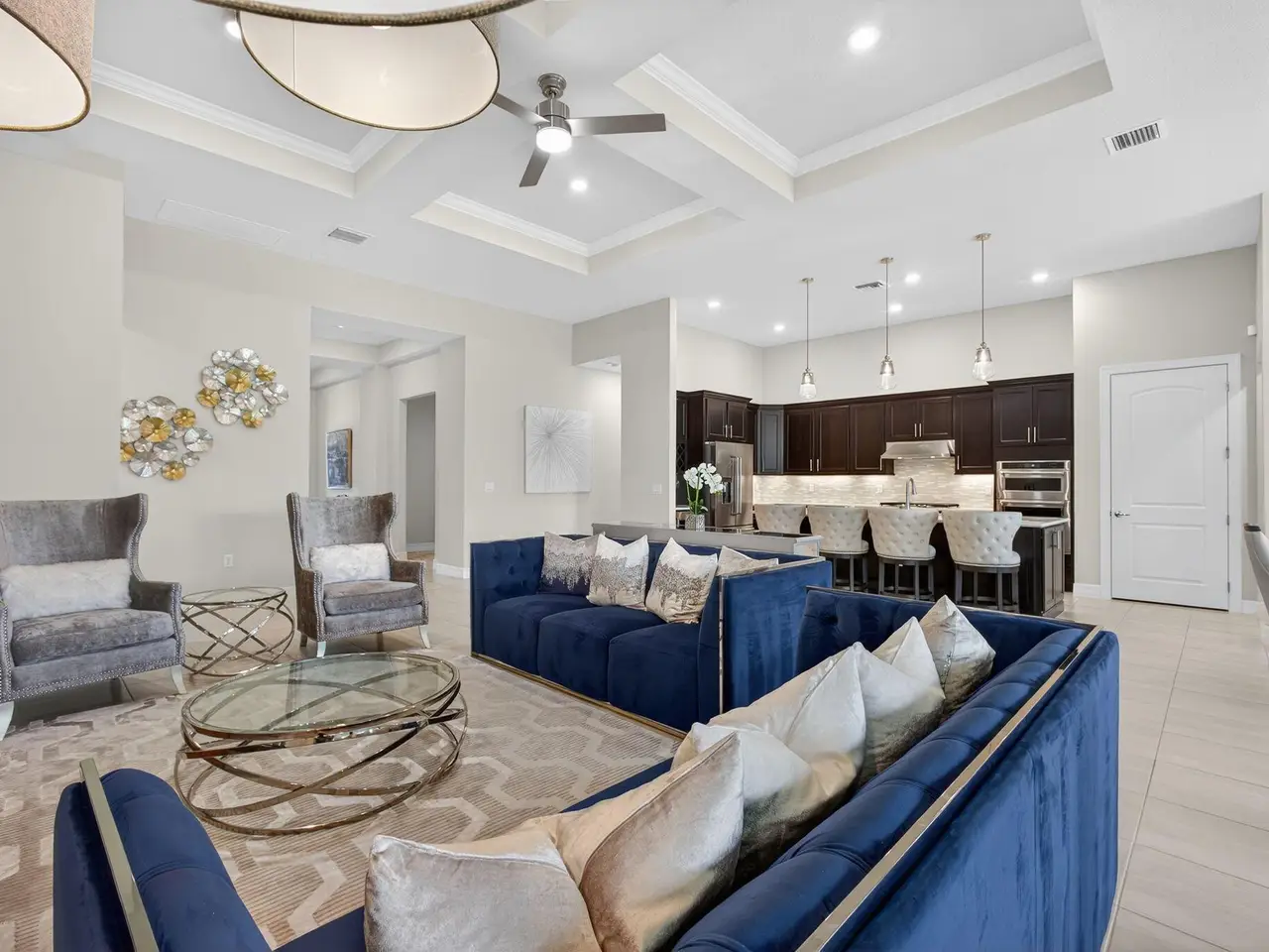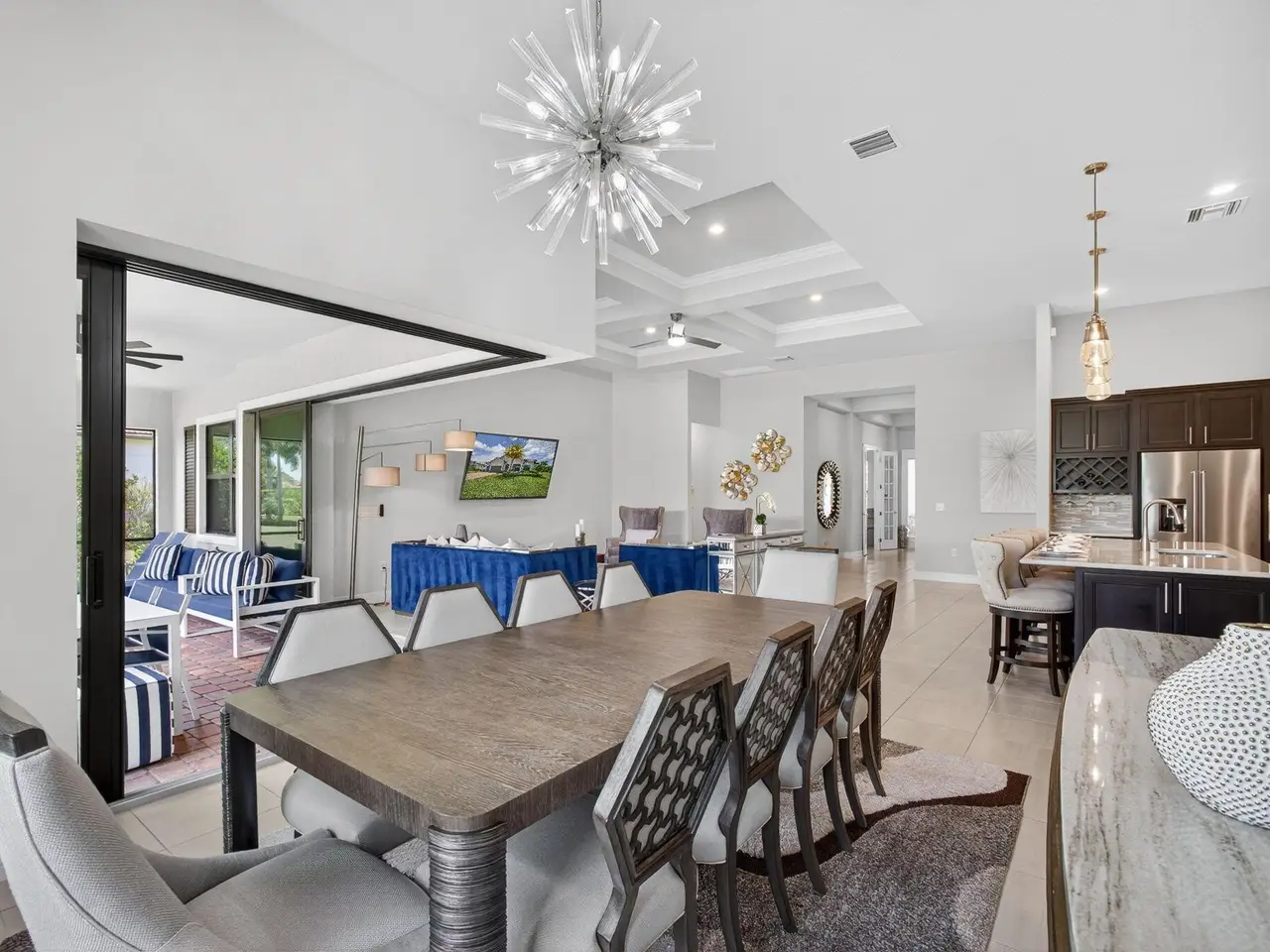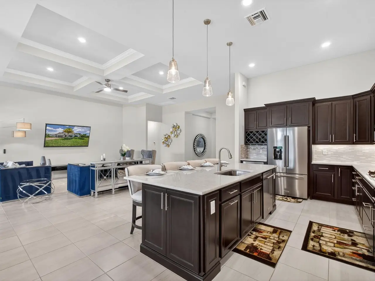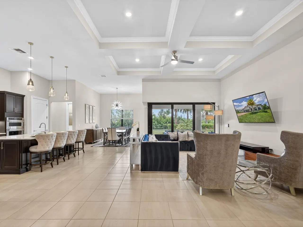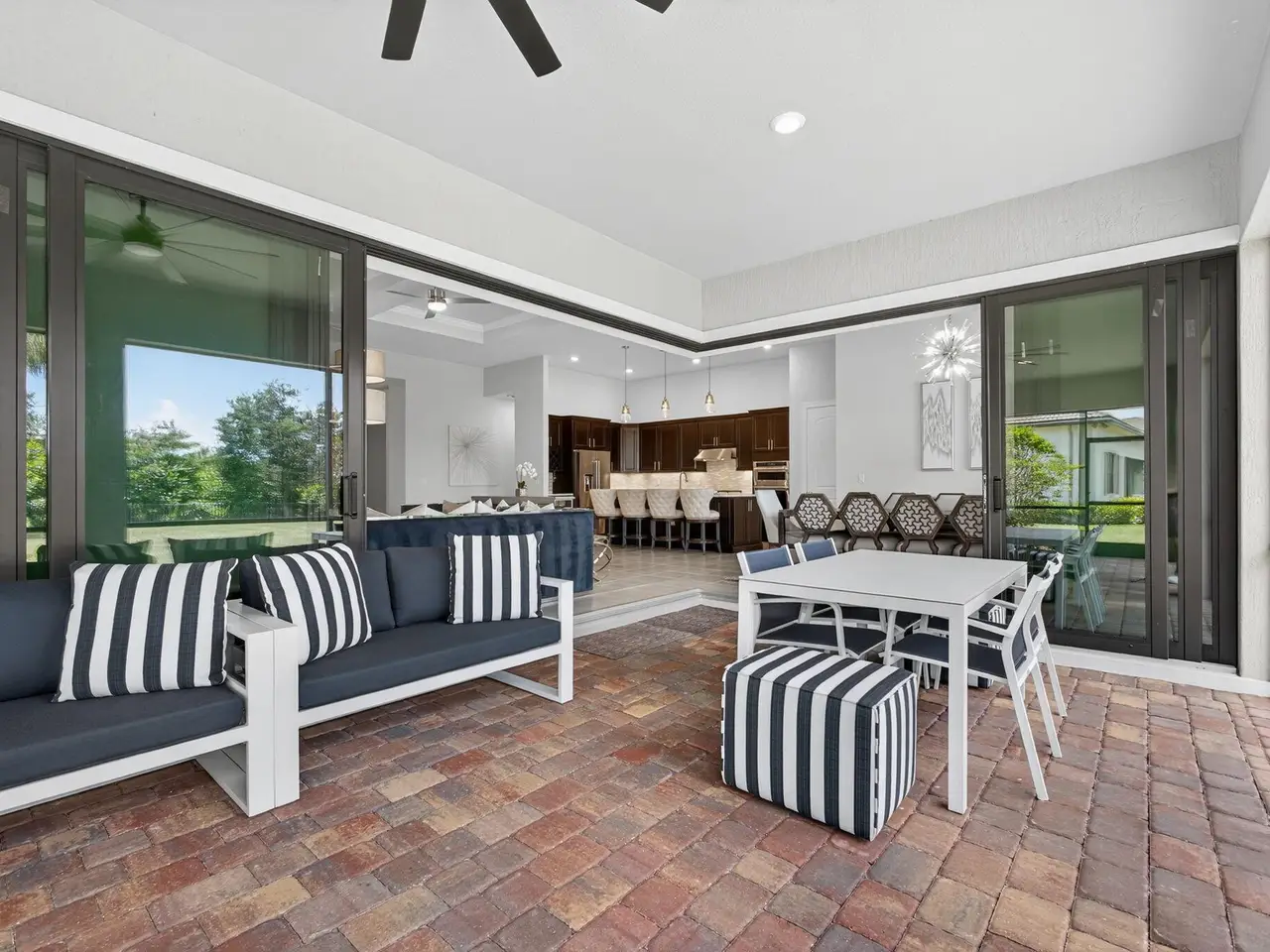 Unparalleled Elegance in this 2022, 4 Bedroom, 3 Bathroom with Den/Office Home on a Large Spacious Lot in the Prestigious Ancient Tree Community. This Distinguished Residence is the Epitome of Luxury Florida Living, Perfect for both Indoor and Outdoor Entertaining. A Well Appointed Chef's Kitchen Features Top of the Line Stainless Steel Kitchen Aid Appliances, Gas Range, Custom Island, Upgraded Cabinetry and Wine Bar. An Open Floor Plan Accents a Great Room filled with Stylish Designer Finishes like a Coffered Ceiling, Porcelain Floors and Zero Corner Sliders that lead into a Screened Lanai complete with Breathtaking Sunsets. The Primary Suite is Adorned with Spacious His & Hers Walk-In Closets with Built-Ins and a Lavish Bathroom. This Beautiful Home Truly Has it All, Move in Ready!!