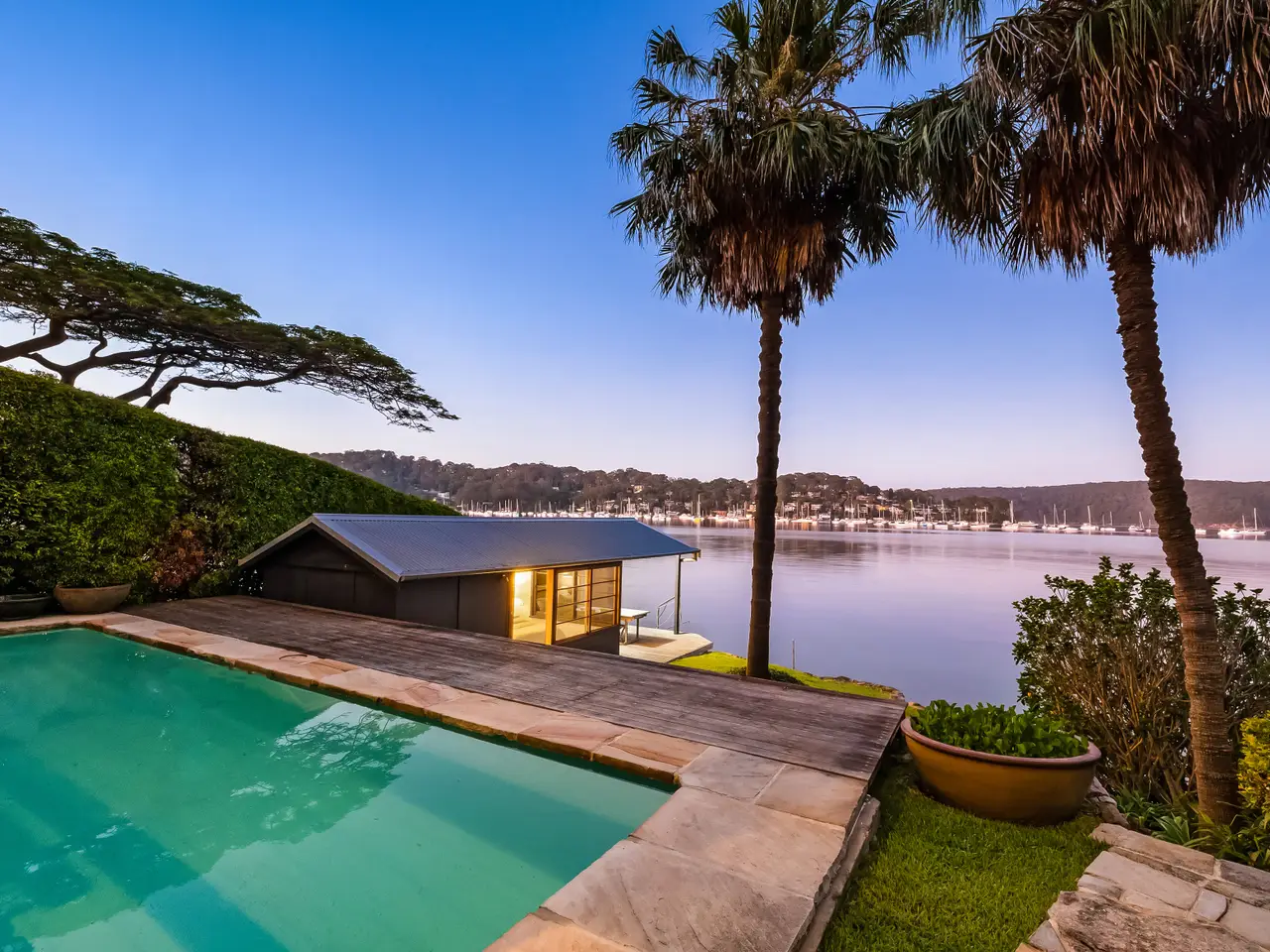 Par excellence. It's not a term to throw around lightly, but this waterfront beauty is well-deserving of the title; architecturally designed by Geoffrey Watson, the home is at once earthy, simple and luxurious. The interiors are framed by polished timber, sandstone and glass; these organic textures combine with its clean, uncluttered lines as a complement to the stunning Pittwater backdrop. Vast banks of mullioned doors open the home entirely to waterfront decks, resort-style pool and finished boathouse. An impressive entertainer, the gleaming chef's kitchen features a polished marble island and stainless steel benchtops, Miele appliances plus butler's pantry; the lower level is fully self-contained and perfect for weekend guests – it's also DA approved as a fulltime or holiday rental. In addition, the boathouse and its surrounding deck and lawns are an absolutely captivating spot for entertaining, right on the waterfront. - Stunning design, inside and out; polished timber and sandstone - Privately sited on the waterfront parcel; dazzling Pittwater views - Fluid, open layout, mullioned sliding doors to the expansive decks - Ground level is a fully self-contained suite offering dual entrances - Streamlined kitchen with butler's pantry and European appliances - Enormous saltwater pool, level lawns, guest suite in the boathouse - DA approval for dual-occupancy or holiday letting on lower level - Master with ensuite and deck access; all bedrooms include built-ins - Finished studio under the double garage + ample offstreet parking - Wood fireplace, parquetry and hardwood floors, Japanese soak tub - Exquisite sandstone pathways and terraces right to the waters' edge