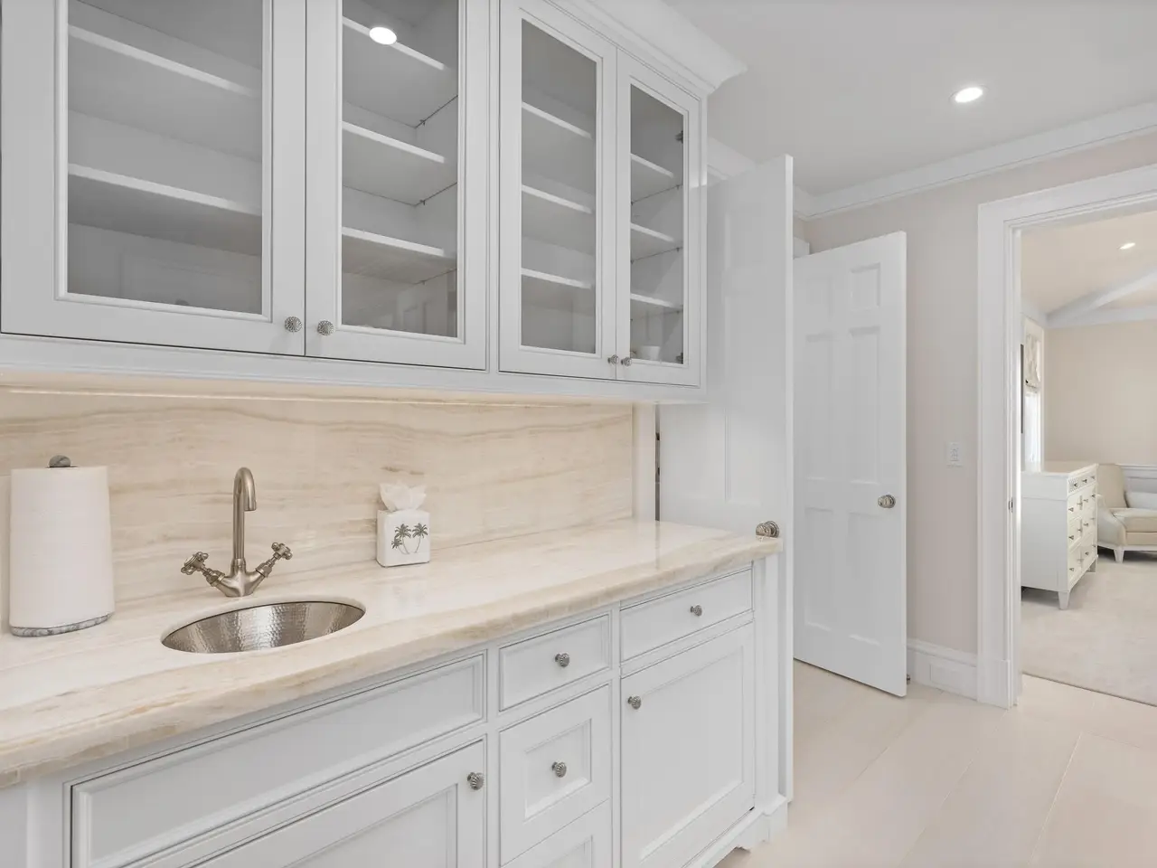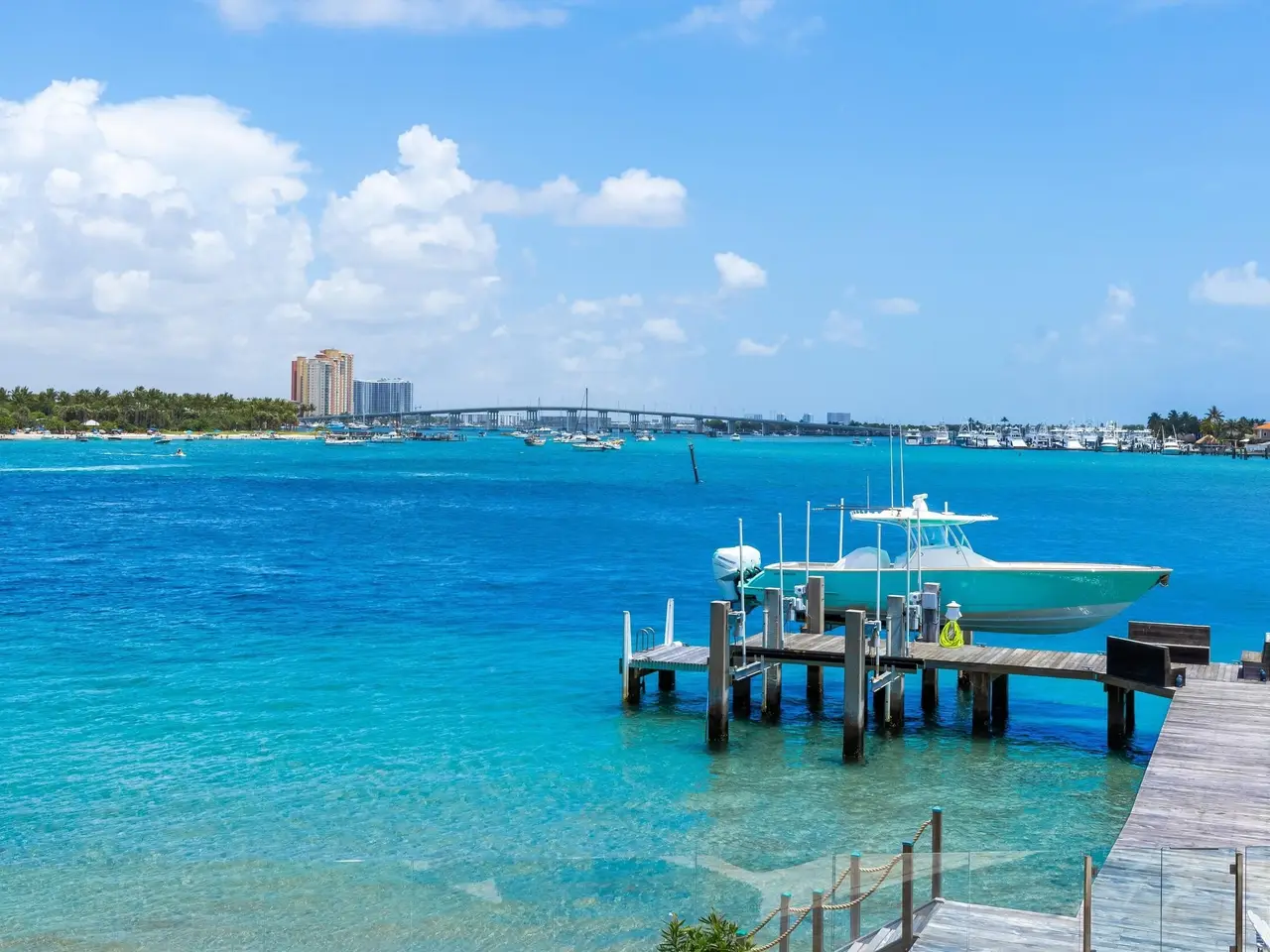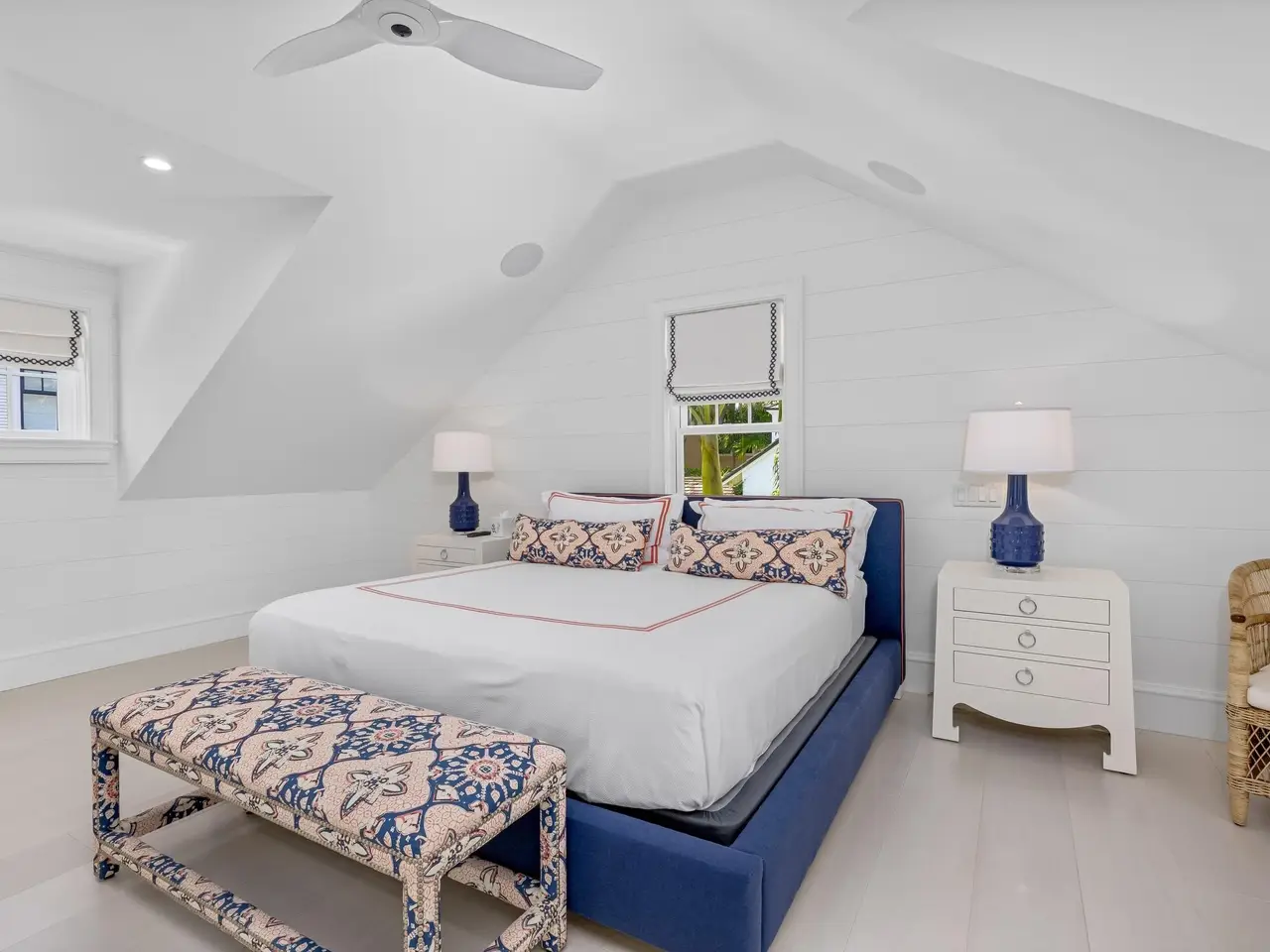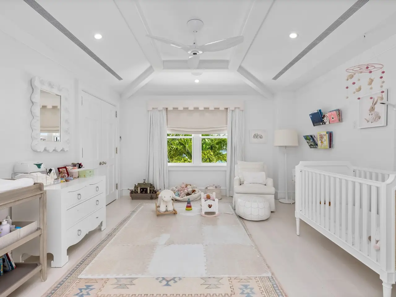 Stately fireplace with Bahamian blue water colors