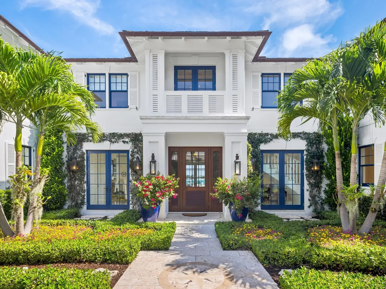Welcome to 1610 N Ocean Blvd, a rare opportunity to own a spectacular 6-bedroom, 7.2-bathroom waterfront residence, masterfully built in 2018. With breathtaking views from all principal rooms, this elegant estate offers the perfect blend of British West indies elegance and contemporary refinement. A long private, gated driveway leads to a grand, beautifully landscaped courtyard entrance - providing the feeling of entering a lush tropical compound. The iconic entryway leads into an expansive formal living room with a stately fireplace, with Bahamian blue water colors conveniently positioned as the perfect backdrop. The gourmet chef's kitchen is a culinary dream, featuring a large center island and seamlessly flowing into the spacious family room, ideal for relaxed entertaining.