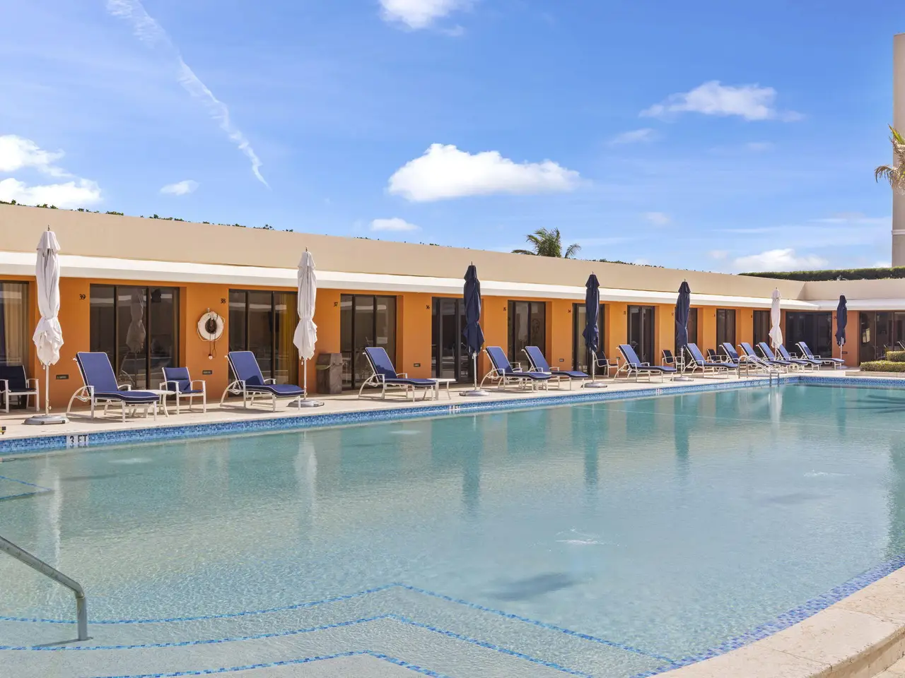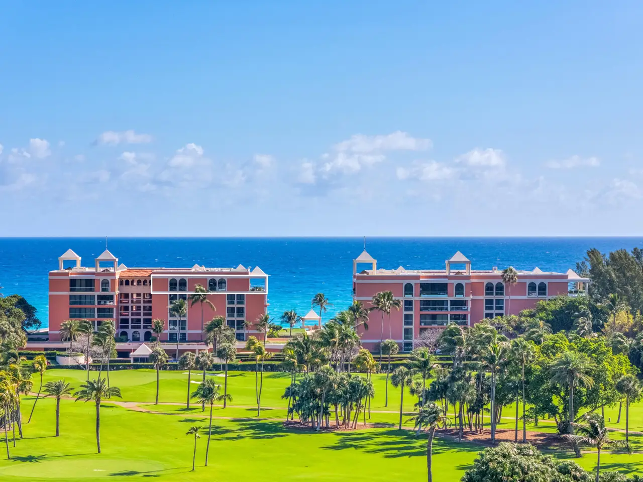 This elegant Palm Beach penthouse overlooks the city skyline, ocean, and The Breakers Hotel. Once owned by many notable socialites, this 3-bedroom, 3-bath residence offers scenic views and unmatched privacy. High ceilings and floor-to-ceiling windows fill the home with natural light, opening onto a covered patio perfect for taking panoramic views of the golf course, city & ocean. The spacious livingroom is lined with multiple windows and adjoins a separate kitchen with an island and a cozy bedroom/office down the hall.The primary suite, located just off the entry, offers expansive, boutique-style closets and a luxurious bath with soaking tub, walk-in shower, and dual vanities. A guest suite next door features its own en suite bath and Juliet balcony overlooking downtown West Palm Beach