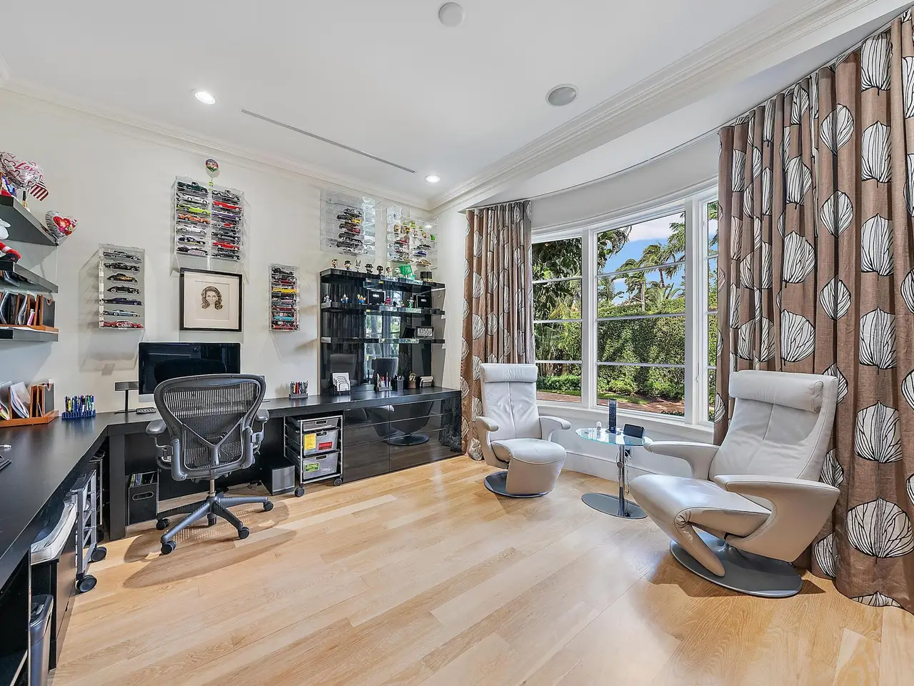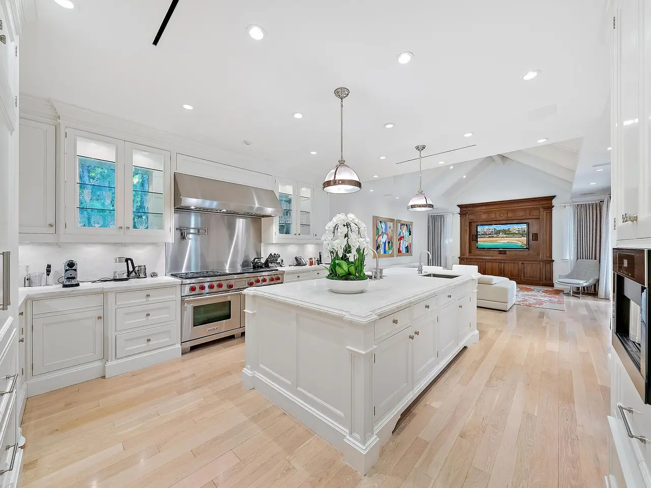 Discover this exquisite West Indies-style home, built and finished by Leeds Custom Design, and nestled on a picturesque 1/3-acre lot. An inviting open great room welcomes you, featuring a dual-sided fireplace that elegantly connects to the dining area. The kitchen is a culinary dream, showcasing a state-of-the-art Wentworth kitchen with Wolf, Sub-Zero, and Miele appliances, along with a large island and cozy breakfast area. The family room, complete with a home theater, is adjacent to a relaxing covert loggia with a beautiful wall fountain. Retreat to the primary suite, which exudes elegance with two ensuite bathrooms. All other bedrooms, each with an ensuite bath, are located on the second floor for added privacy.