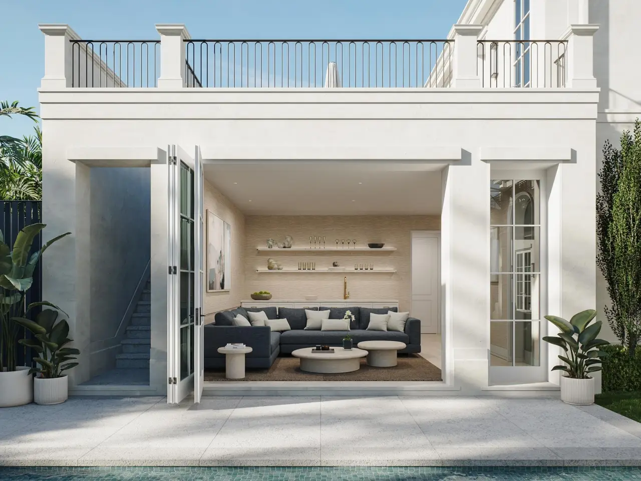 A prestigious in-town opportunity on Palm Beach Island, this new construction estate is perfectly positioned on the corner of Barton Avenue and Cocoanut Row. The home is designed by New York's Workshop/APD, with the finest attention to architectural details, and is being built by Brennan Construction. Situated ideally on an elevated lot, this gated residence delivers exceptional privacy alongside a true resort lifestyle - all just steps from The Royal, The Breakers, the Lake Trail and the Atlantic Ocean. While the property is in the heart of Town, the landscape design and thoughtful exterior layout ensure the feeling of a calm oasis, especially within the large pool area and lawn.