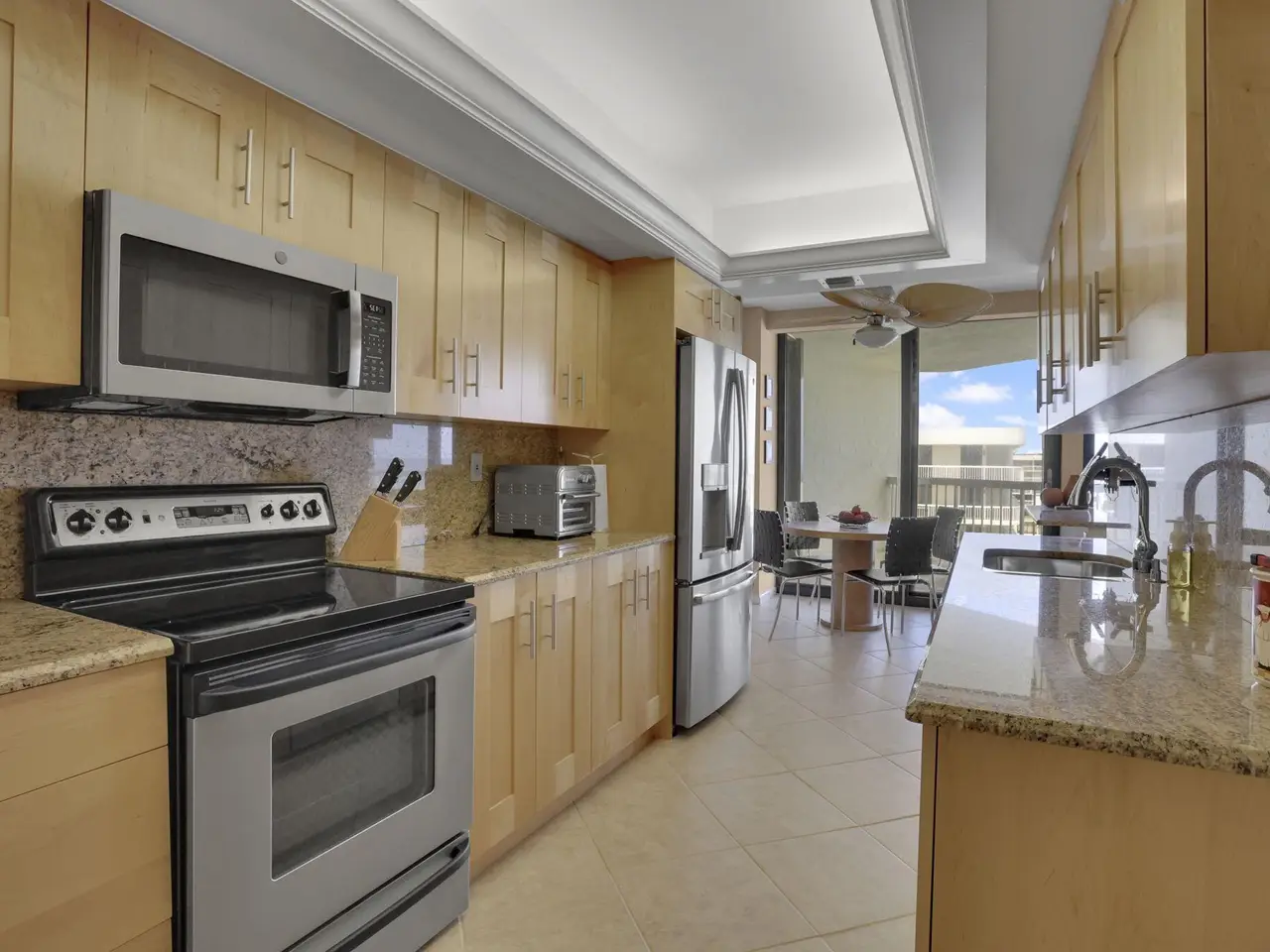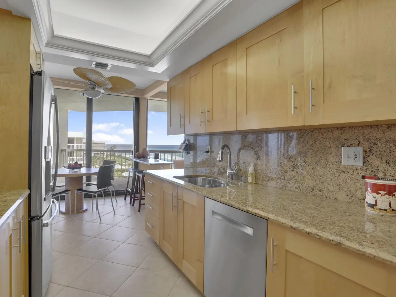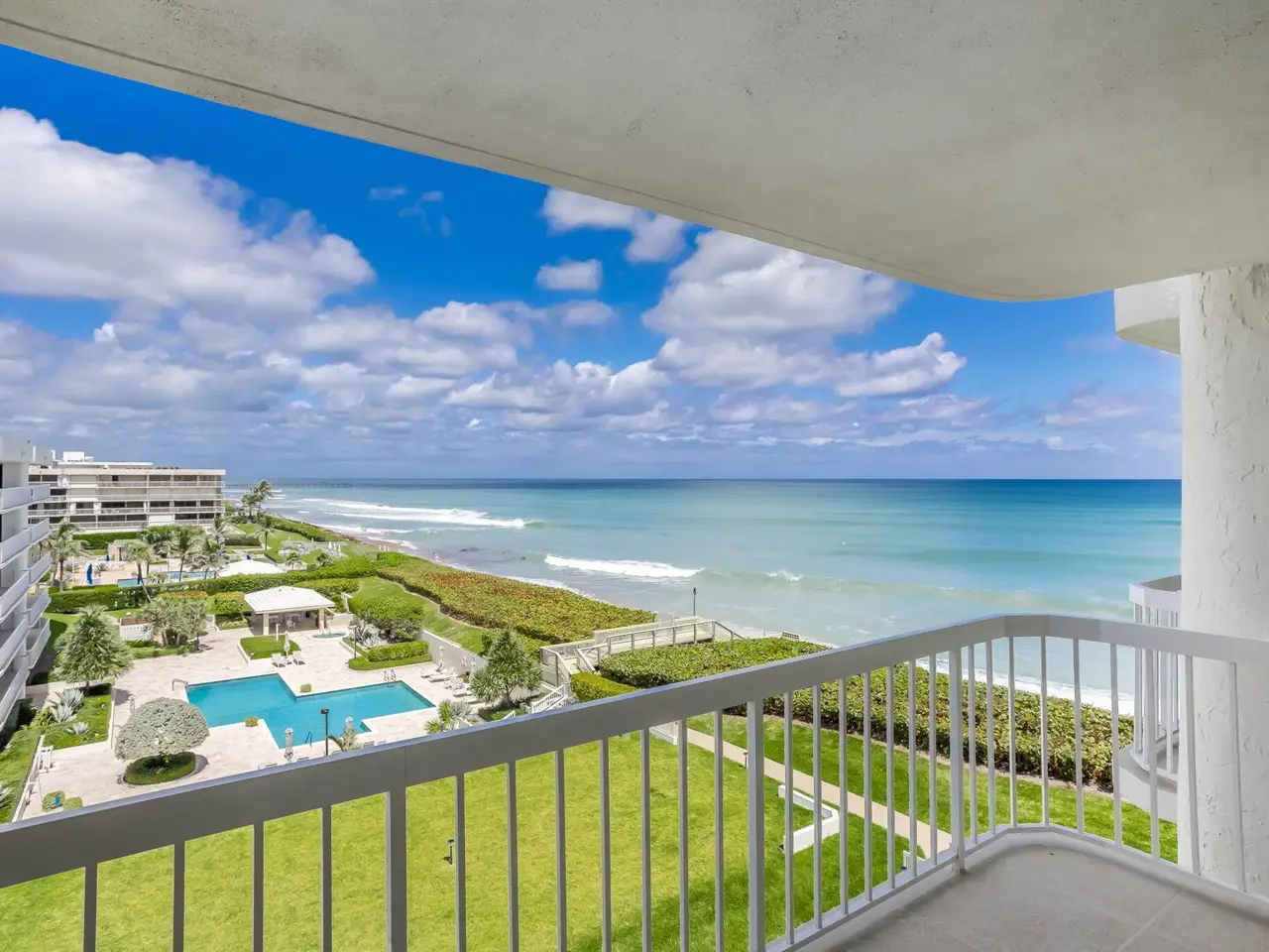 Expansive ocean and beach view from this large over 2,000 sf two bed, two bath top floor unit. Wide balcony access from every room, all rooms with ocean view. Unit has been meticulously upgraded and maintained. Building has undergone all required concrete restoration work and upgrades with all assessments to date having been paid by the Seller. Building includes, ft mgr, fitness center, tennis & pickleball courts, resort style pool and spa. Manned guard gate. Security and peace of mind is waiting for you at the Meridian of the Palm Beaches.