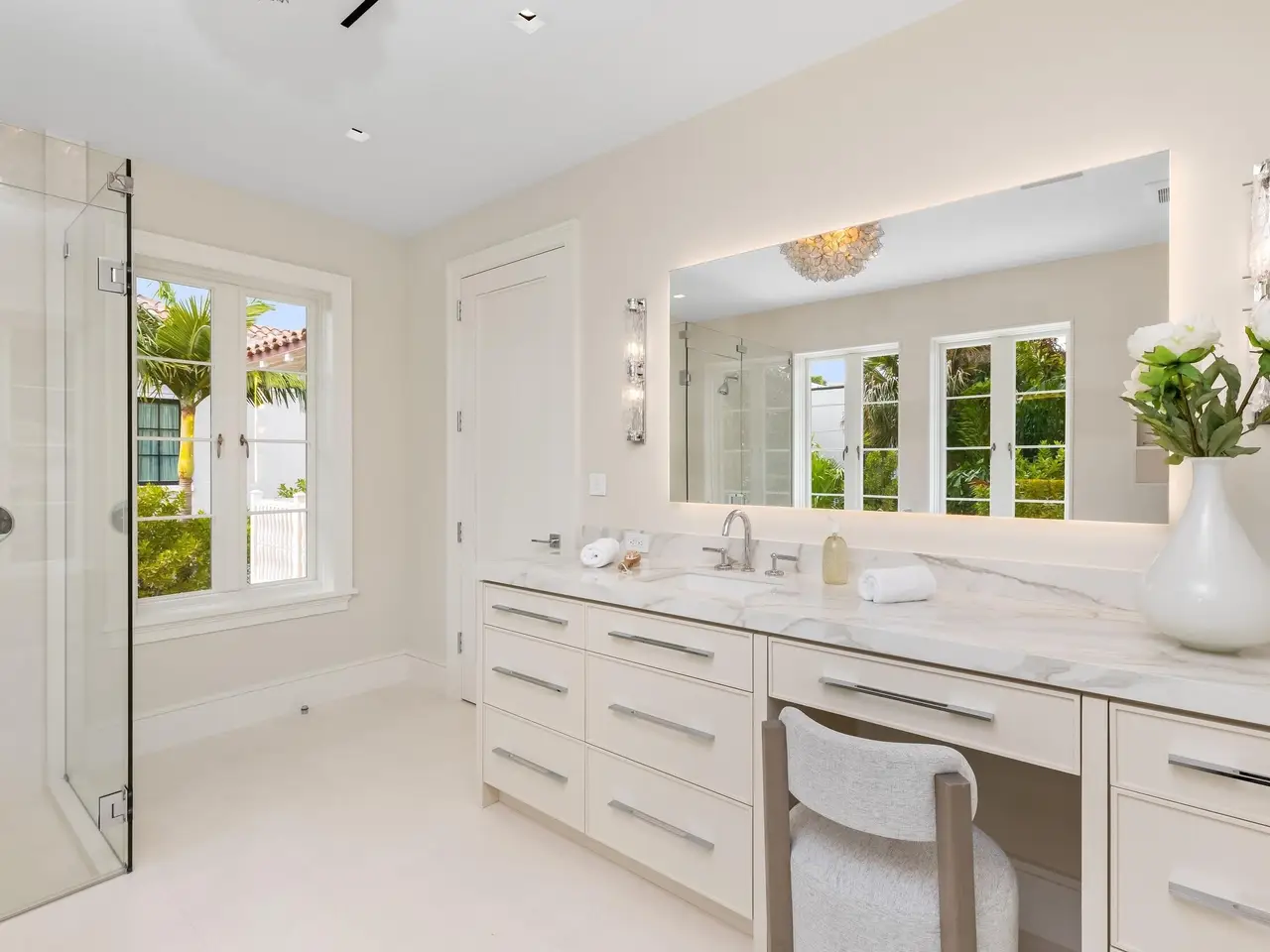 Welcome to 422 Australian Avenue, a newly constructed state-of-the-art Modern Mediterranean home with quintessential island finishes, situated ideally in the heart of Palm Beach. This 4 bedroom, 5 and a half bathroom turn-key residence is move-in ready and boasts classic tropical details including Cypress trim and Dominican Coral hardscape, French limestone floors throughout the first floor, hard-wood on the second floor, and an immaculately well thought out floor plan. The property features an elevator, high ceilings, outdoor loggia and shower, and a surplus of natural light throughout. The Primary suite includes his and her baths, his and her closets, and a lovely wet bar. With its perfect midtown locale, 422 Australian Avenue is just 3 blocks from renowned shopping and dining on Worth Avenue, with the Palm Beach Marina and Park also a stone's throw away. With new construction just recently completed in 2025, this mid-island property is expected to receive a Certificate of Occupancy shortly and will soon be ready for immediate enjoyment.