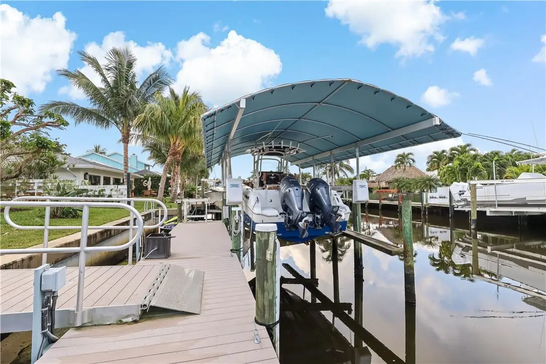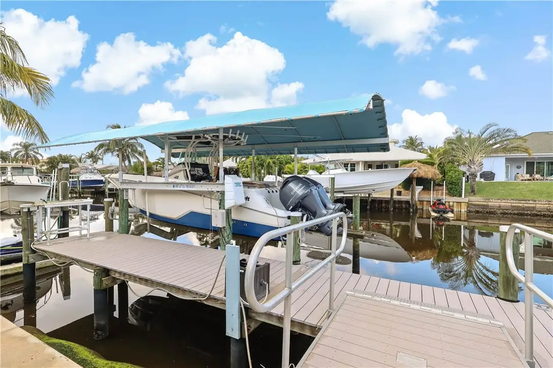 This coastal 3-bedroom, 2.5-bath home with a loft and 2-car garage is nestled in the highly desirable Lighthouse Point community. Situated on a canal with ocean access, this property boasts a 13,000-lb boat lift, a new dock (2020), and a seawall (2015), perfect for boating enthusiasts! The metal roof adds durability and charm, while the pool and spacious RV/boat parking provide convenience and leisure. Inside, you'll find an inviting layout with plenty of natural light, perfect for entertaining or relaxing after a day on the water. Don't miss this rare waterfront opportunity!