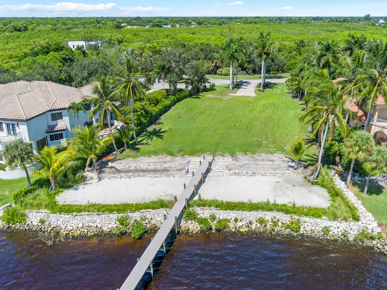 Discover the on?-?n-?-l?f?t?me opportunity t? own ? premier waterfront lot in one of the area's most desirable and sought-after locations. This wide-water parcel showcases panoramic water views, direct ocean access, and is fully equipped for immediate construction, it is a truly rare find in today’s market. Included are professionally designed architectural plans, so you can begin building your dream home right away. Wake up to serene sunrises and enjoy the coastal breeze from your own private sandy beach. The property features deep-water dockage, a brand-new dock with riprap, a 20,000-lb lift, and includes 50-amp power- perfect for accommodating multiple large vessels. With utilities in place, completed landscaping, and impact fees already paid, this lot offers a seamless start to your vision. Whether creating a private retreat or an exceptional investment property, this is a waterfront opportunity not to be missed.