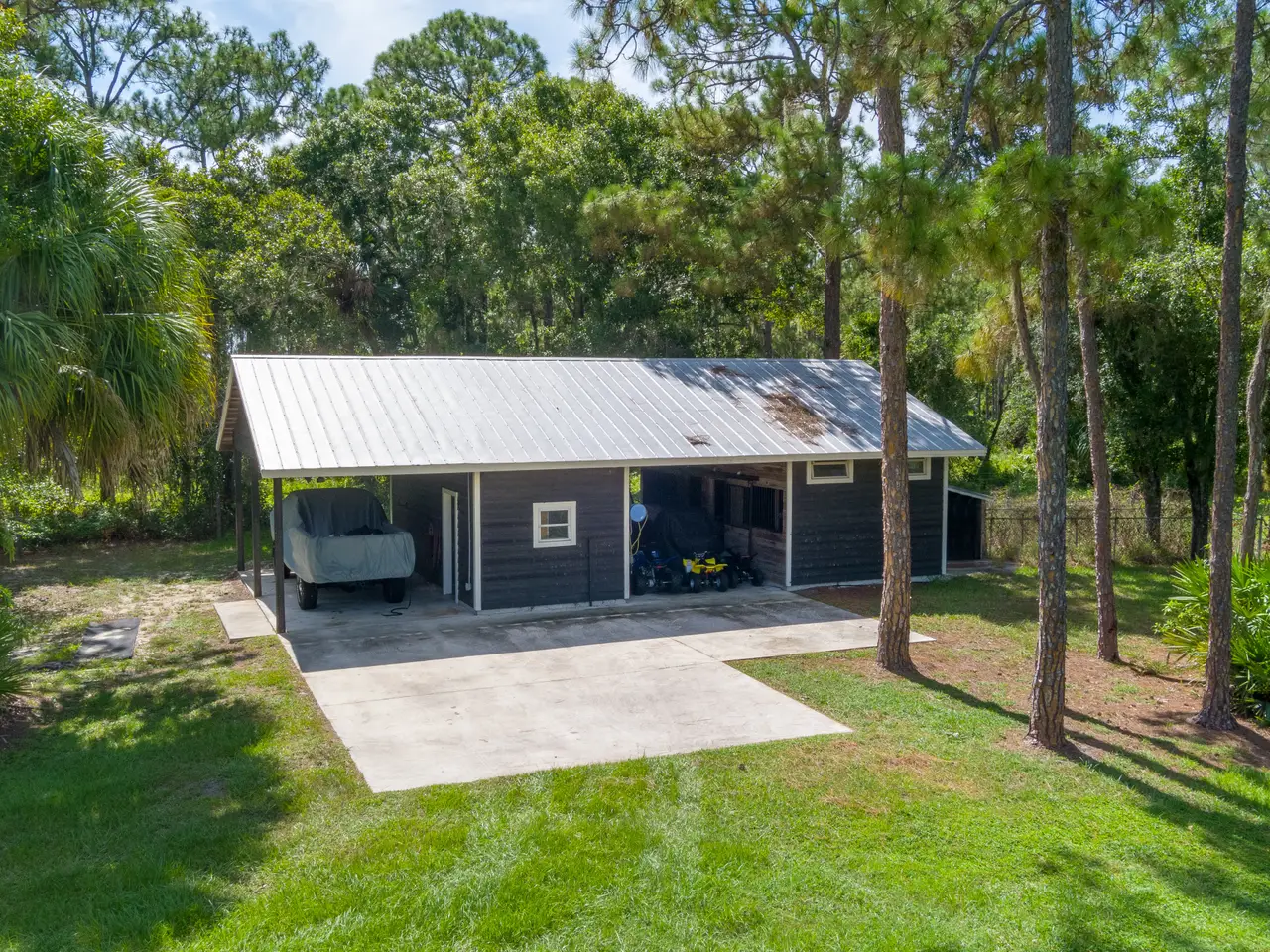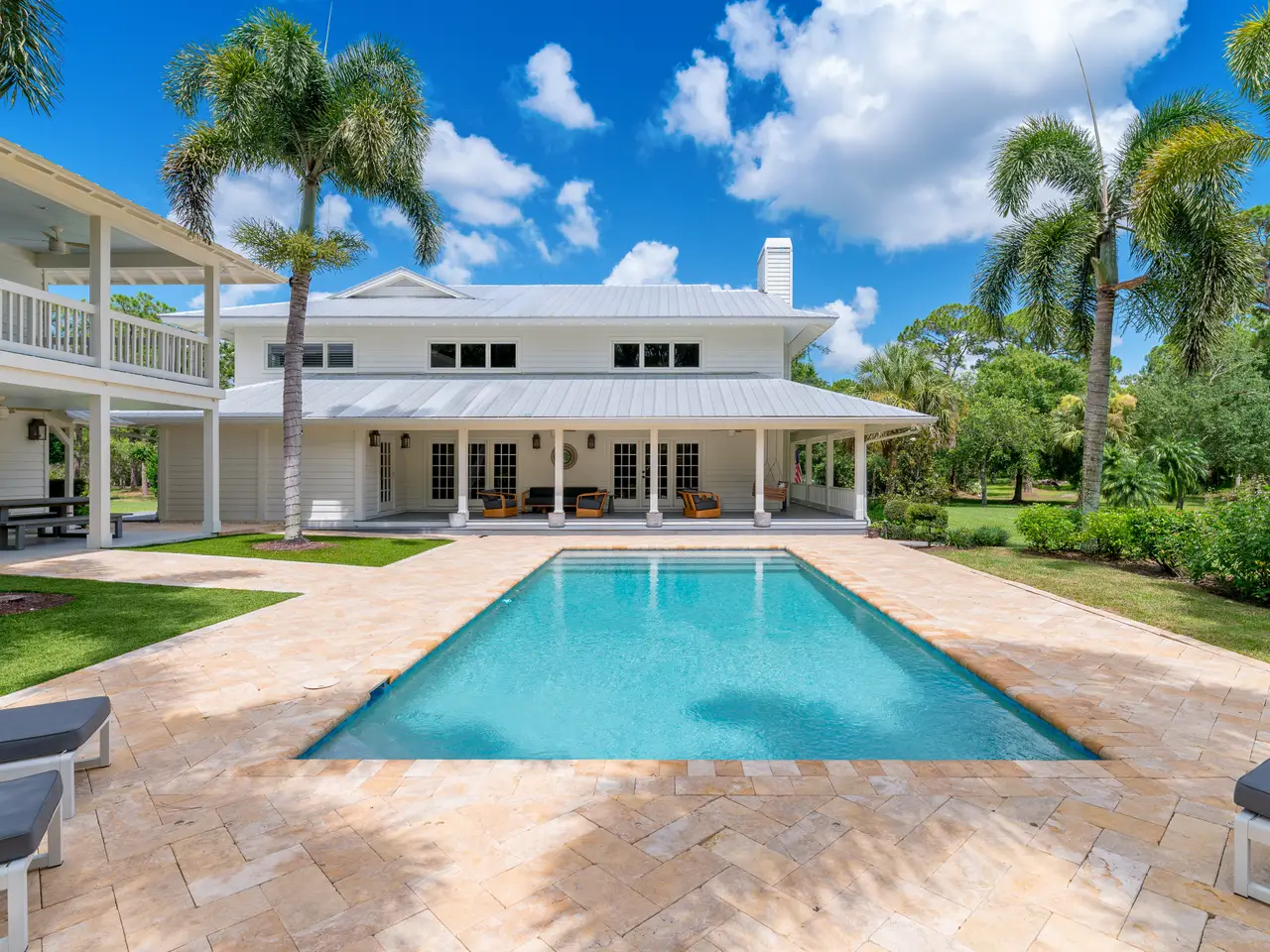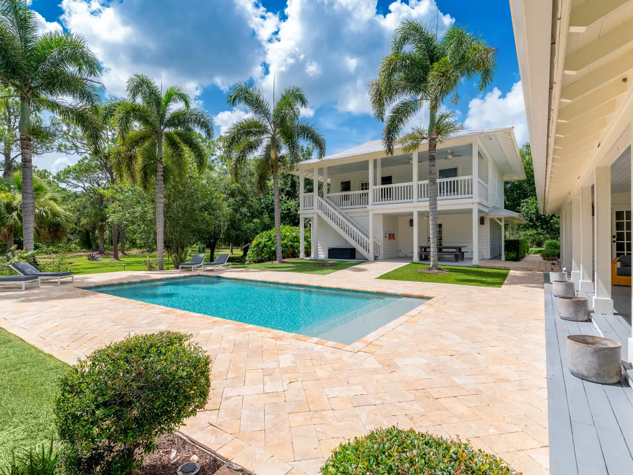 Experienc? the ru?ti? ch?rm ?nd m?dern comforts at thi? e?quisite Palm Beach meets Palm City estate. A mere 25 minutes from Historic Stuart Beach or Jupiter Island, this estate is a haven of amenities. It features a barn with two horse stalls, an air-conditioned storage/workshop, and a fishing pond, complemented by a stunning pool, fire pit, and a detached three-car garage with an accompanying new tree house with a zip line. A secure gate opens to an expansive driveway leading to the main residence and a separate path to the guest quarters. The main residence is a showcase of luxury with three bedrooms, three bathrooms, lofty ceilings, premium appliances, gas cooking, and an inviting wrap-around porch. The guest house offers a private bedroom, bathroom, kitchen, and living space on the upper level, plus an extra bedroom and bathroom on the lower level. Nestled on ten acres, this extraordinary estate promises a private resort-like retreat that stands out as truly unique.