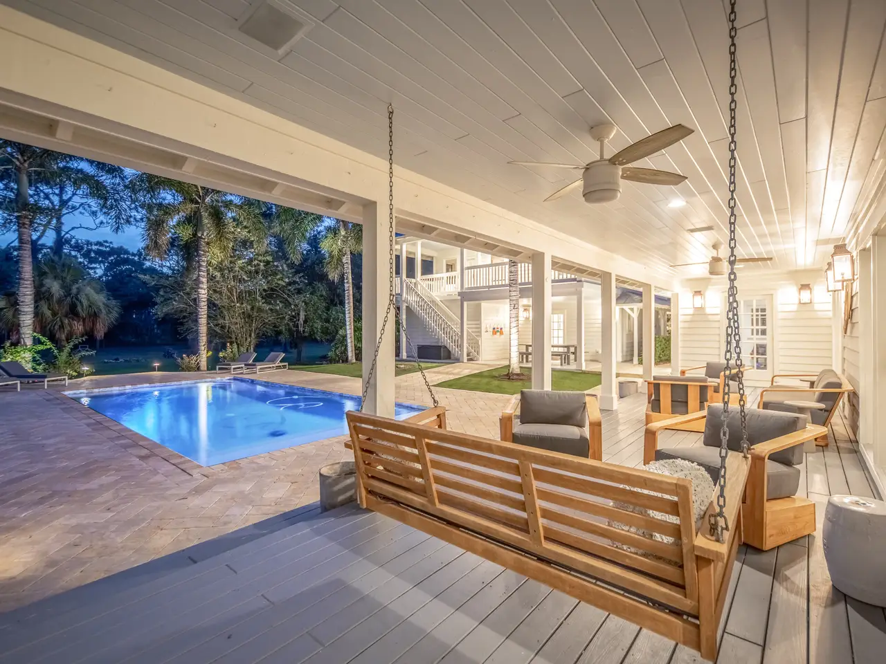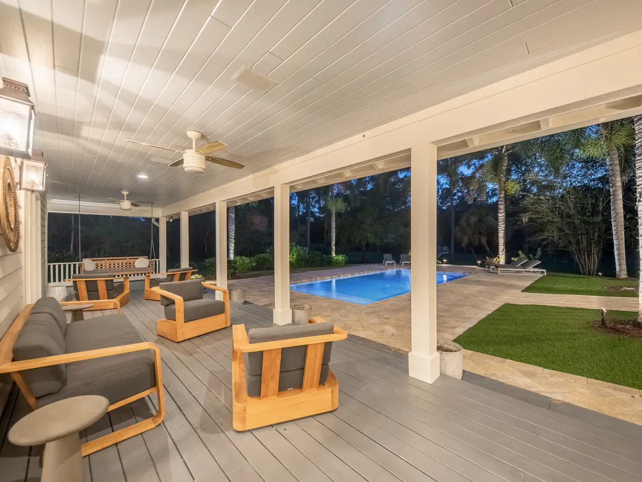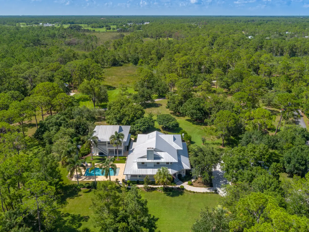 Experienc? the ru?ti? ch?rm ?nd m?dern comforts at thi? e?quisite Palm Beach meets Palm City estate. A mere 25 minutes from Historic Stuart Beach or Jupiter Island, this estate is a haven of amenities. It features a barn with two horse stalls, an air-conditioned storage/workshop, and a fishing pond, complemented by a stunning pool, fire pit, and a detached three-car garage with an accompanying new tree house with a zip line. A secure gate opens to an expansive driveway leading to the main residence and a separate path to the guest quarters. The main residence is a showcase of luxury with three bedrooms, three bathrooms, lofty ceilings, premium appliances, gas cooking, and an inviting wrap-around porch. The guest house offers a private bedroom, bathroom, kitchen, and living space on the upper level, plus an extra bedroom and bathroom on the lower level. Nestled on ten acres, this extraordinary estate promises a private resort-like retreat that stands out as truly unique.