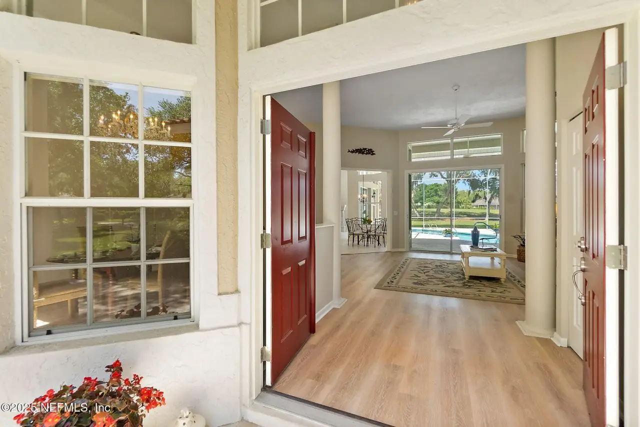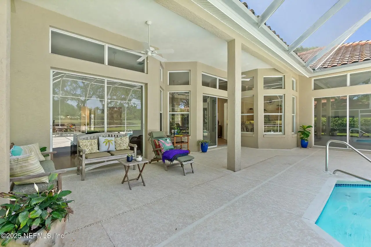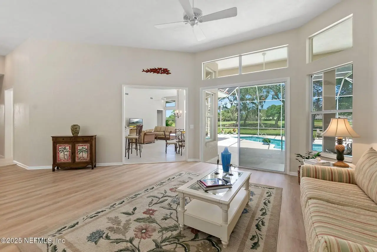 This pool home, on the golf course, in the coveted oceanfront community of Hammock Dunes, is in pristine condition. Walk or ride your bike to the beach or enjoy all the amenities of the private Hammock Dunes Club, which has memberships available, but not required. The home is situated on a beautifully kept, well-maintained yard, with awesome views of the golf course, in a very desirable neighborhood. No expense was spared to make this yard a beautiful oasis and for easy upkeep the sprinkler system was updated and reconfigured. Several updates in the last 4 years include new stainless appliances, LVP flooring, washer and dryer, interior paint, and pool resurfacing that make this home move in ready. The level of maintenance on this home will impress the most fastidious homeowner. A perfect home, with an open floor plan, for entertaining friends and family with 4 bedrooms and 3 baths plus an outdoor shower for easy clean-up after a day at the beach. One bedroom has been used as a library/office and is perfect for work at home. Palm Coast is the best kept secret in Florida. Miles of beautiful beaches, over 125 miles of bike paths, beautiful parks along Intracoastal Waterway, a thriving art & theater community, home of famous artists, golf courses for every day, fishing, boating, wind sailing, surfing, canoeing are just a few of the things to do. Orlando and Disney World are close for a day outing and Jacksonville with all the shopping one could desire & the famous Mayo Clinic is one hour. NASCAR & ST. Augustine are within a thirty-minute drive. The Hammock Dunes Club has 2 golf, courses, tennis, pickle ball, state of the art fitness center, Olympic-size pool and splash pad, croquet and restaurants. Check out Hammock Dunes Club website for all the amenities available.