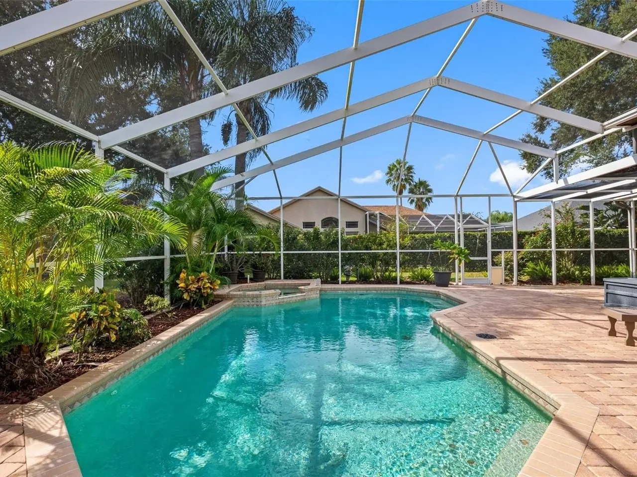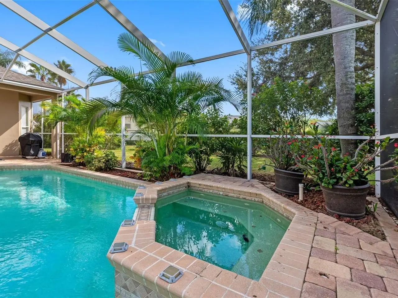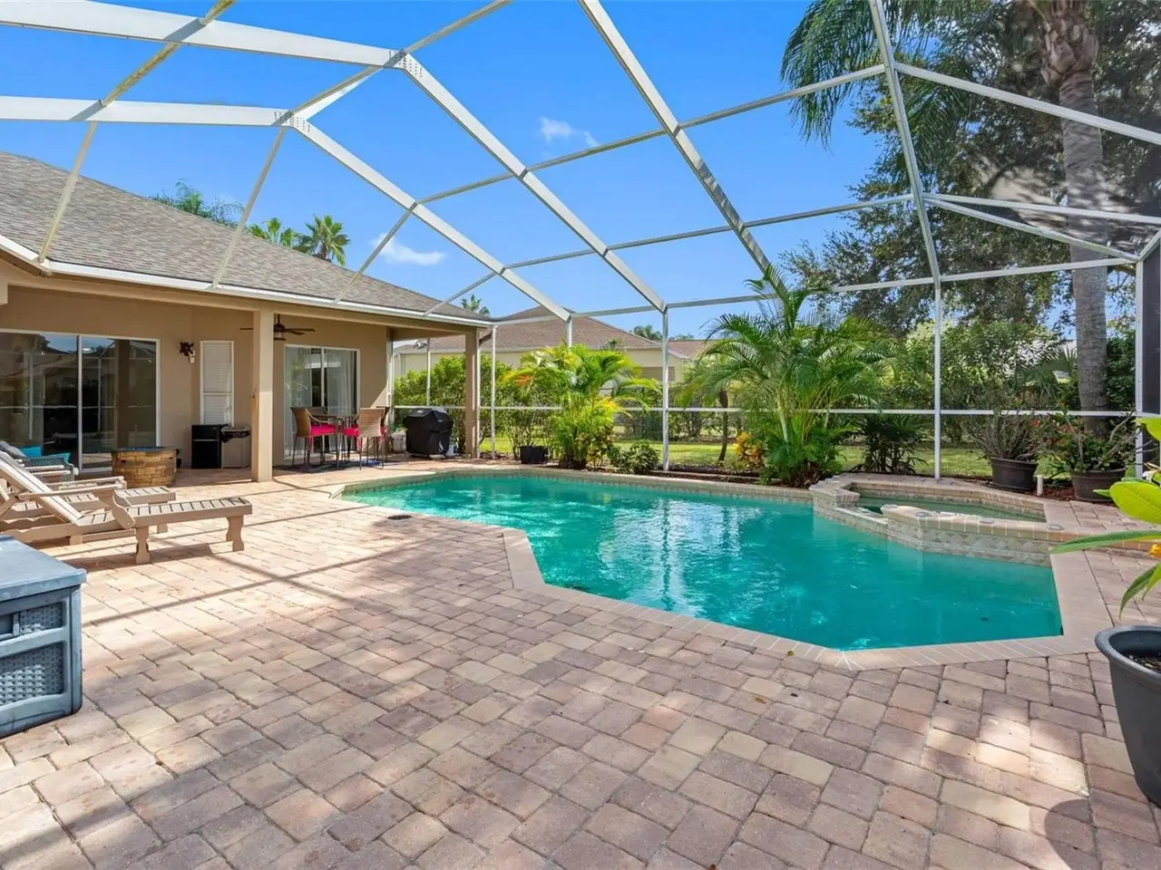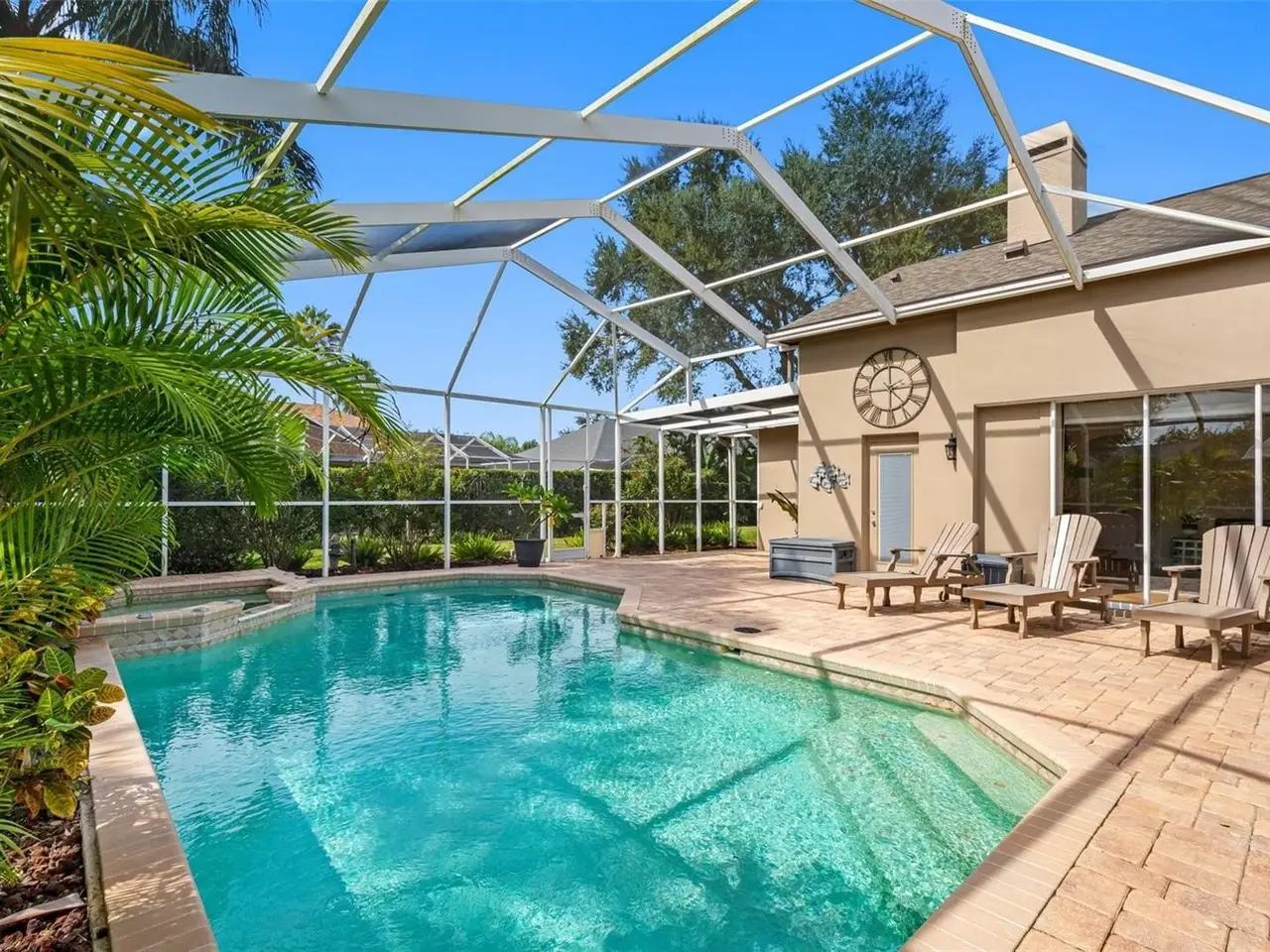 Welcome to Robinwood at Lansbrook. Room for the entire family with 5 bedrooms plus the perfect work at home office overlooking pool and back yard. 3 full baths, a 3-car garage, huge yard and amazing pool and spa. Upon entering you’ll observe double leaded glass doors leading to the living room featuring a tray ceiling, crown molding, and glass sliders that show off the screened pool, spa, pavered pool deck. Passing the formal dining room the home opens up to the family room and dream kitchen equipped with KitchenAid stainless steel appliances, wood cabinets, and granite countertops. The Primary suite features glass slider to the pool, walk-in closets, and a full en-suite bathroom with a walk-in shower, garden tub, and dual vanities. Tasteful updates have been completed in all three bathrooms. The oversized inside laundry room offers plenty of cabinet space and a utility sink. Current updates include an NEW A/C unit (2024), water heater (2018), roof (2020), house paint (2020), pool Salt System (2022), pool pump (2023) , gas heater for the hot tub (2022), pool resurfacing (2012). The community offers residents access to day docks for boating on Lake Tarpon, a lakeside park, play area, and a gazebo with picnic tables, soccer field and basketball courts. Close to shopping, Brooker Creek Preserve, YMCA, golf courses, and John Chesnut State Park. Zoned for top-rated schools, including two elementary schools, East Lake High School, and East Lake Middle School Academy of Engineering