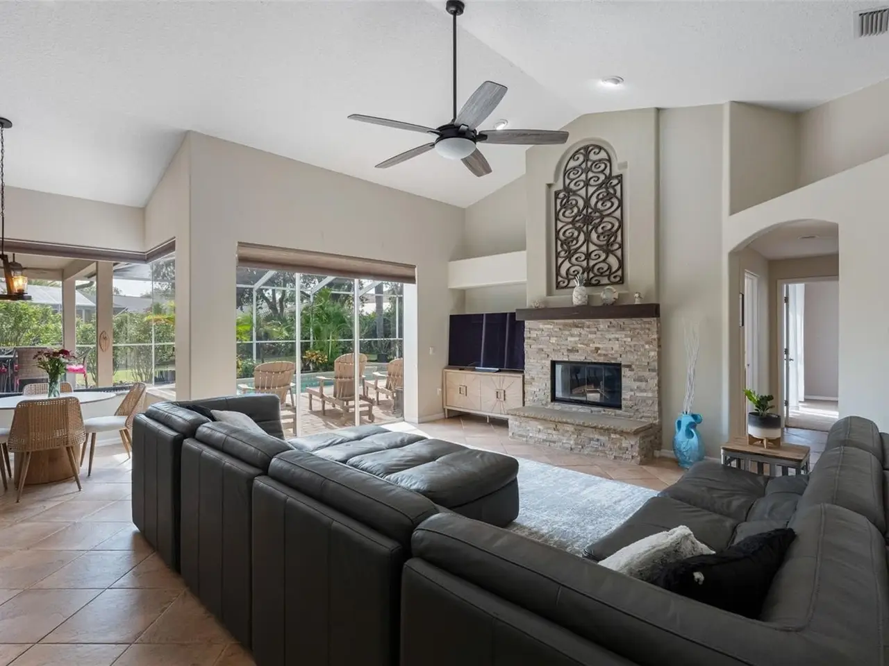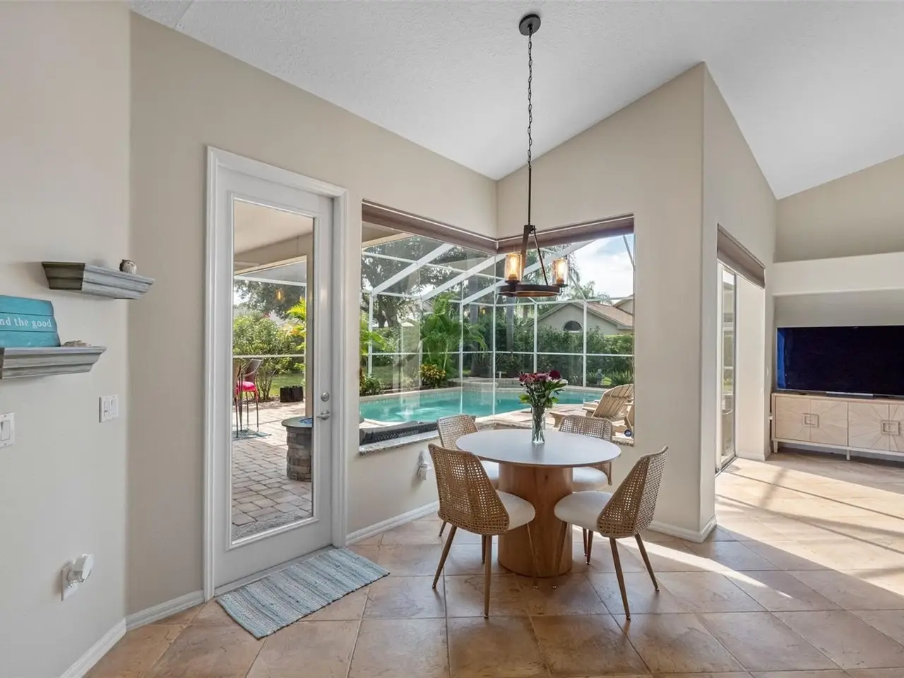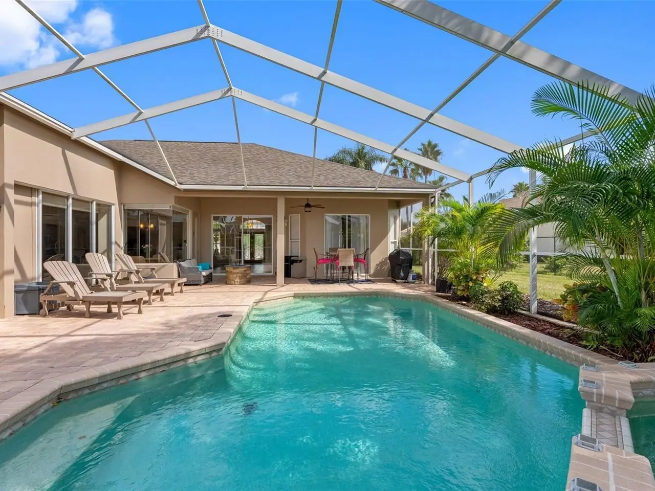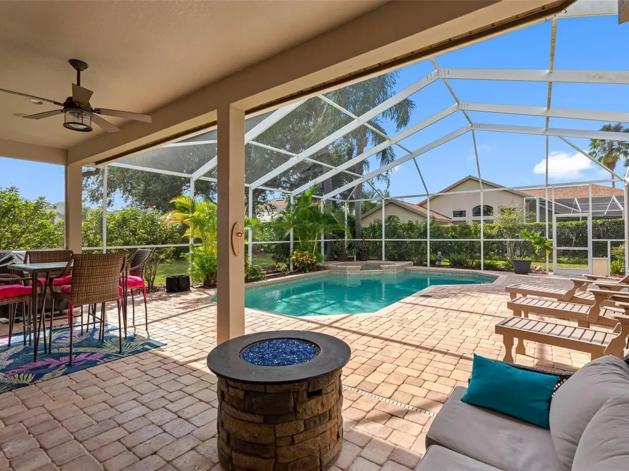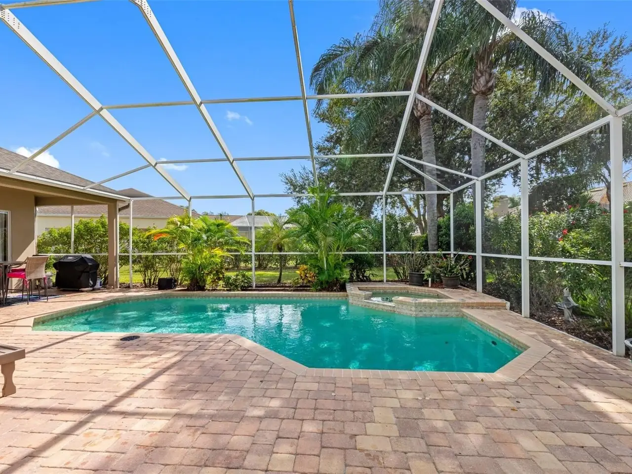 Welcome to Robinwood at Lansbrook. Room for the entire family with 5 bedrooms plus the perfect work at home office overlooking pool and back yard. 3 full baths, a 3-car garage, huge yard and amazing pool and spa. Upon entering you’ll observe double leaded glass doors leading to the living room featuring a tray ceiling, crown molding, and glass sliders that show off the screened pool, spa, pavered pool deck. Passing the formal dining room the home opens up to the family room and dream kitchen equipped with KitchenAid stainless steel appliances, wood cabinets, and granite countertops. The Primary suite features glass slider to the pool, walk-in closets, and a full en-suite bathroom with a walk-in shower, garden tub, and dual vanities. Tasteful updates have been completed in all three bathrooms. The oversized inside laundry room offers plenty of cabinet space and a utility sink. Current updates include an NEW A/C unit (2024), water heater (2018), roof (2020), house paint (2020), pool Salt System (2022), pool pump (2023) , gas heater for the hot tub (2022), pool resurfacing (2012). The community offers residents access to day docks for boating on Lake Tarpon, a lakeside park, play area, and a gazebo with picnic tables, soccer field and basketball courts. Close to shopping, Brooker Creek Preserve, YMCA, golf courses, and John Chesnut State Park. Zoned for top-rated schools, including two elementary schools, East Lake High School, and East Lake Middle School Academy of Engineering