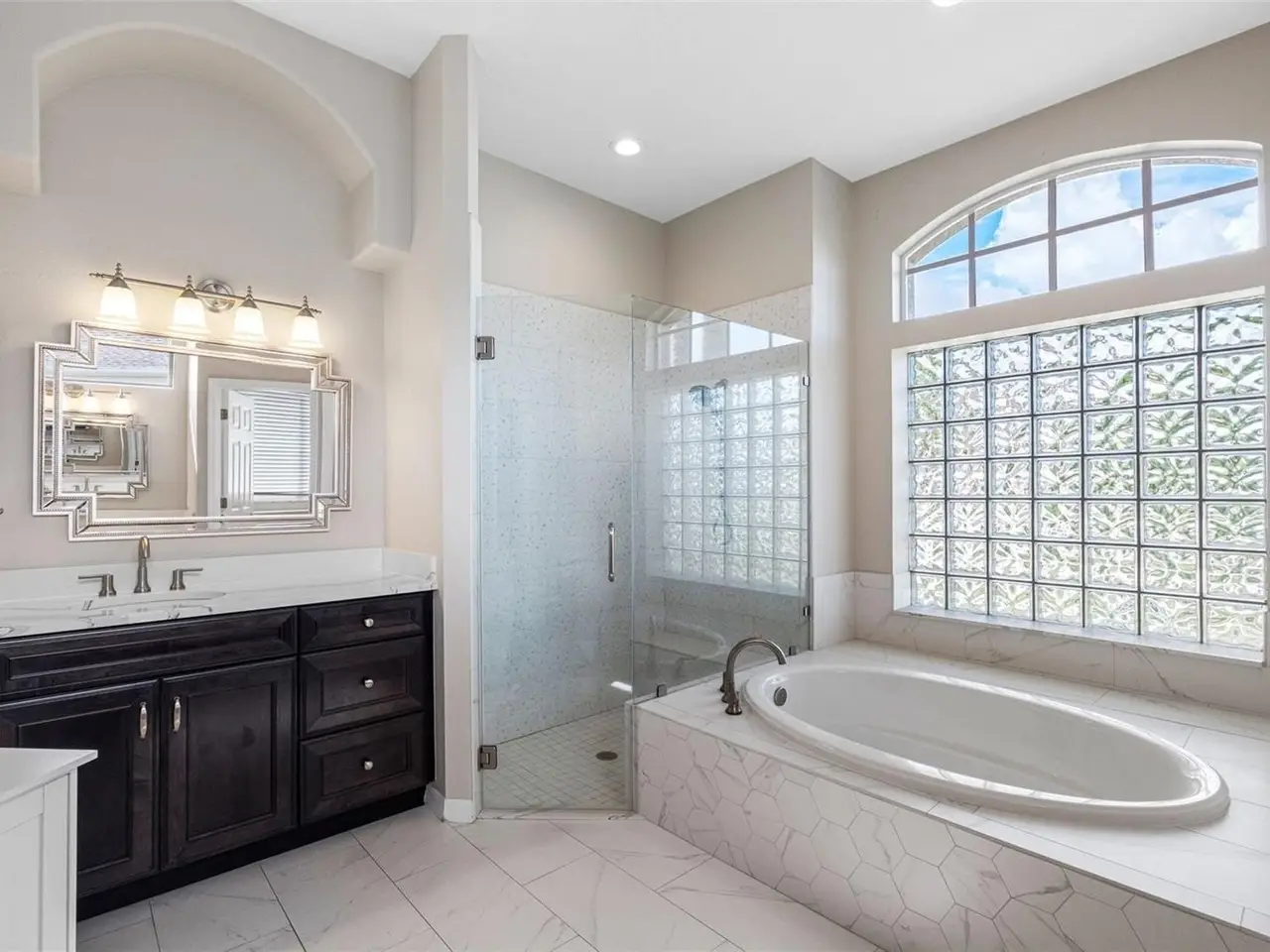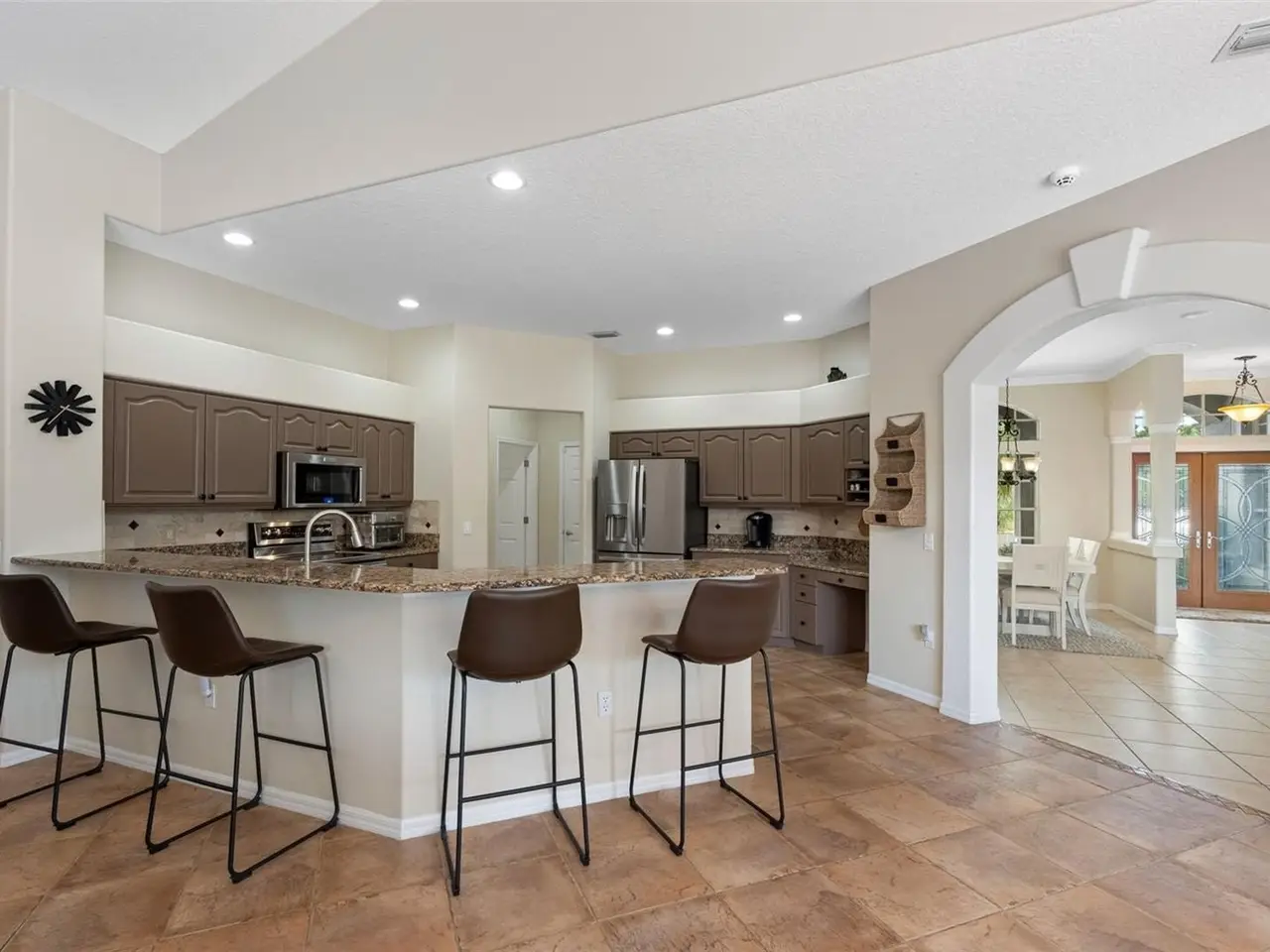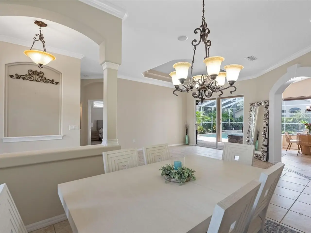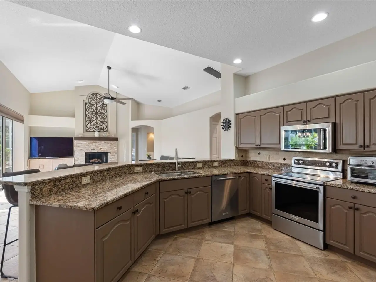 Welcome to Robinwood at Lansbrook. Room for the entire family with 5 bedrooms plus the perfect work at home office overlooking pool and back yard. 3 full baths, a 3-car garage, huge yard and amazing pool and spa. Upon entering you’ll observe double leaded glass doors leading to the living room featuring a tray ceiling, crown molding, and glass sliders that show off the screened pool, spa, pavered pool deck. Passing the formal dining room the home opens up to the family room and dream kitchen equipped with KitchenAid stainless steel appliances, wood cabinets, and granite countertops. The Primary suite features glass slider to the pool, walk-in closets, and a full en-suite bathroom with a walk-in shower, garden tub, and dual vanities. Tasteful updates have been completed in all three bathrooms. The oversized inside laundry room offers plenty of cabinet space and a utility sink. Current updates include an NEW A/C unit (2024), water heater (2018), roof (2020), house paint (2020), pool Salt System (2022), pool pump (2023) , gas heater for the hot tub (2022), pool resurfacing (2012). The community offers residents access to day docks for boating on Lake Tarpon, a lakeside park, play area, and a gazebo with picnic tables, soccer field and basketball courts. Close to shopping, Brooker Creek Preserve, YMCA, golf courses, and John Chesnut State Park. Zoned for top-rated schools, including two elementary schools, East Lake High School, and East Lake Middle School Academy of Engineering