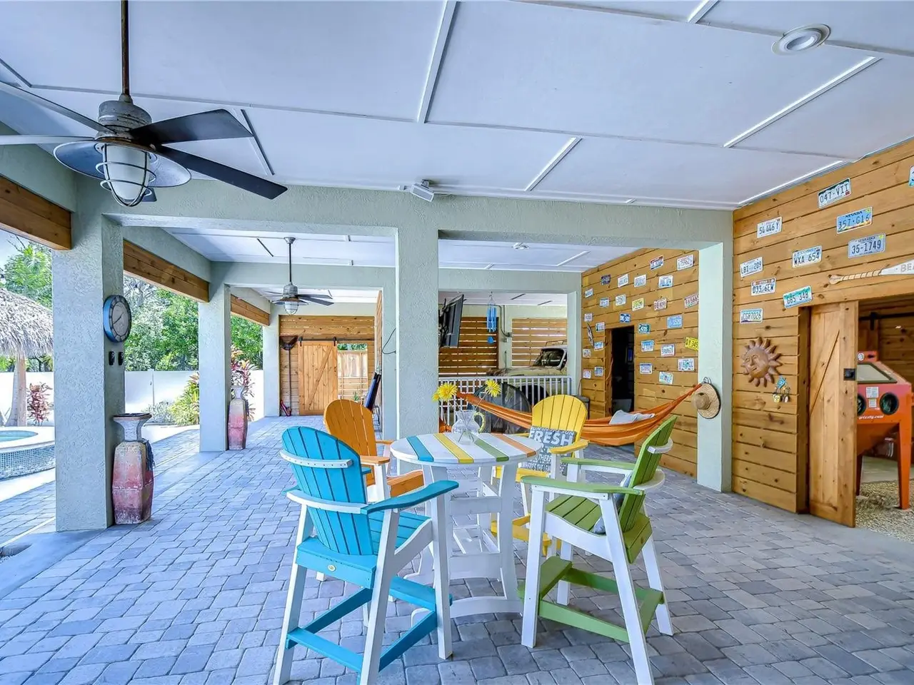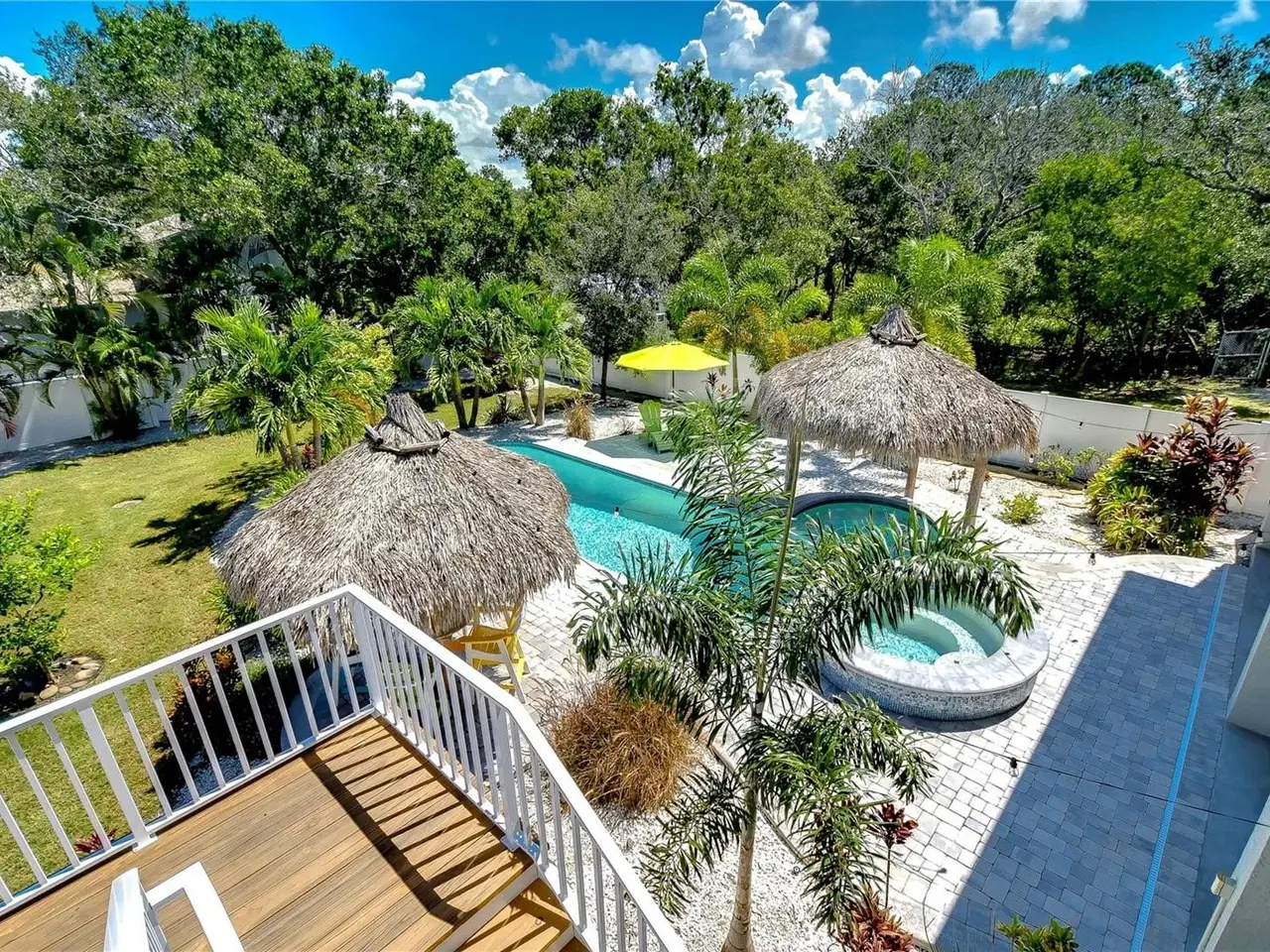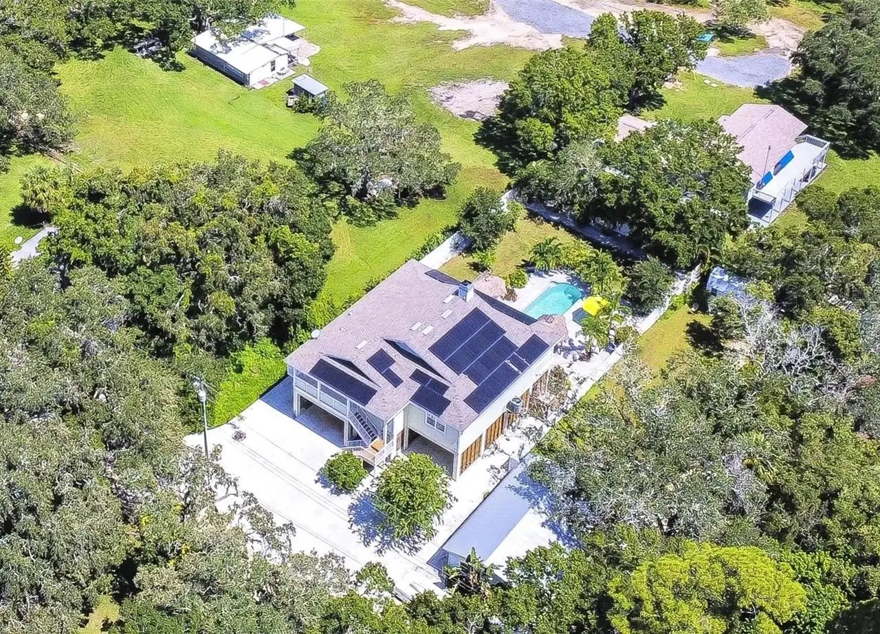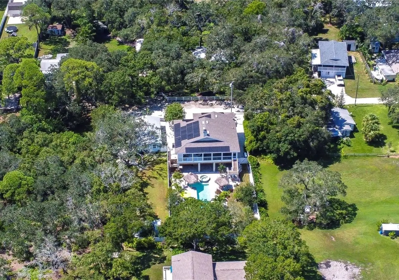 Experience upscale Coastal living in this elevated home...where meticulous construction meets comfortable luxury. Designed to embrace the Florida lifestyle inside and out, this wonderful property offers so much to enjoy. From a Breezy, light and bright interior to a tropical oasis backyard, it was Custom designed and built in 2016 with impeccable attention to detail and fortified for strength. This private stilt home offers both casually luxurious living and peace of mind. It proudly sits 17 feet above sea level on a private .32 acre lot and was constructed to rigorous FEMA standards. Crafted for resilience and eco-conscious living, the home features Hurricane-rated impact windows and doors, 55 solar panels that keep electric bills to an astonishing $30 per month, 140-gallon propane tank powering on-demand hot water, a grill, and generator connections, and all of the under home lumber is desirable "saltwater splash" dock grade, and pilings, headers, footers are concrete. Inside you will discover a space that wows with high quality and uniquely designed finishes.. custom shiplap walls, barn door accents, soaring vaulted ceilings with dimmable LED lighting and fans, and plantation shutters throughout. The floorplan is fun and functional and just right for everyday living or entertaining. Enjoy generous bedrooms, laundry utility room, and walk in pantry. Sliders from Living Room and primary bedroom open to an amazing screened in patio overlooking the backyard. 1000lb exterior elevator lift, 240 sqft of under home storage and under house/carport parking for up to 8 vehicles! And the Backyard...will truly take your breath away! It is private oasis that would make Jimmy Buffett proud! Showcasing a 2020 heated and cooled sparkling saltwater pool complete with spillover spa a shaded grotto seating, two locally designed and hand crafted tiki huts, and over 1,500 square feet of pavered patio space, and just under 2000 square feet of covered patio space for shady lounging and outdoor living, a whole house mosquito misting system and a retro fabulous custom outdoor surfboard and cypress lined shower. Your guests will never want to leave! Ozona is a unique community with coastal charm, 5 marinas, restaurants that are loved, and a waterfront with the most beautiful sunsets! Ride your bike or drive your golf cart all around town! This area is in unincorporated Pinellas -- possible short term rental and available fully furnished! Come make 262 Banana Road your Coastal Paradise! View matterport and virtual tour at https://my.matterport.com/show/?m=t4Nu3C1amJL&mls=1