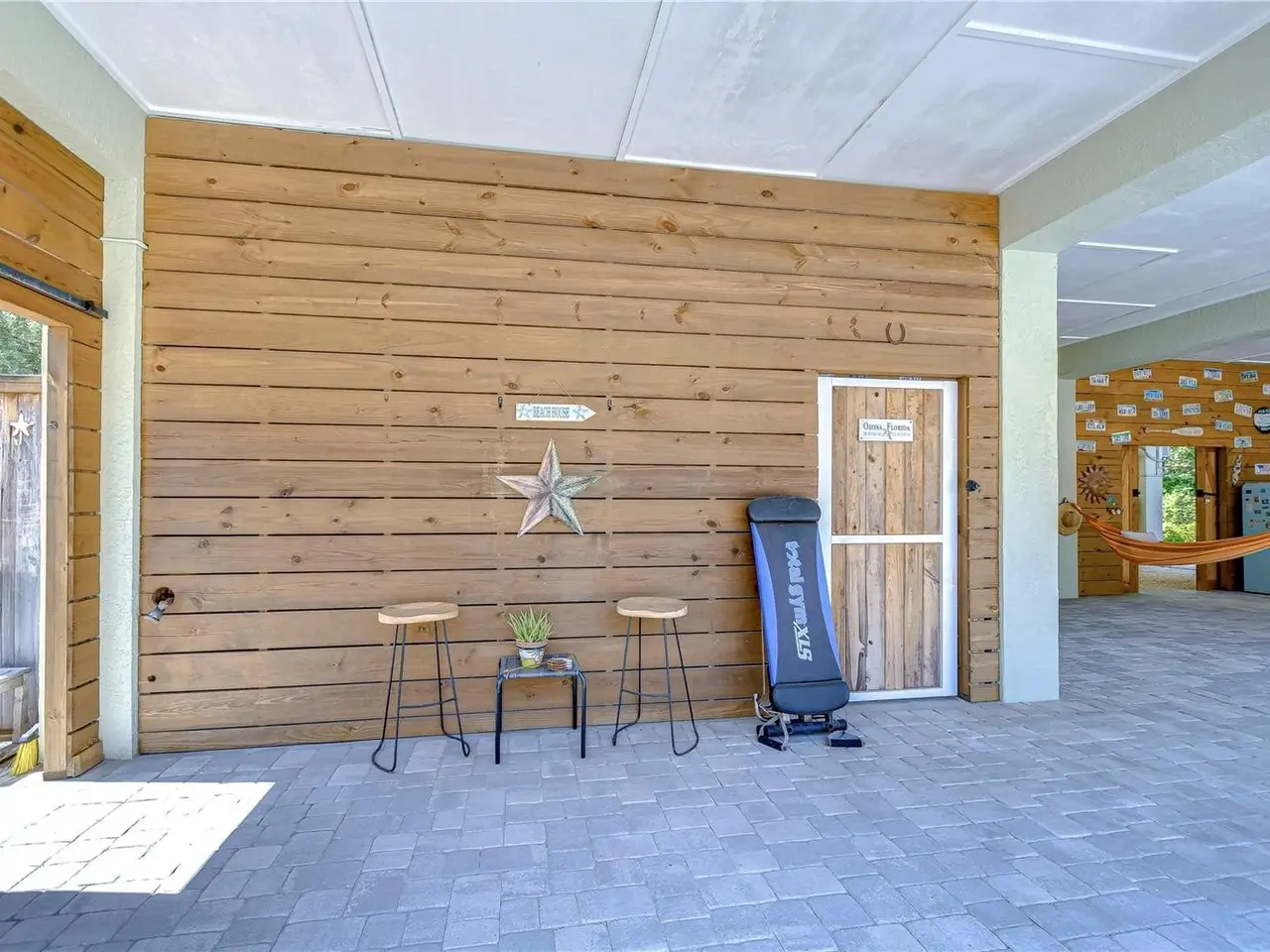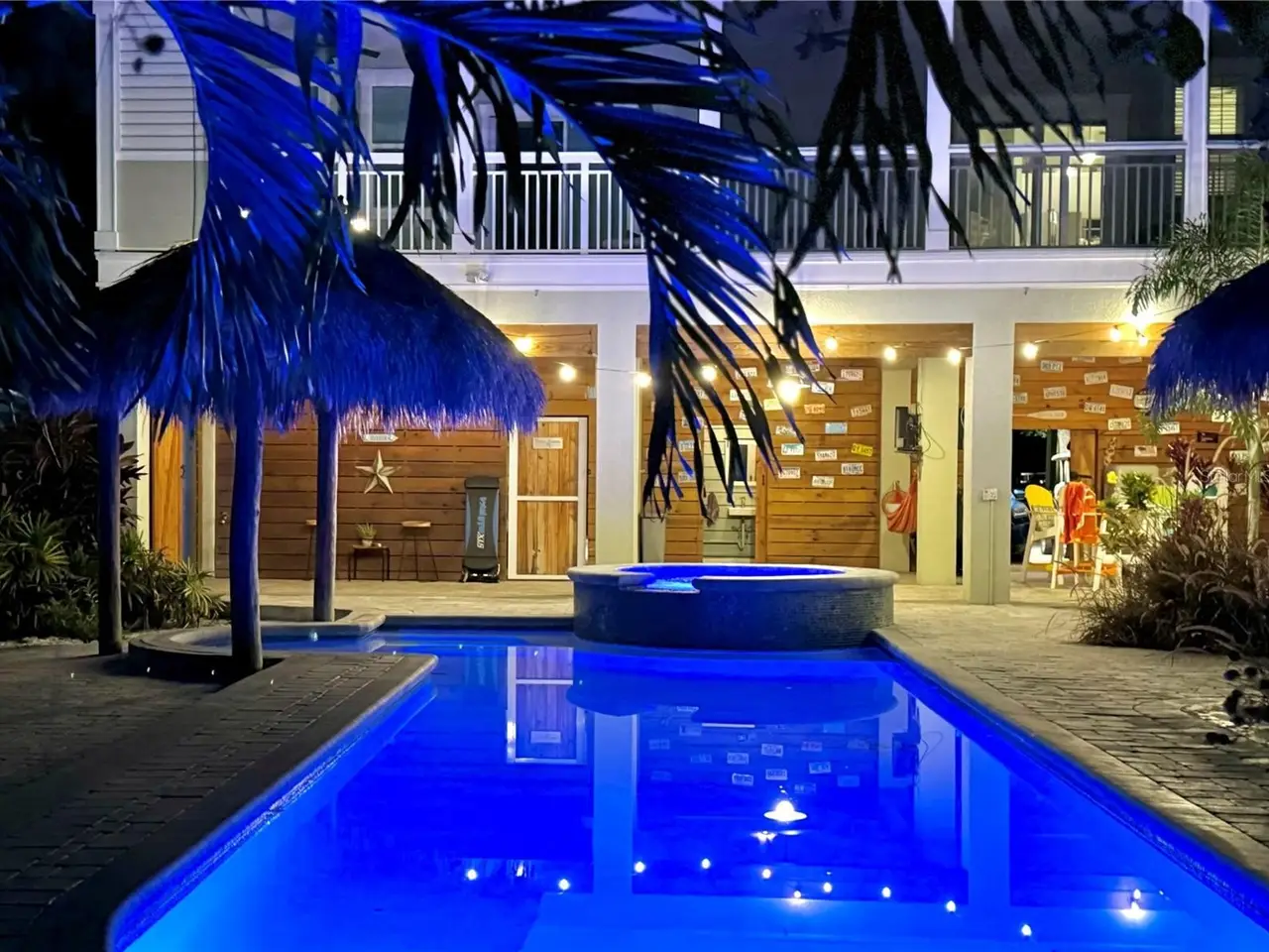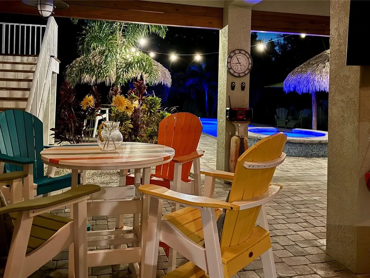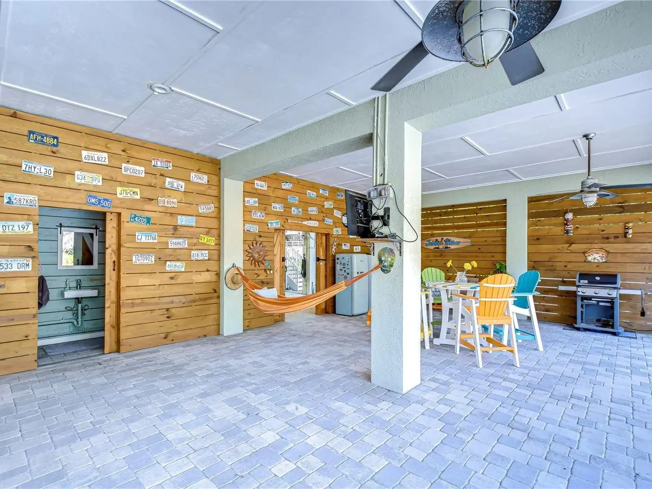 Experience upscale Coastal living in this elevated home...where meticulous construction meets comfortable luxury. Designed to embrace the Florida lifestyle inside and out, this wonderful property offers so much to enjoy. From a Breezy, light and bright interior to a tropical oasis backyard, it was Custom designed and built in 2016 with impeccable attention to detail and fortified for strength. This private stilt home offers both casually luxurious living and peace of mind. It proudly sits 17 feet above sea level on a private .32 acre lot and was constructed to rigorous FEMA standards. Crafted for resilience and eco-conscious living, the home features Hurricane-rated impact windows and doors, 55 solar panels that keep electric bills to an astonishing $30 per month, 140-gallon propane tank powering on-demand hot water, a grill, and generator connections, and all of the under home lumber is desirable "saltwater splash" dock grade, and pilings, headers, footers are concrete. Inside you will discover a space that wows with high quality and uniquely designed finishes.. custom shiplap walls, barn door accents, soaring vaulted ceilings with dimmable LED lighting and fans, and plantation shutters throughout. The floorplan is fun and functional and just right for everyday living or entertaining. Enjoy generous bedrooms, laundry utility room, and walk in pantry. Sliders from Living Room and primary bedroom open to an amazing screened in patio overlooking the backyard. 1000lb exterior elevator lift, 240 sqft of under home storage and under house/carport parking for up to 8 vehicles! And the Backyard...will truly take your breath away! It is private oasis that would make Jimmy Buffett proud! Showcasing a 2020 heated and cooled sparkling saltwater pool complete with spillover spa a shaded grotto seating, two locally designed and hand crafted tiki huts, and over 1,500 square feet of pavered patio space, and just under 2000 square feet of covered patio space for shady lounging and outdoor living, a whole house mosquito misting system and a retro fabulous custom outdoor surfboard and cypress lined shower. Your guests will never want to leave! Ozona is a unique community with coastal charm, 5 marinas, restaurants that are loved, and a waterfront with the most beautiful sunsets! Ride your bike or drive your golf cart all around town! This area is in unincorporated Pinellas -- possible short term rental and available fully furnished! Come make 262 Banana Road your Coastal Paradise! View matterport and virtual tour at https://my.matterport.com/show/?m=t4Nu3C1amJL&mls=1