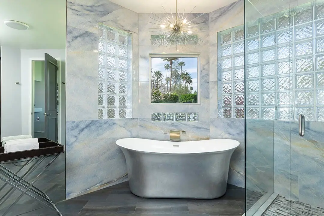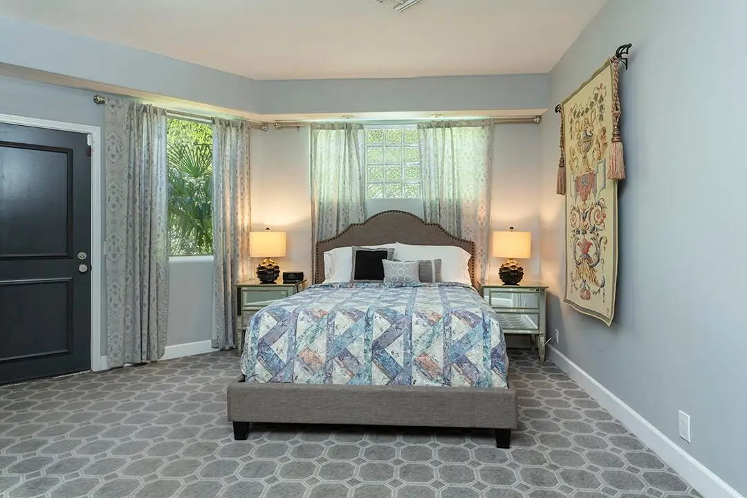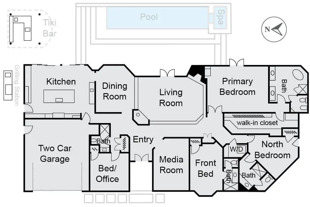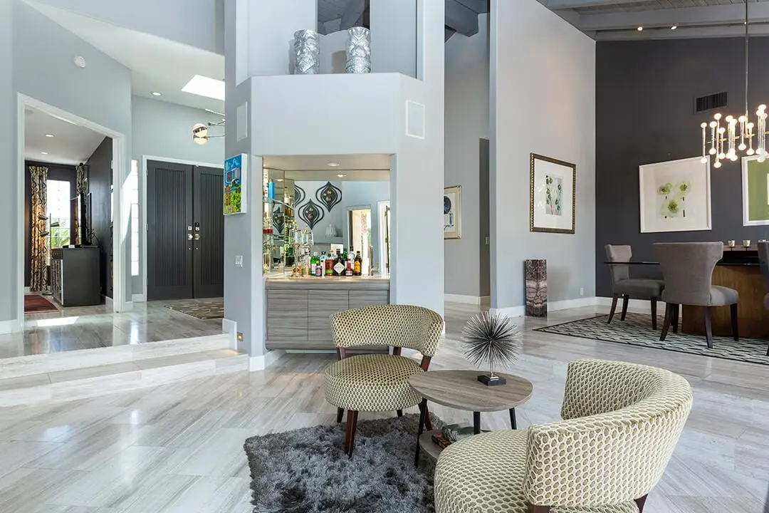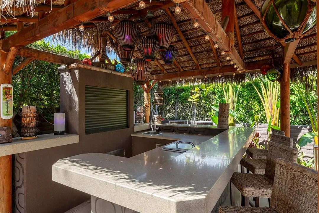 This beautifully remodeled property offers a luxury living experience, blending modern elegance with Polynesian-inspired flair. This immaculate, four-bedroom home is on fee land in the sought-after Indian Canyons neighborhood in South Palm Springs. Its open living room and dining area boasts vaulted and beamed ceilings. A wall of windows and doors to the backyard highlights the pool and panoramic mountain views. The main entertaining area also has a wet bar and an adjoining media room.The designer kitchen is a masterpiece centered around an oversized prep island with dine-in seating. This gourmet space showcases custom cabinetry, premium high-end appliances, and abundant room for entertaining family and friends. Fleetwood sliding doors lead directly to an outdoor paradise featuring a luxurious tiki bar, Polynesian-inspired pool with spa, and outdoor kitchen.The primary suite is a retreat that features a cozy sitting area with a gas fireplace, direct poolside access, a generous en ensuite bathroom, and a Sex in the City worthy walk-in closet. Additionally, the home provides three more comfortable bedrooms two of which include their own ensuite bathrooms. The home has leased solar and the convenience of an attached two-car garage.Bedrooms | Total 4 | 3 bedroom suites Bathrooms | 4 Total | 3 ensuite and a guest bathInterior size | 3,338 sqftLand | Lot size 12,197 sqft Fee Land - you own the landBuilt | 1990Parking | Attached 2-car garageLeased Solar | $326 per month | Installed 2018 | 52 panels; 18.72 direct current; 17.97 alternating currentAdditional Items and Amenities: Pool equipment installed in 2018 Two HVAC systems installed in 2020 Two on demand water heaters installed 2018