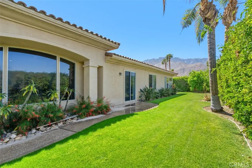 Stunning Single-Story Pool Home with Panoramic Mountain Views in the exclusive and private enclave of The Colony at El Mirador. This spacious and beautifully designed single-story residence offers 3 bedrooms plus a den (optional 4th bedroom) and a 3-car attached garage, blending luxury and comfort in every detail. As you enter the property, you'll be captivated by the sparkling pool with a cascading waterfall spa, creating a tranquil and inviting retreat. Inside, the open-concept floor plan features stone-like tile flooring throughout most of the home, high-volume ceilings, and recessed lighting that enhance the light and airy ambiance. The gourmet kitchen is a chef's delight, boasting a large island with a 5-burner gas cooktop, abundant cabinetry, a breakfast bar, and a charming kitchen nook that opens to the side yard--perfect for morning coffee or al fresco dining. The family room offers a cozy fireplace and ceiling fan, while the formal dining room opens to a beautifully landscaped backyard with a covered patio and BBQ area, ideal for entertaining. The living room is truly spectacular, highlighted by a second fireplace and expansive windows. The den (or 4th bedroom) features direct access to the pool, making it a perfect office, guest suite, or relaxation space. Two secondary bedrooms each feature en-suite bathrooms, plus there's a stylish powder room for guests. The primary suite is a true retreat, offering a ceiling fan, huge walk-in closet with built-ins, and a luxurious bathroom complete with a soaking tub, walk-in shower, and double vanity. Wonderful home for entertaining or just relaxing.