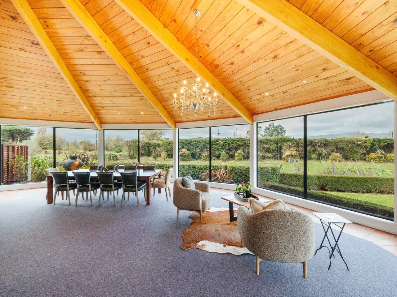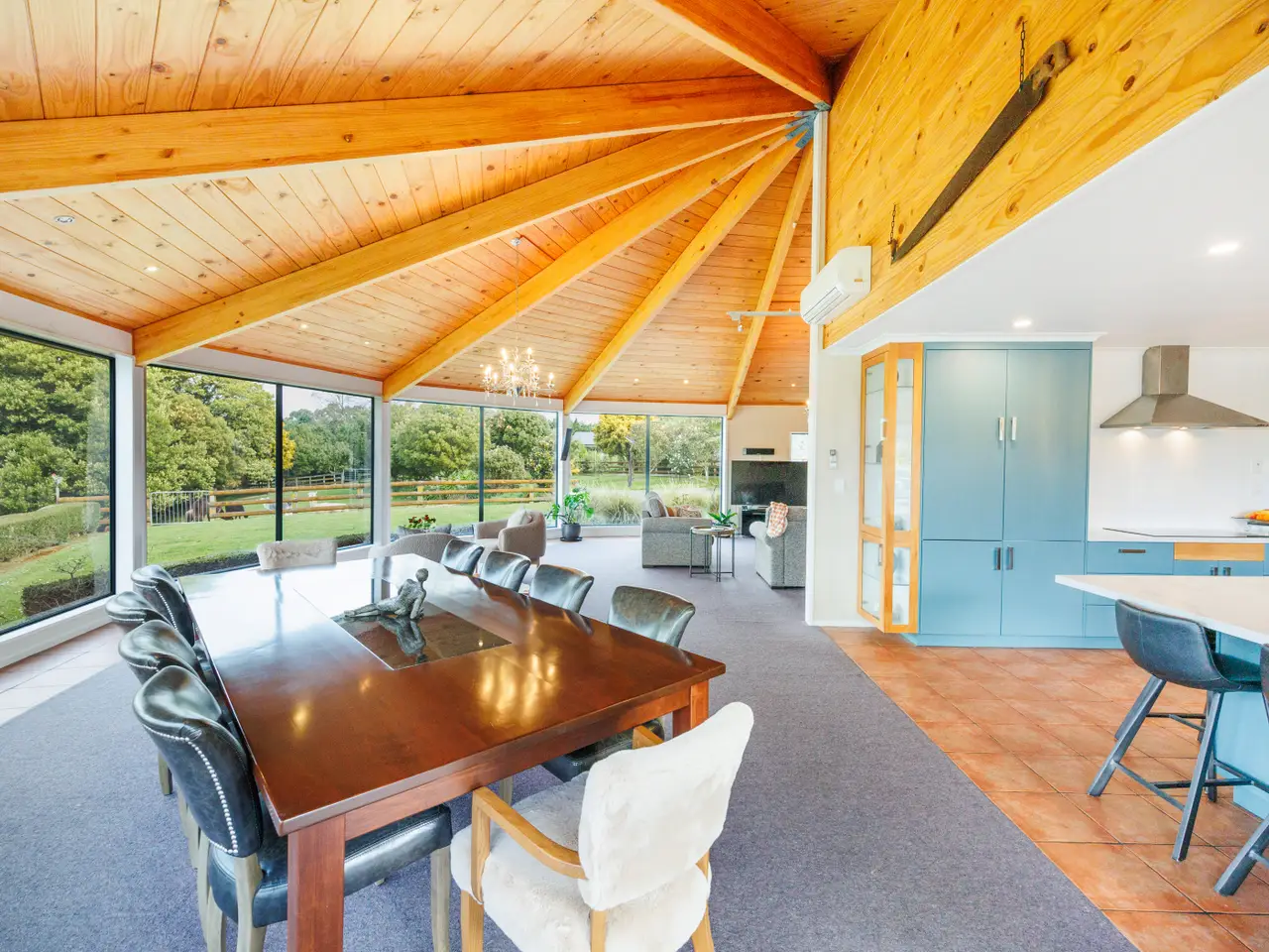 Welcome to Te Rakau Nui, 7 Harrisons Line, Palmerston North. Set on one hectare, this beautifully crafted 543m2 (more or less) home offers generous space for the whole family. With four bedrooms and two bathrooms, it's designed for both comfort and function. The master suite occupies its own private level, complete with a walk-in wardrobe, ensuite, office, and sweeping views of the Ruahine Ranges. The heart of the home features warm and inviting living spaces. A spacious kitchen with quality appliances flows into a large formal dining and living area, where timber vaulted ceilings enhance the sense of space. A separate, cosy lounge creates the perfect spot for intimate movie nights, and a quiet reading den adds another layer of relaxation. The living areas and downstairs bedrooms open out to an extensive outdoor entertaining zone, featuring a huge, covered deck, outdoor fireplace, and built-in BBQ area. Entertaining is effortless year-round. The property also includes a double garage with a serious workshop space, featuring three-phase power and two automatic roller doors ideal for the home handyman or hobbyist. Ample grazing paddocks with stock water orchard. Implement sheds to make living on a lifestyle property a breeze. Chattels Auto Garage Door Opener x2 and Remote x1, Bath, Blinds, Ceiling Fans x2, Clothesline, Dishwasher, Drapes, Hob/cooktop, Induction Hob, Wall Oven - Electric x2, Fixed Floor Coverings, Garden Shed, Glasshouse, Heated Towel Rail x2, Heat Pump x3 and Remote x3, Letterbox, Light Fittings, Mirrors, Range Hood, Security Lighting, Security System , Smoke Detectors (every bedroom), Sound System, TV Aerial, Waste Disposal, Water Tanks (6000 gal x2), Water Feature x2, Water Pump, Lights up Driveway, Dog Kennel, Waste Water Pump, Stock Water Tanks x3 (Shared with Neighbours), Electric Fence Unit, Stock Troughs x5 Gas Powered Deck Fire Place and Cylinder