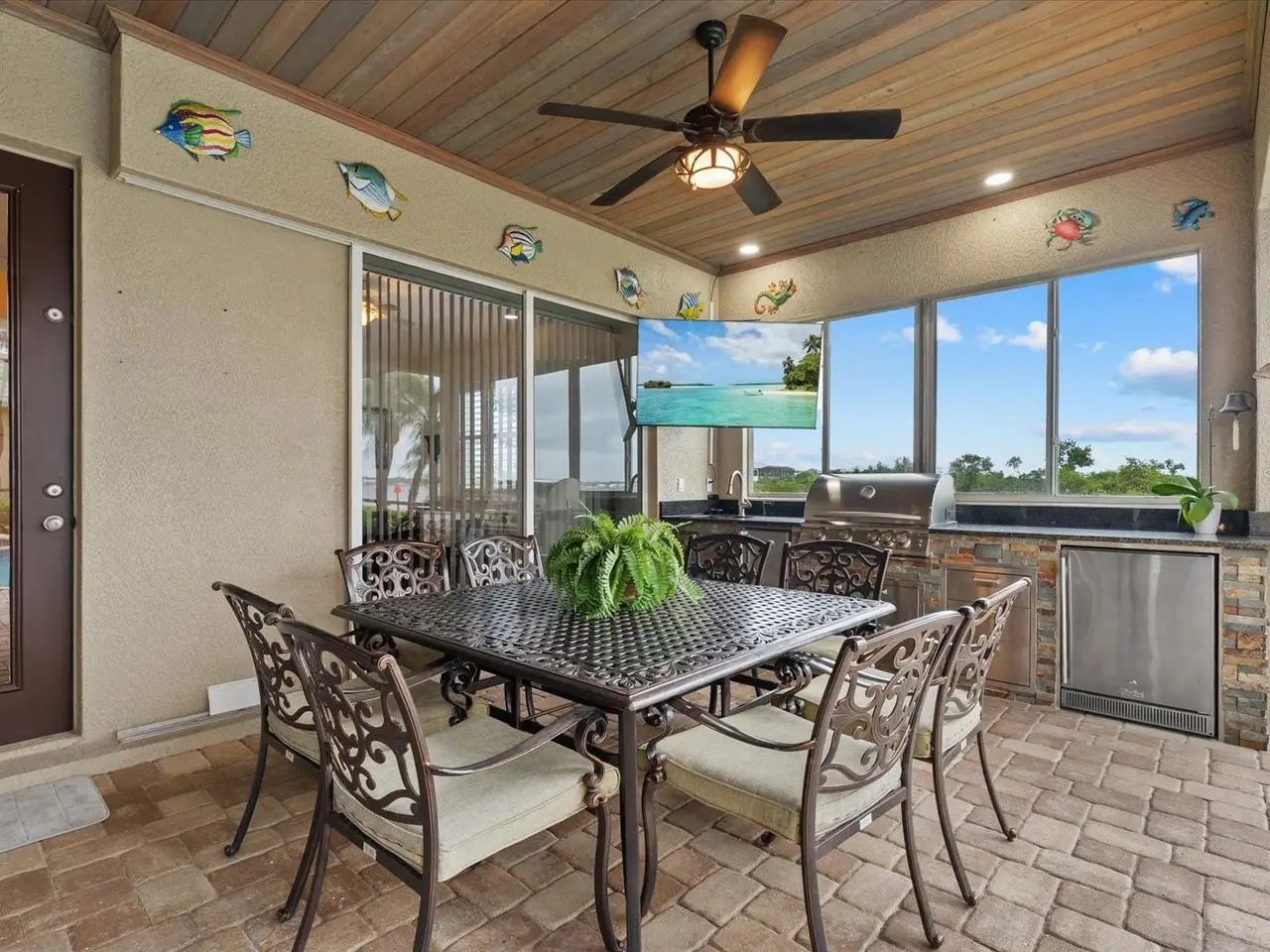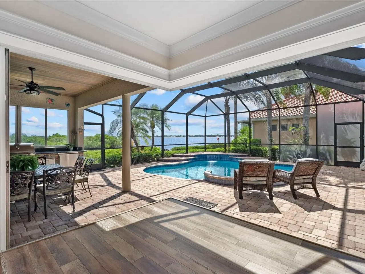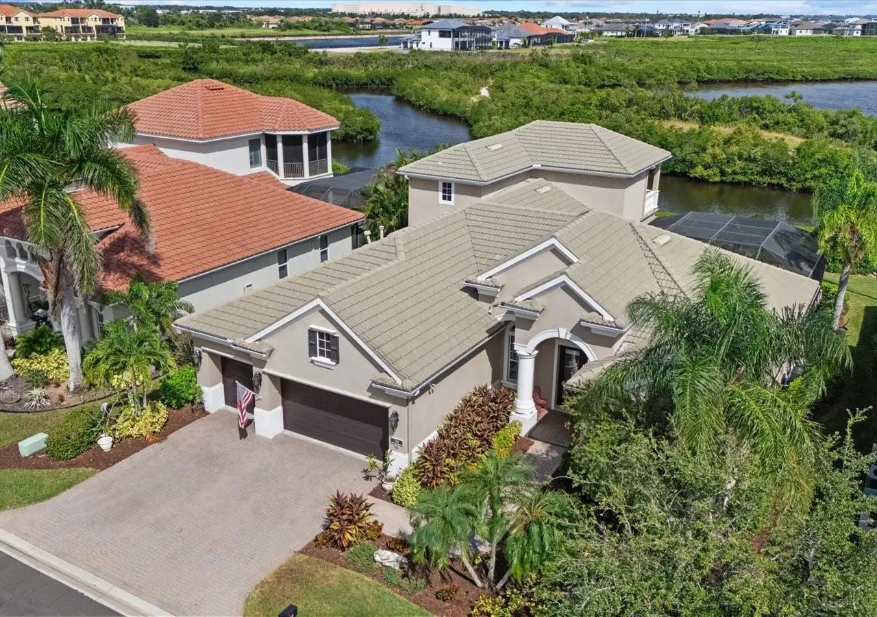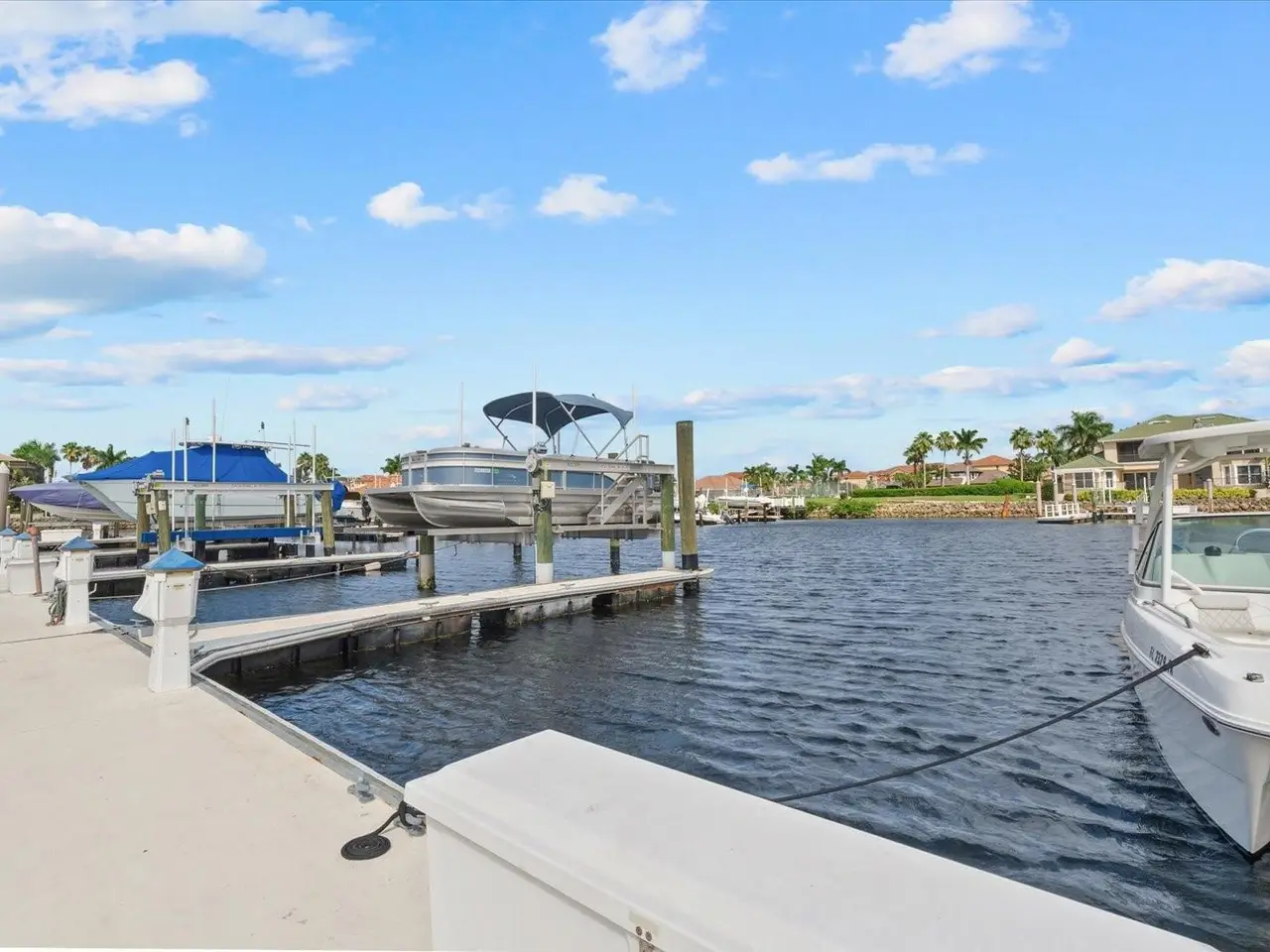 Welcome to Riviera Dunes, one of Southwest Florida’s premier boating communities and home to the region’s safest deep-water harbor. Perfectly positioned along the peaceful Manatee River, this neighborhood offers direct access to the Gulf in just 10 minutes. Included with this residence is a deeded marina slip that accommodates vessels up to 44’, Tucked behind the private gates, the home greets you with lush landscaping and a welcoming entryway. Inside, you’ll find an updated interior with luxury vinyl plank flooring that flows effortlessly through the living and entertaining spaces. The open kitchen is beautifully appointed with stainless steel appliances and connects seamlessly to the family and dining areas, making gatherings a breeze. Designed with flexibility in mind, the home features two full master suites and two additional guest bedrooms. The upstairs master is a true retreat complete with a walkthrough closet, coffee bar with sink, luxurious spa-style bathroom, and a tranquil balcony where you can sip your morning coffee while watching marine life below. Perfect for entertaining, the expansive sliding atrium doors disappear to create a seamless connection between indoors and outdoor spaces. Step outside to your sparkling heated pool and fully equipped summer kitchen—ideal for year-round Florida living. Additional highlights include a three-car garage, whole home water filtration system and a new AC unit. Enjoy access to outstanding community amenities, including a clubhouse, fitness center, tennis, pool, and an active pickleball community. This is more than a home—it’s a lifestyle. Welcome to your private waterfront retreat in Riviera Dunes.