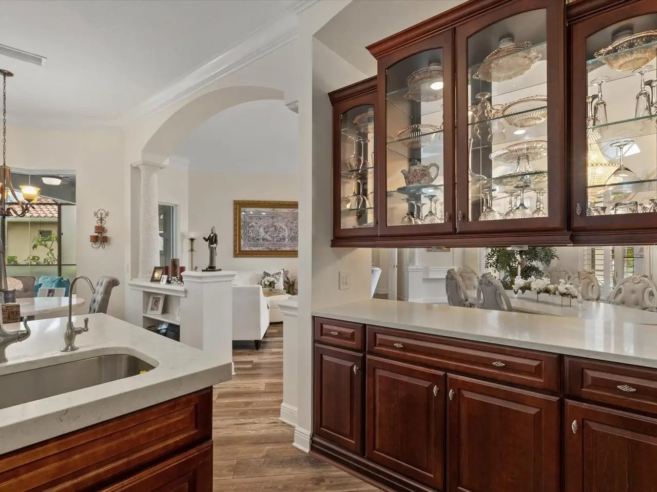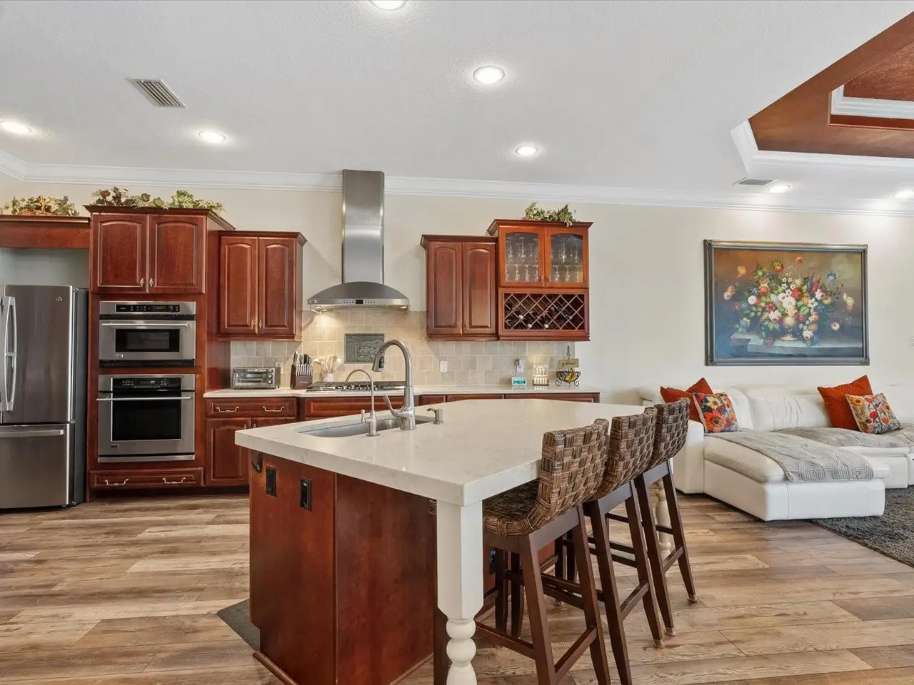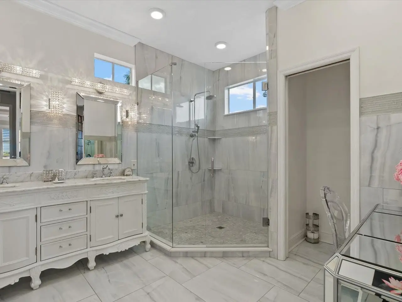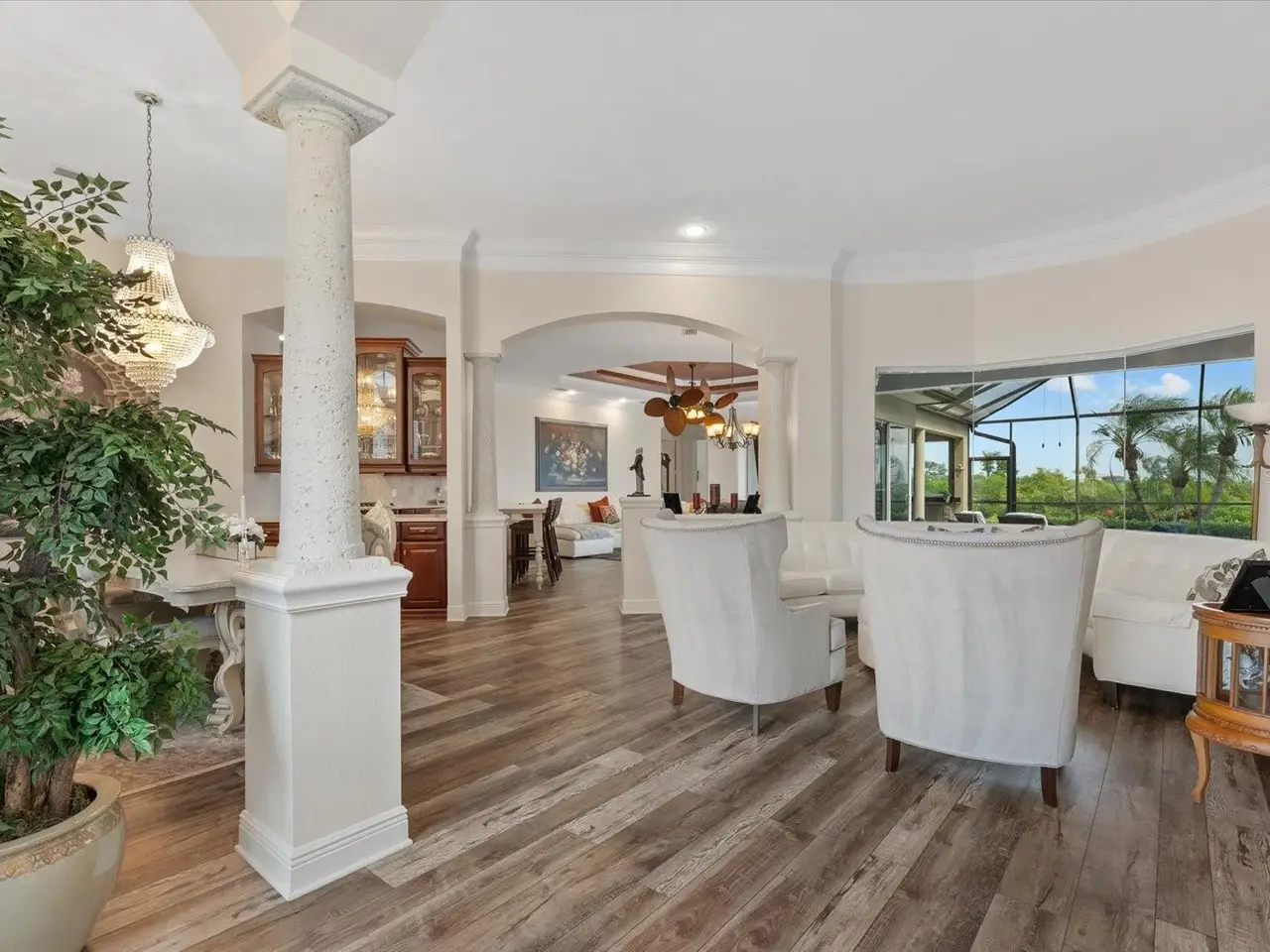 Welcome to Riviera Dunes, one of Southwest Florida’s premier boating communities and home to the region’s safest deep-water harbor. Perfectly positioned along the peaceful Manatee River, this neighborhood offers direct access to the Gulf in just 10 minutes. Included with this residence is a deeded marina slip that accommodates vessels up to 44’, Tucked behind the private gates, the home greets you with lush landscaping and a welcoming entryway. Inside, you’ll find an updated interior with luxury vinyl plank flooring that flows effortlessly through the living and entertaining spaces. The open kitchen is beautifully appointed with stainless steel appliances and connects seamlessly to the family and dining areas, making gatherings a breeze. Designed with flexibility in mind, the home features two full master suites and two additional guest bedrooms. The upstairs master is a true retreat complete with a walkthrough closet, coffee bar with sink, luxurious spa-style bathroom, and a tranquil balcony where you can sip your morning coffee while watching marine life below. Perfect for entertaining, the expansive sliding atrium doors disappear to create a seamless connection between indoors and outdoor spaces. Step outside to your sparkling heated pool and fully equipped summer kitchen—ideal for year-round Florida living. Additional highlights include a three-car garage, whole home water filtration system and a new AC unit. Enjoy access to outstanding community amenities, including a clubhouse, fitness center, tennis, pool, and an active pickleball community. This is more than a home—it’s a lifestyle. Welcome to your private waterfront retreat in Riviera Dunes.