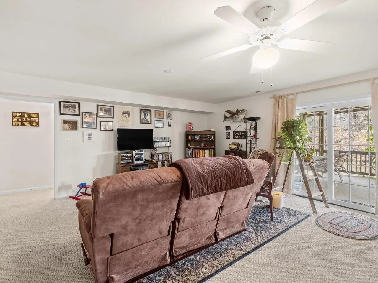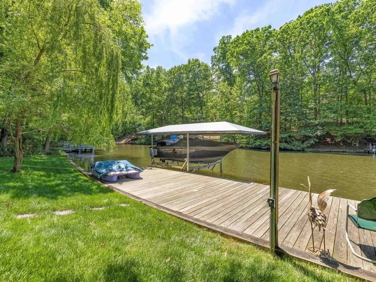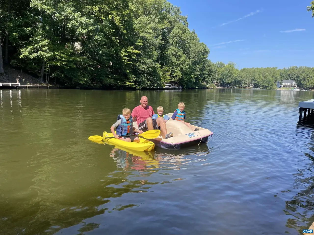 EXPERIENCE THE BEST OF LAKE LIVING! Beautifully maintained waterfront home offers 110? of lake frontage on a peaceful .61-acre lot in a no-wake cove?perfect for fishing, kayaking, swimming, or floating. A large dock w/ boat lift (new in 2022), fishing/ski boat & pedal boat are included. Built by award-winning Southern Homes, this gem features an open floor plan, vaulted ceilings, solid hardwoods & stunning lake views from the cozy living room w/ gas fireplace. Kitchen Aid double oven, Bosch dishwasher, Miele gas stovetop, Samsung French door fridge, Maytag washer. Main-level primary suite includes a spa-like bath w/ heated tile floors, walk-in shower & double vanity. Outdoor living includes screened porch, large deck & screened patio?all overlooking the lake. Terrace level includes bedroom, wet bar, office/craft room (optional 4th bed) & workshop w/ private yard access. Gas hookup ready for 2nd fireplace & outdoor shower. Whole-yard irrigation w/ new pump (2024). New roof, gutters & guards (2023). VA Green lawn service & A/C maint. paid through 2025. Close proximity to Beach 2 & easy access to the water?s edge via a lush, grassy backyard?your private lakeside retreat awaits! Must see!,Granite Counter,Oak Cabinets,Fireplace in Living Room