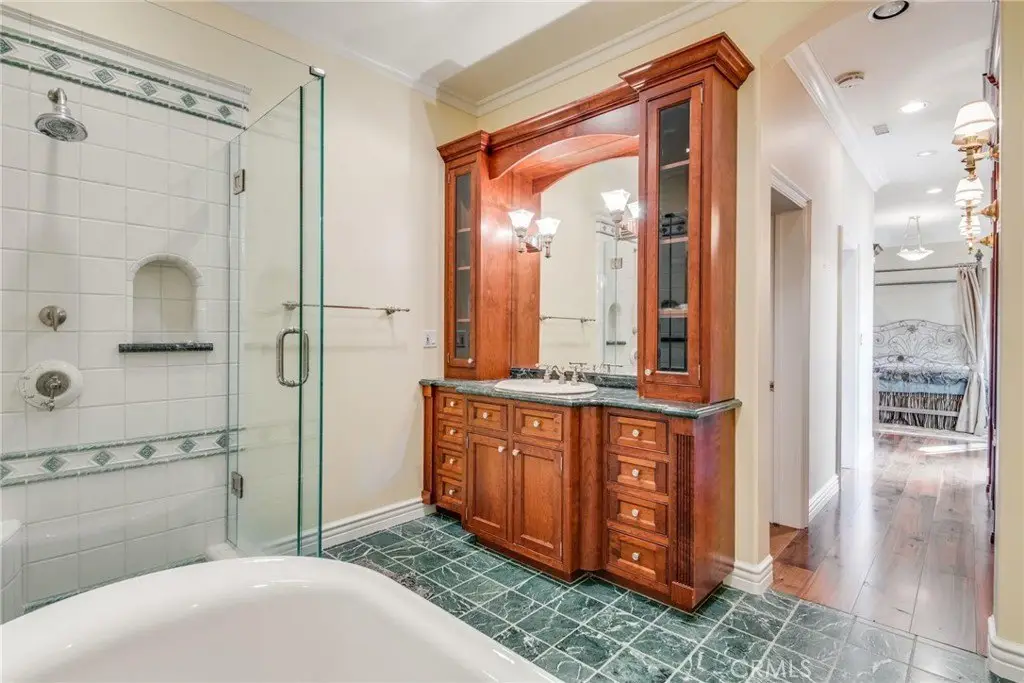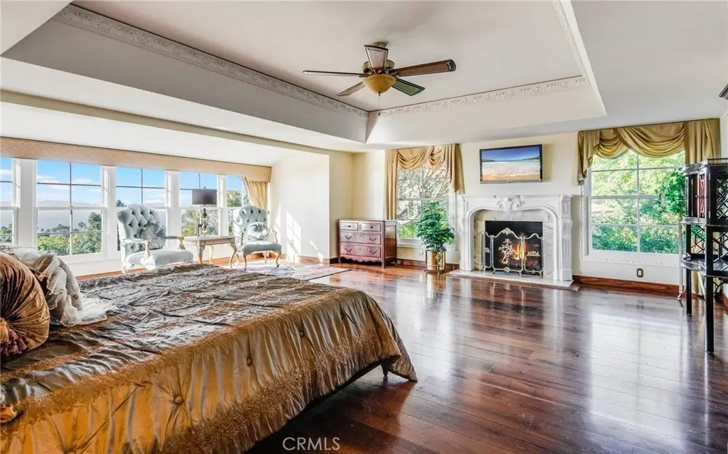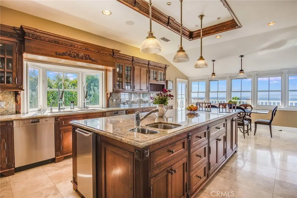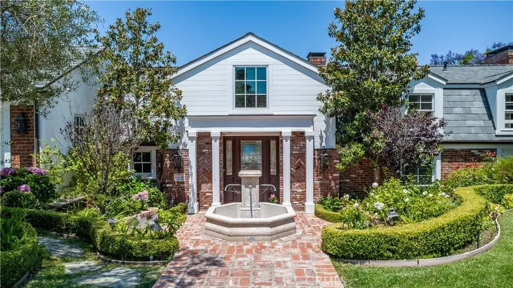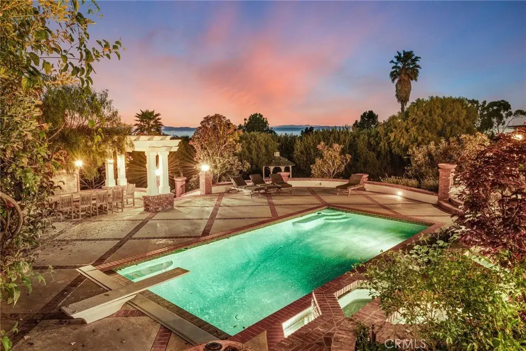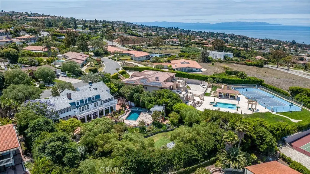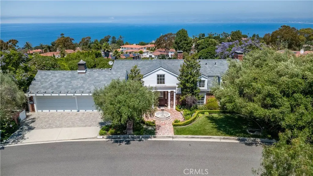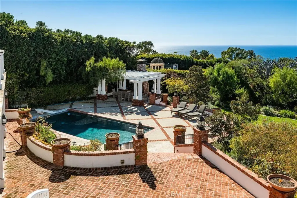 Located in the heart of Montemalaga—one of the most sought-after neighborhoods for luxury estates in Palos Verdes Estates—this stunning Colonial-style residence showcases elegance, sophistication, and absolute privacy on one of the most unique lots in the area. Extensively remodeled with high-end finishes (most recently in 2013), this custom home offers expansive ocean and coastline views, an inviting courtyard entry with a tranquil water fountain, and a grand foyer illuminated by a Bohemian Crystal Chandelier. Throughout the main level, you’ll find 8” wide-plank walnut hardwood floors, and exquisite Enkeboll Design staircase banisters and molding that elevate the craftsmanship and design. The formal living and dining rooms overlook beautifully landscaped grounds and panoramic ocean vistas. The chef’s dream kitchen features a Wolf professional range and top-of-the-line stainless steel appliances—ideal for entertaining in style. Seller Financing or Lease Option Considered. The private master suite is a serene retreat, complete with a cozy sitting area, fireplace, and breathtaking views of the gardens and Pacific Ocean. Two spacious family rooms provide flexible living areas, perfect for gatherings and everyday comfort. The lush backyard is an oasis of tranquility, featuring an expansive brick patio, wood-burning fireplace under a charming open-beam portico, a copper-roofed gazebo, peaceful walking paths, fountains, and meticulously manicured gardens. The resort-style pool and spa, along with built-in BBQ area (gas and wood-burning), make this estate ideal for entertaining year-round. Offering exceptional design, absolute privacy, and estate-like grounds, this residence embodies the best of Palos Verdes Estates luxury living.