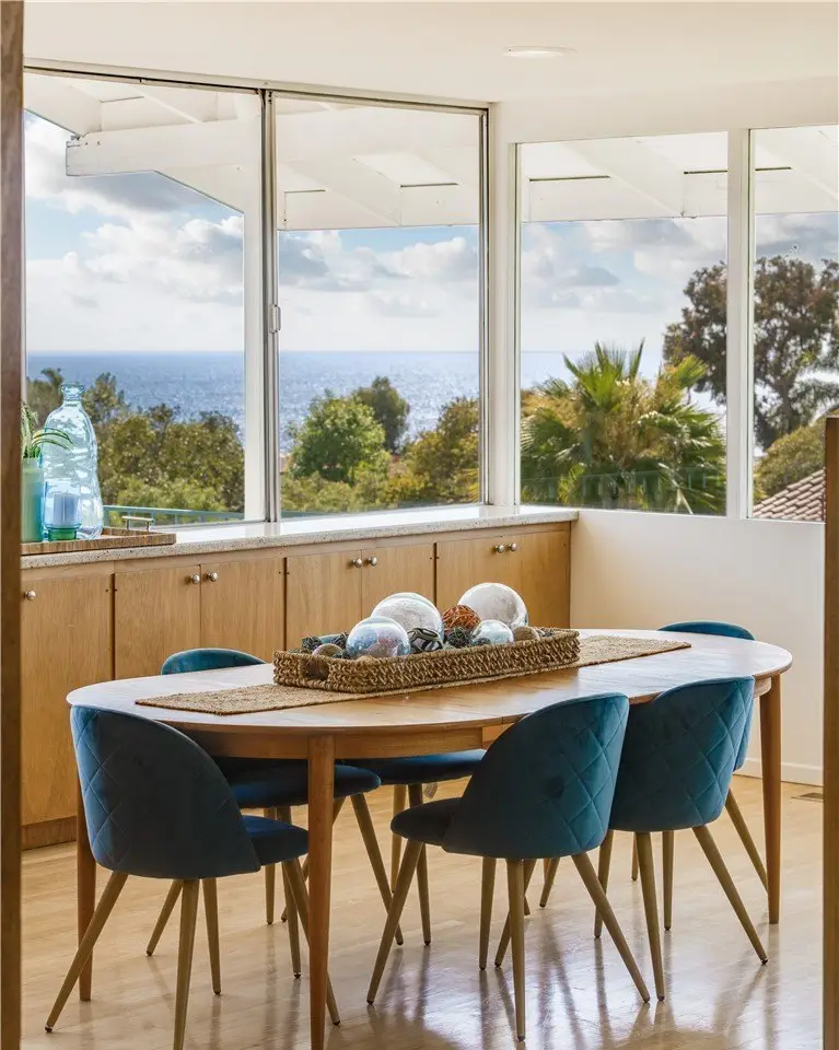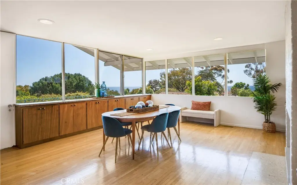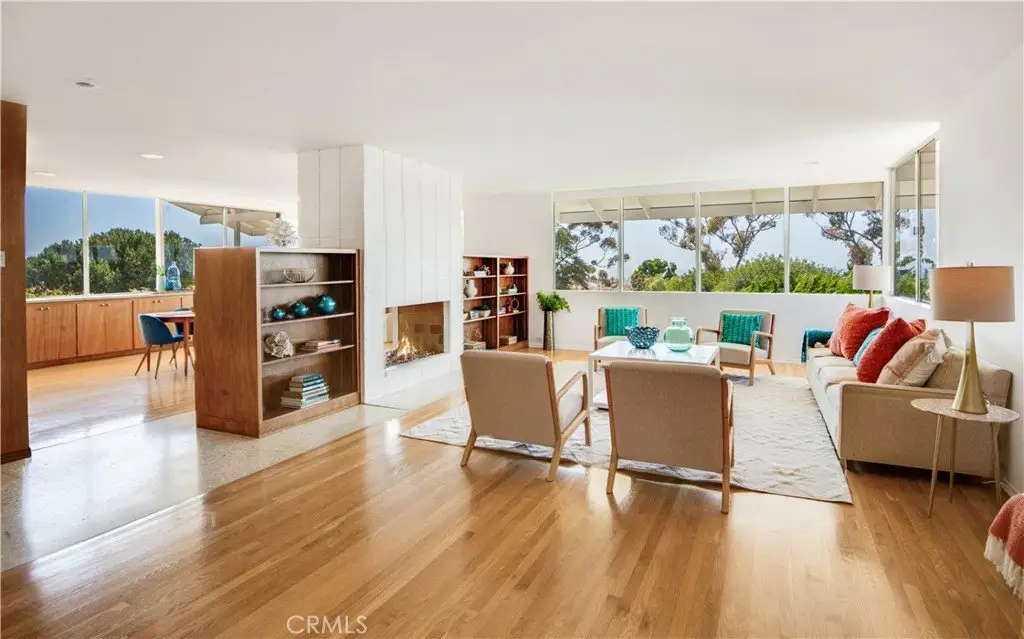 Masterfully crafted Mid-Century Modern home that embraces the true art of design. Located in the beautiful Lunada Bay area of Palos Verdes Estates and designed to take advantage of the exceptional views of the ocean and bucolic landscape through the extensive use of large banded windows and simple geometric forms. Designed by Architect Jack Ouzounian in 1963 and built as a piece of art by the original owner. The home is characterized by large open spaces that flow seamlessly into one another, this design utilizes smooth museum-quality plaster walls, hardwood and terrazo floors and custom mahogany cabinetry to create a warm environment that is minimal and without excessive ornamentation. The detailing is simple but impeccable, for example, many of the doors are eight feet high and are crafted precisely so that they are void of trim and casings. Daylighting is a key feature. Large windows that extend to the ceiling flood the interior with natural light while emphasizing the connection to nature; and the expansive south-facing deck serves as an "outdoor living room" that wonderfully compliments the indoor environment. A truly special place to call home.