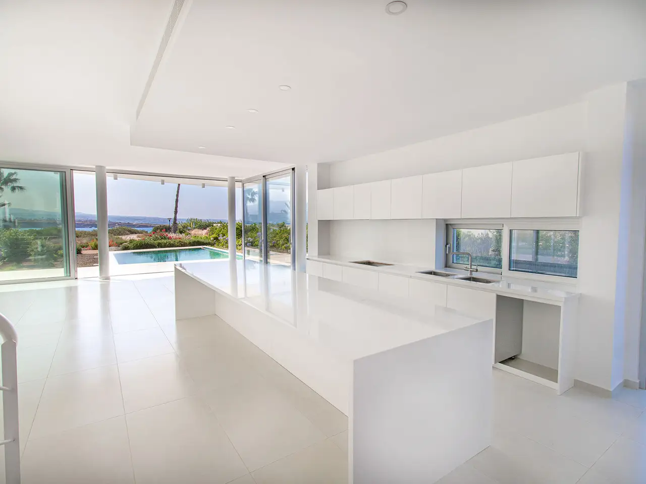 A five bedroom beachfront villa is located in the most prestigious area of Paphos in a large plot area. This luxury villa consists of 5 bathrooms, underfloor heating, private gardens, marble flooring and upgraded finishes. A Residents Clubhouse, private pools and gardens, large verandas and patios, ample covered parking and superior interior finishes, are some of the villas features