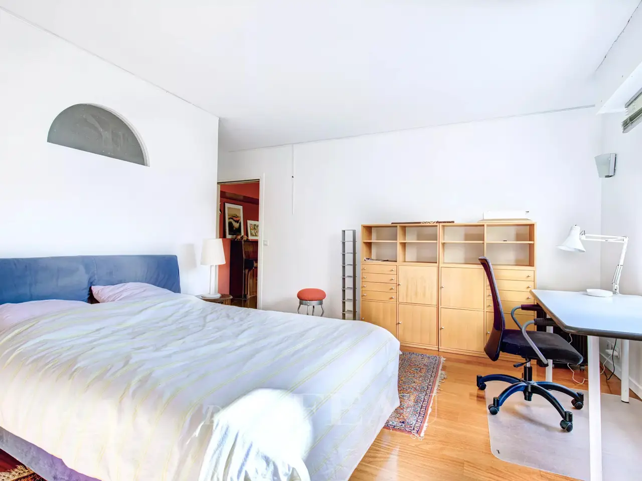Denfert-Rochereau neighbourhood. This split-level 215 sqm apartment benefiting from a near 114 sqm garden and a 47 sqm terrace is on the garden level of a luxurious building. An entrance hall leads to a spacious living/reception room featuring a 5.20 metre high ceiling, a kitchen with dining facilities, four bedrooms, a shower room, a bathroom and a utility room. Upstairs are a fifth bedroom with a shower room and a study. With a parking space and a cellar.